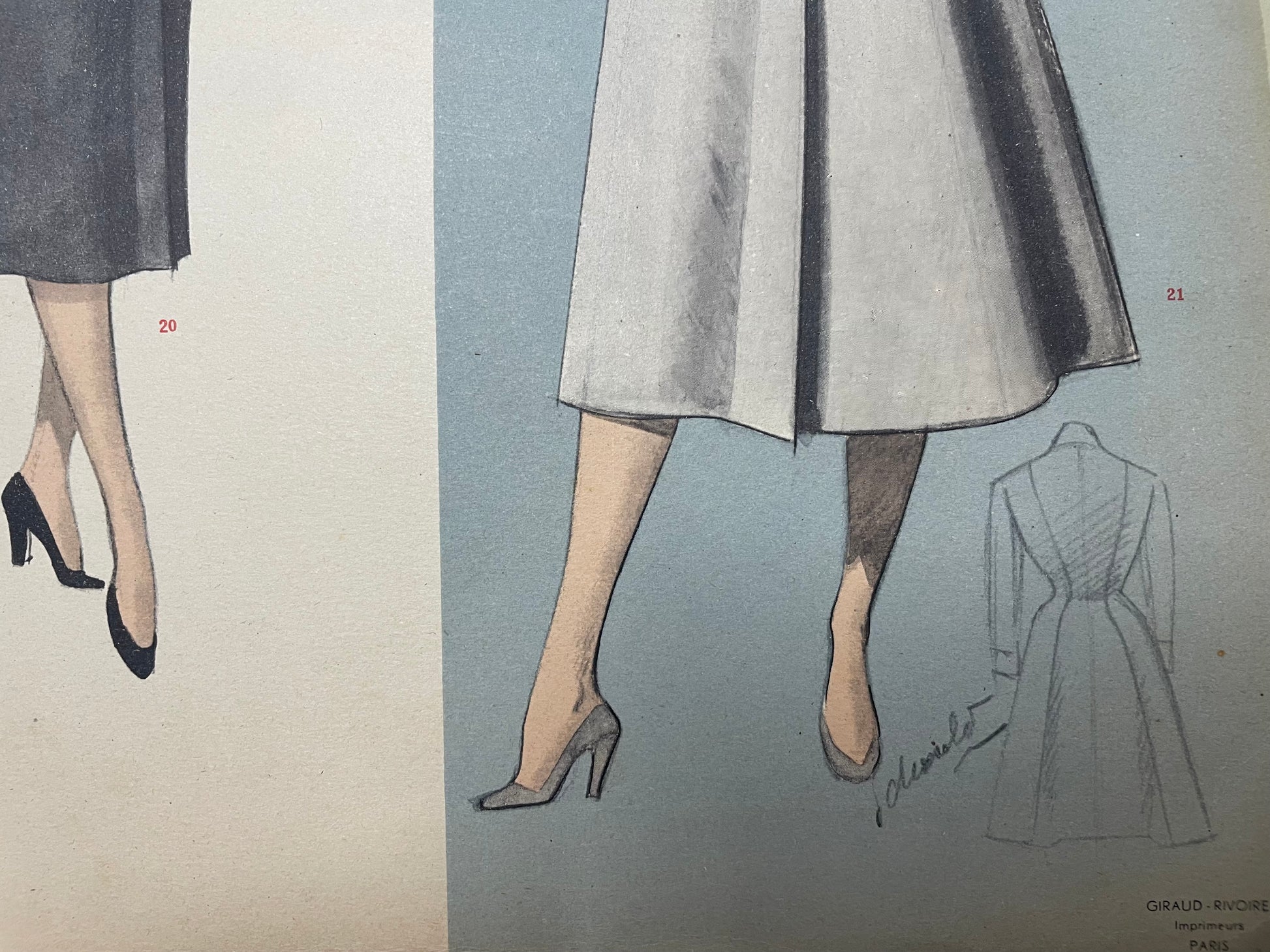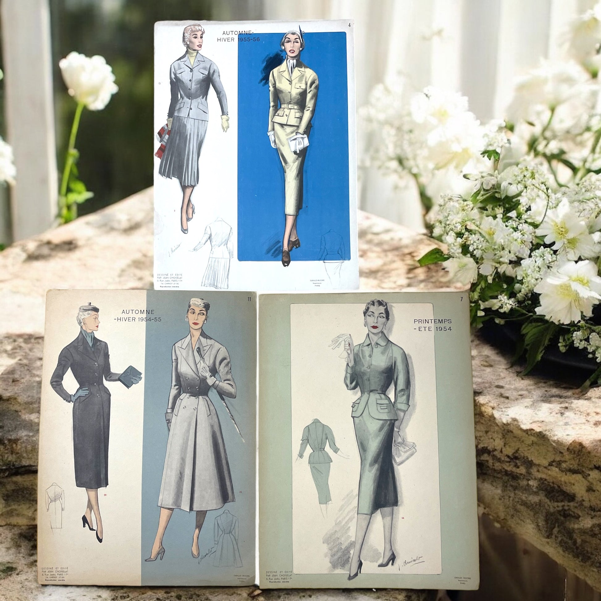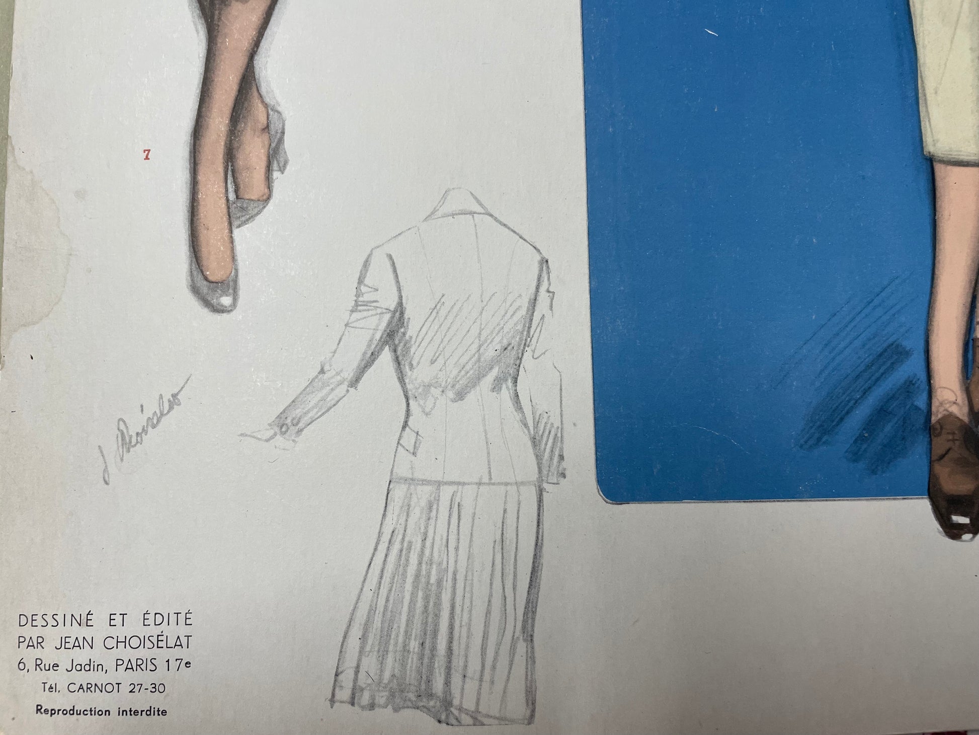 fantastico tris di bozzetti moda, si tratta di tre grandi stampe di modisteria realizzate dall’inimitabile Jean Choiselat - sono stampe di cui è vietata la riproduzione, ne esistono quindi pochi esemplari, tutti numerati. ci illustrano la moda della primavera estate del 1955 e della stagione autunno inverno 1954-1955. Inutile descrivere l’eleganza di queste donne perché le immagini parlano da sé: perfette da incorniciare, da esporre in un atelier o in un qualsiasi ambiente voglia vantare un pezzo esclusivo della storia della moda, proveniente direttamente da Parigi. Le dimensioni: 36 x 26 cm ciascuna. Sulla numero due presente un tratto di penna.