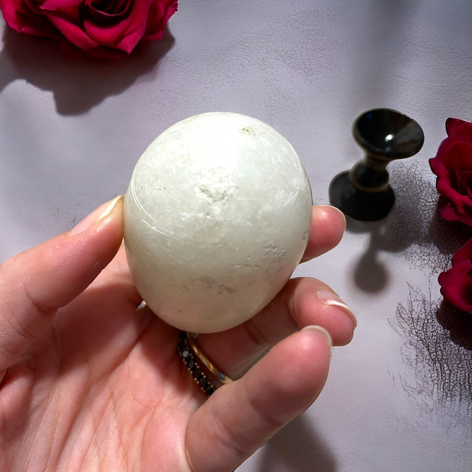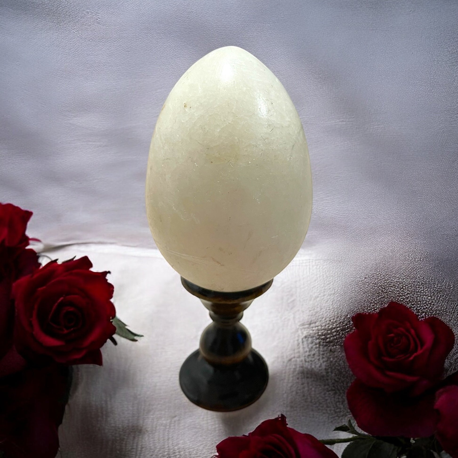 Tra le ombre soffuse delle case borghesi del primo Novecento, illuminate dalla luce calda delle lampade a petrolio, piccoli oggetti decorativi raccontavano storie di raffinatezza e simbolismo. Quest’uovo in alabastro, lucente e levigato come una goccia di luna, si inserisce perfettamente in quella moda che attraversava salotti e studi, dove i dettagli parlavano di cultura, gusto e aspirazioni. L’uovo, sin dall’antichità, è stato un potente simbolo di vita, rinascita e perfezione. Nel cuore del primo Novecento, quando l’Europa celebrava la riscoperta dell’artigianato e del classicismo, questi oggetti divennero molto apprezzati sia per il loro significato iconografico che per la loro intrinseca bellezza. Si posavano su piedistalli eleganti, come questo in legno tornito, e venivano collocati in vetrine o su mensole, luoghi scelti con cura, quasi a voler custodire il loro messaggio segreto. L’alabastro, con il suo bagliore opalescente, sembrava catturare la luce e trasformarla, evocando l’idea di una vita in potenza racchiusa sotto quella superficie candida. In quegli anni, possedere un uovo simile era un modo per richiamare alla mente concetti profondi: l’inizio, la protezione e la purezza. Oggetti come questo si inserivano anche nel gusto simbolista dell’epoca, che privilegiava un’estetica intrisa di significati spirituali e naturalistici. Un periodo in cui le case erano scrigni di bellezza, e ogni dettaglio scelto parlava del carattere e della sensibilità di chi vi abitava. Altezza complessiva piedistallo centimetri 13, ottime condizioni fatto salvo per una piccola rigatura che si vede in foto e rimane sulla base.