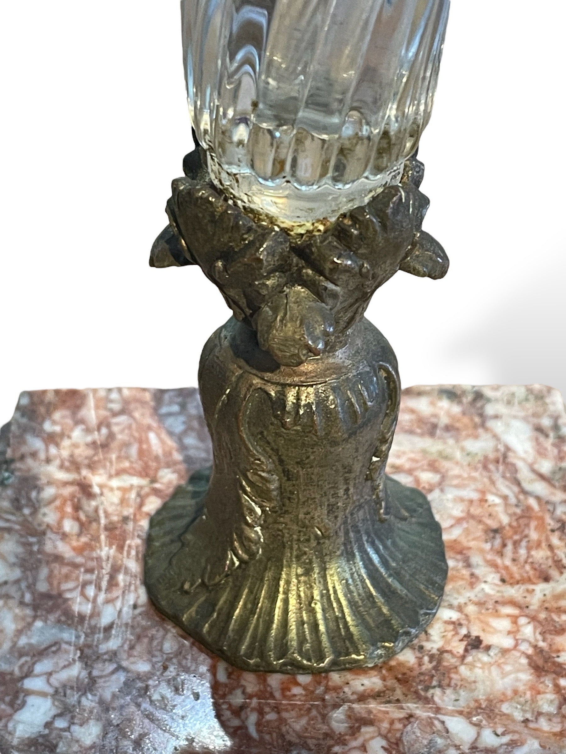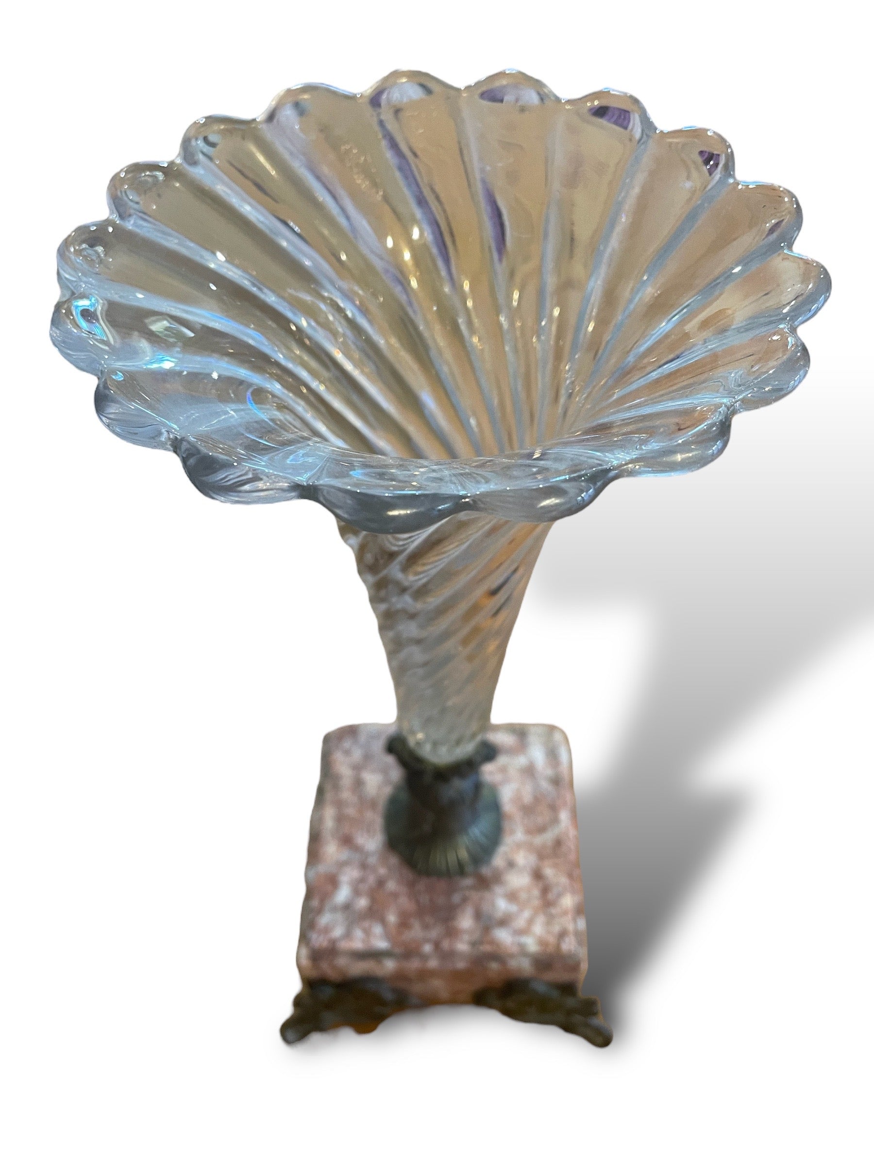 Fine #crystal #artdeco #vase with screw graft on a veined #marble base and worked legs. Height 34 cm, very elegant and refined. Wavy chalice that imitates the rotary movement of the opening of the petals, impeccable crystal condition. Some scratches on the marble. #unique #antique piece; period #1930s, French manufacture.
