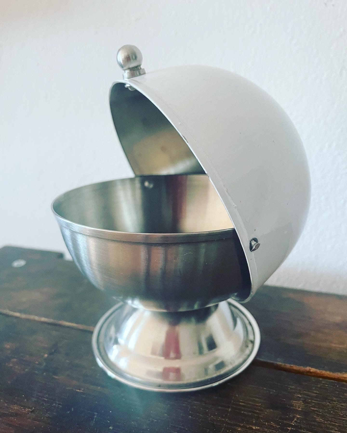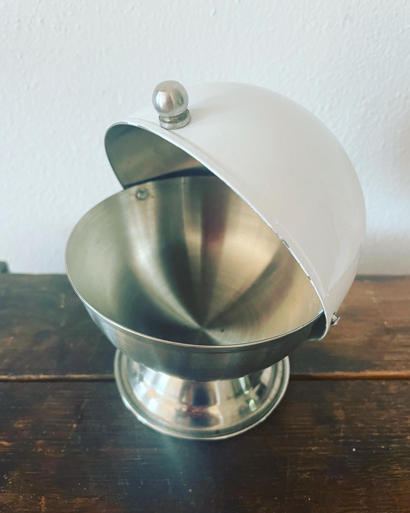 #vintage #70s #midcentury #spaceage #stainlesssteel and white plated sugar bowl; ready for your #coffeebreak