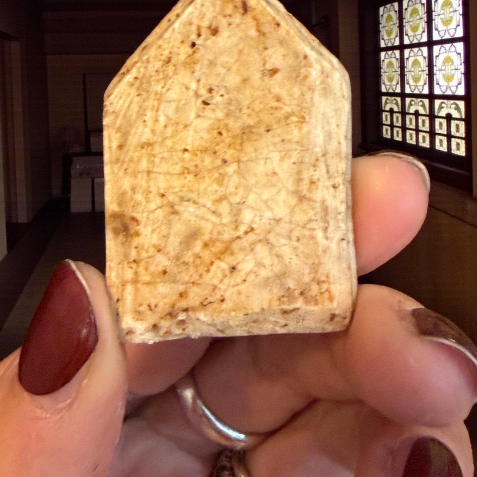 C’è un tipo di silenzio che non appartiene alle stanze: appartiene agli spiriti. Quando ho ritirato questo piccolo amuleto thailandese, ho avuto la sensazione precisa che non fosse solo un oggetto, ma un frammento di quella magia popolare che vive nei templi minori, nei mercati serali e nelle mani dei monaci che conoscono riti antichi quanto la paura. È una placchetta a tempietto, pressata nella polvere sacra: gesso, cenere, terra del tempio e tracce di erbe rituali. Un materiale vivo, nato per custodire intenzioni. Al centro c’è una figura che non è Buddha e non vuole esserlo. È uno spirito protettivo, un guardiano delle soglie. Regge un bambino — simbolo dei Kuman Thong, gli spiriti-bambino della tradizione thai — e siede sopra un teschio, un segno inequivocabile delle pratiche Saiyasat, dove la luce e l’ombra si incontrano senza paura. Non vuole spaventare: vuole vegliare. Questi talismani non hanno secoli alle spalle, ma portano con sé una potenza diversa: quella dei riti più moderni o contemporanei, delle mani che ancora oggi modellano la polvere e sussurrano formule a mezza voce. È un oggetto da chi crede nella protezione, nella soglia e nel mistero. E forse, mentre lo guardi, ti sarà chiaro che certe presenze non si spiegano: si ascoltano.