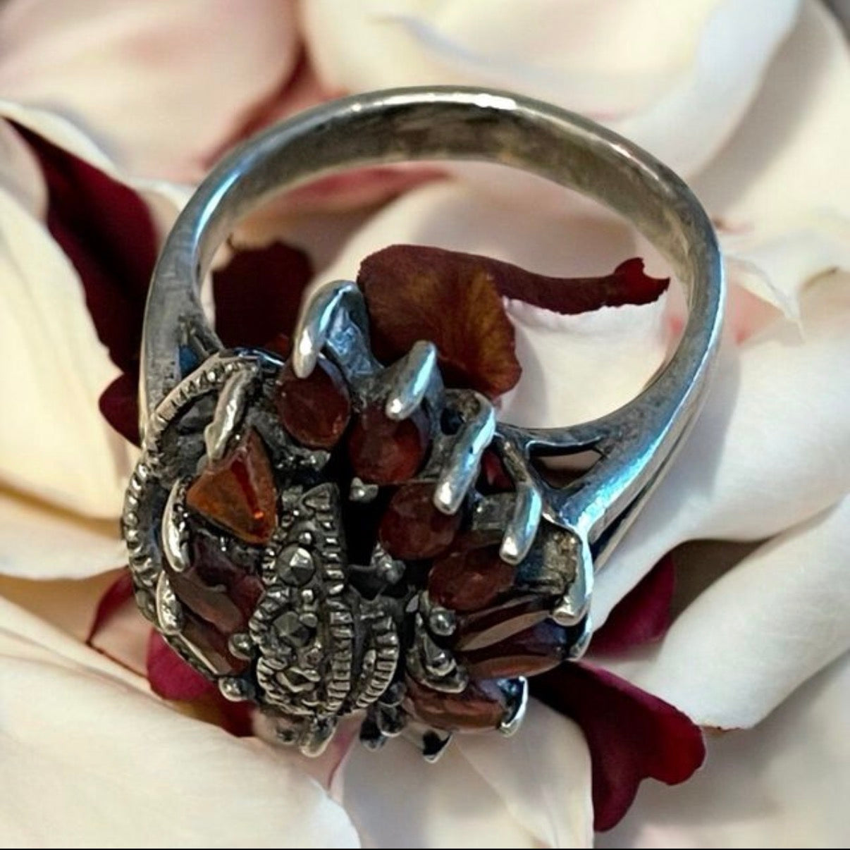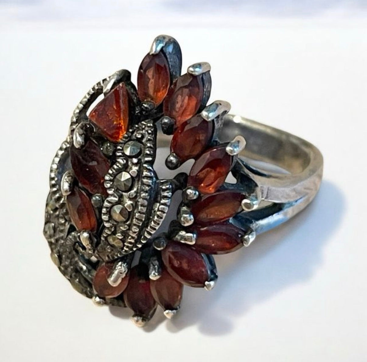 💍 Argento testato, granati naturali almandini e marcasiti.