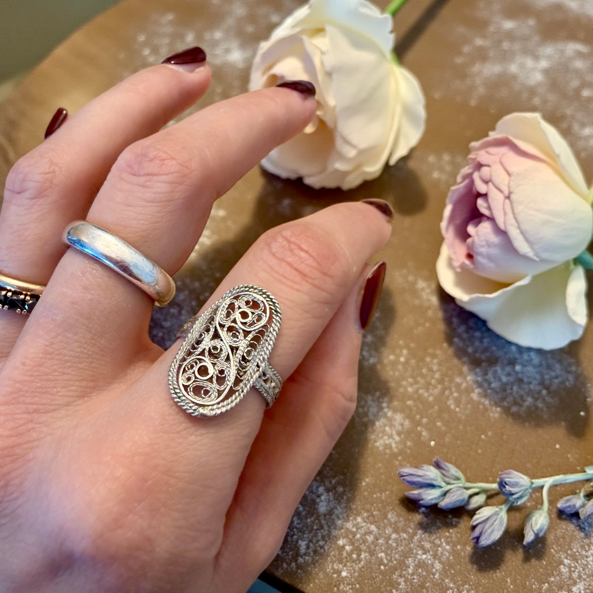Anello in finissima filigrana d’argento, manifattura italiana anni 60