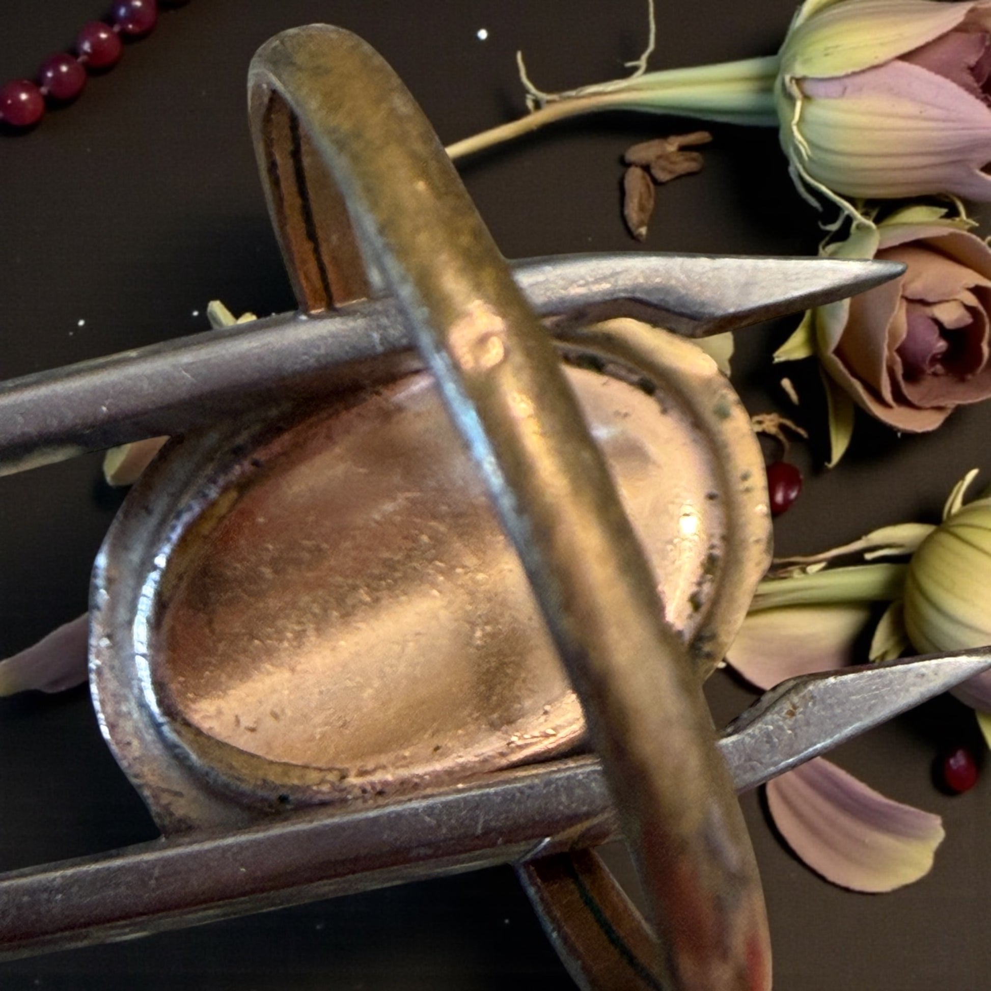 Epoca vittoriana: un tempo in cui i gioielli non servivano a decorare, ma a proteggere. Questo anello nasce lì. Nel cuore dell’epoca vittoriana, quando il nero non era assenza di luce ma profondità, e ogni simbolo aveva il compito di accompagnare chi lo indossava attraverso le soglie invisibili della vita. Al centro, uno scarabeo. Puntinato come una costellazione antica, un tempo smaltato di nero assoluto, oggi addolcito dal tempo. Non è fissato con violenza: è trattenuto con discrezione, come se potesse — in teoria — andarsene. Perché i talismani non si possiedono: si custodiscono. Lo scarabeo, per i vittoriani, era promessa di ritorno. Di rinascita dopo il lutto. Di continuità dell’anima quando tutto sembra fermarsi. La placcatura in oro è ben conservata, le tracce verdi della lega sottostante si vedono in prossimità dello scarabeo, all’esterno è visibile il punzone. Questo non è un anello da esibire. È un anello da sentire. E forse, da scegliere proprio quando si ha bisogno di ricordare che nulla si perde davvero: tutto cambia forma. Scrigno solo per esposizione, non in vendita.
