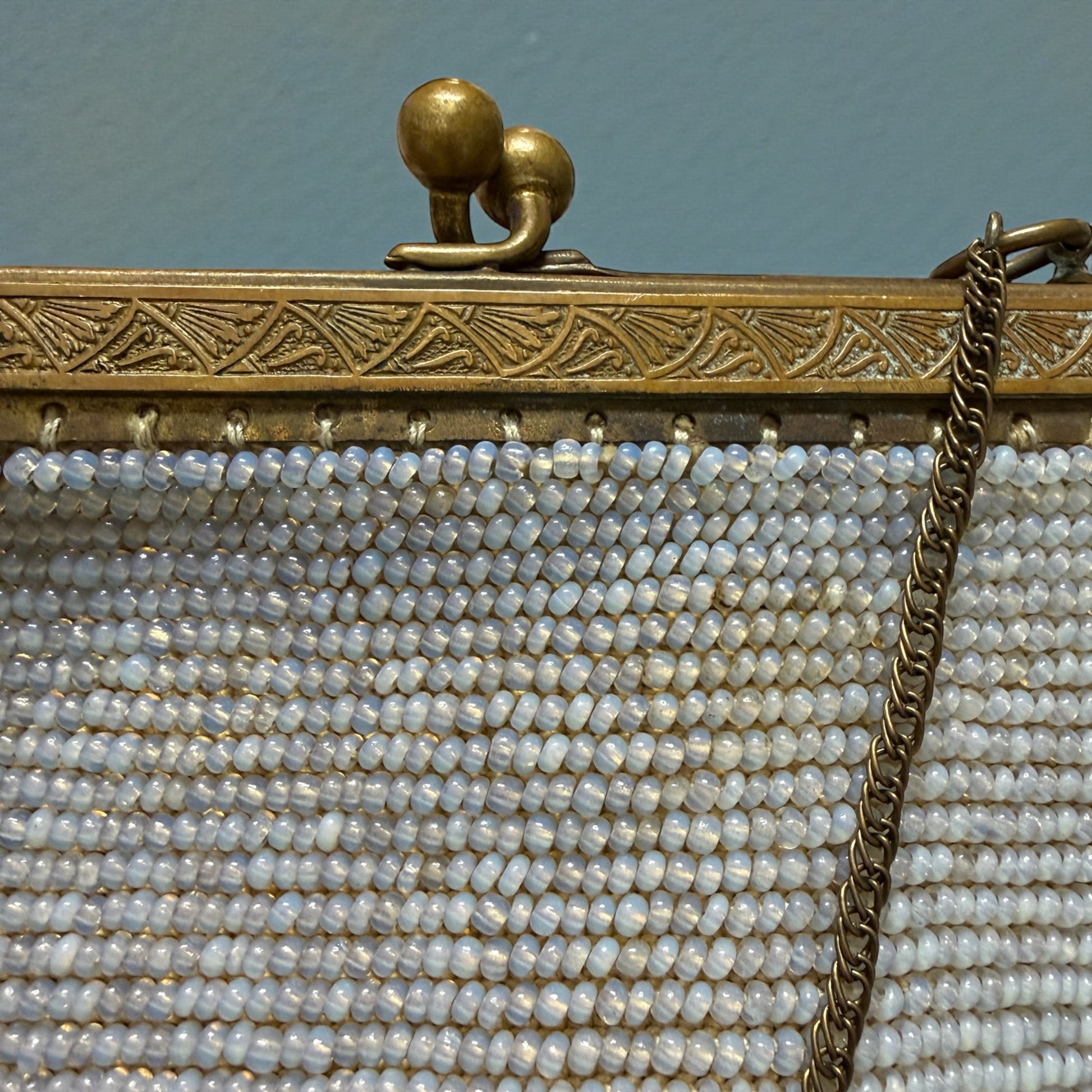 Antica borsetta gioiello da sera in micro perle di vetro, anni 10-20