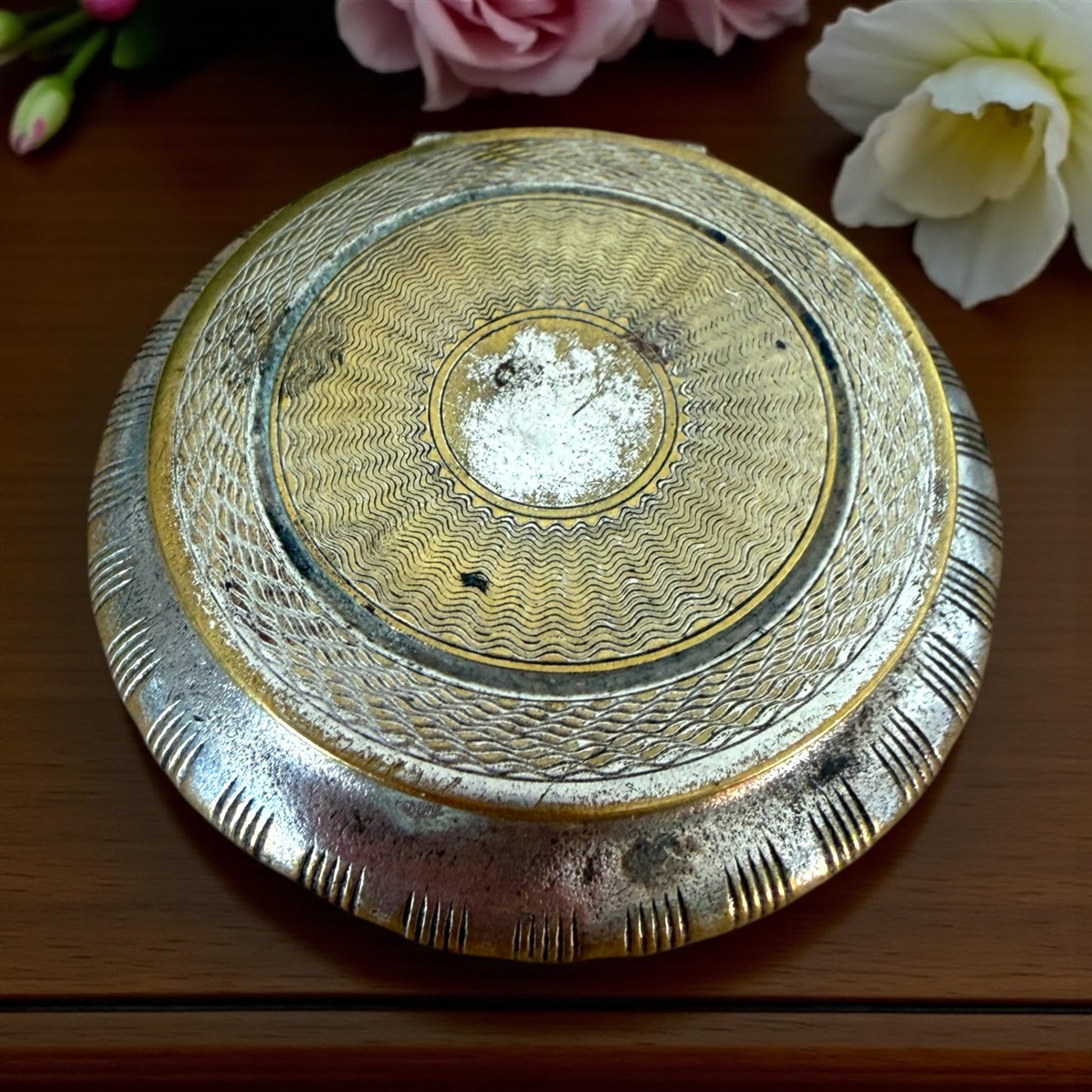 Antica Cipriera in argento anni 30 con lavorazione guilloché