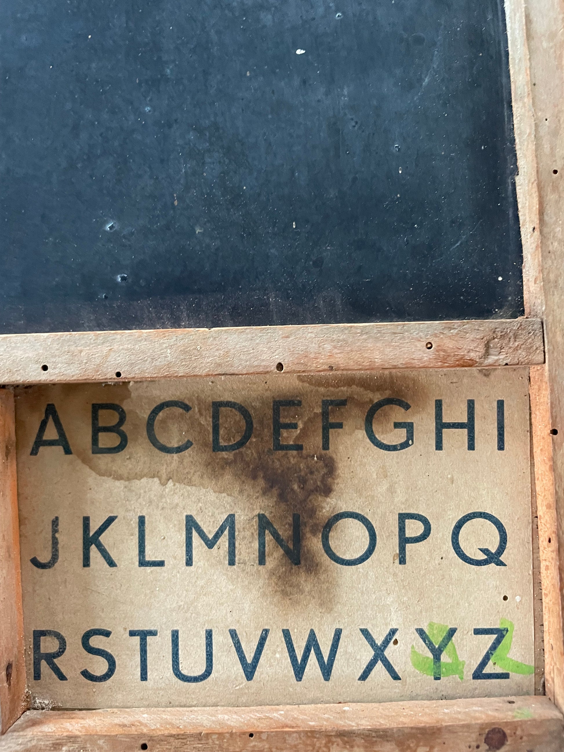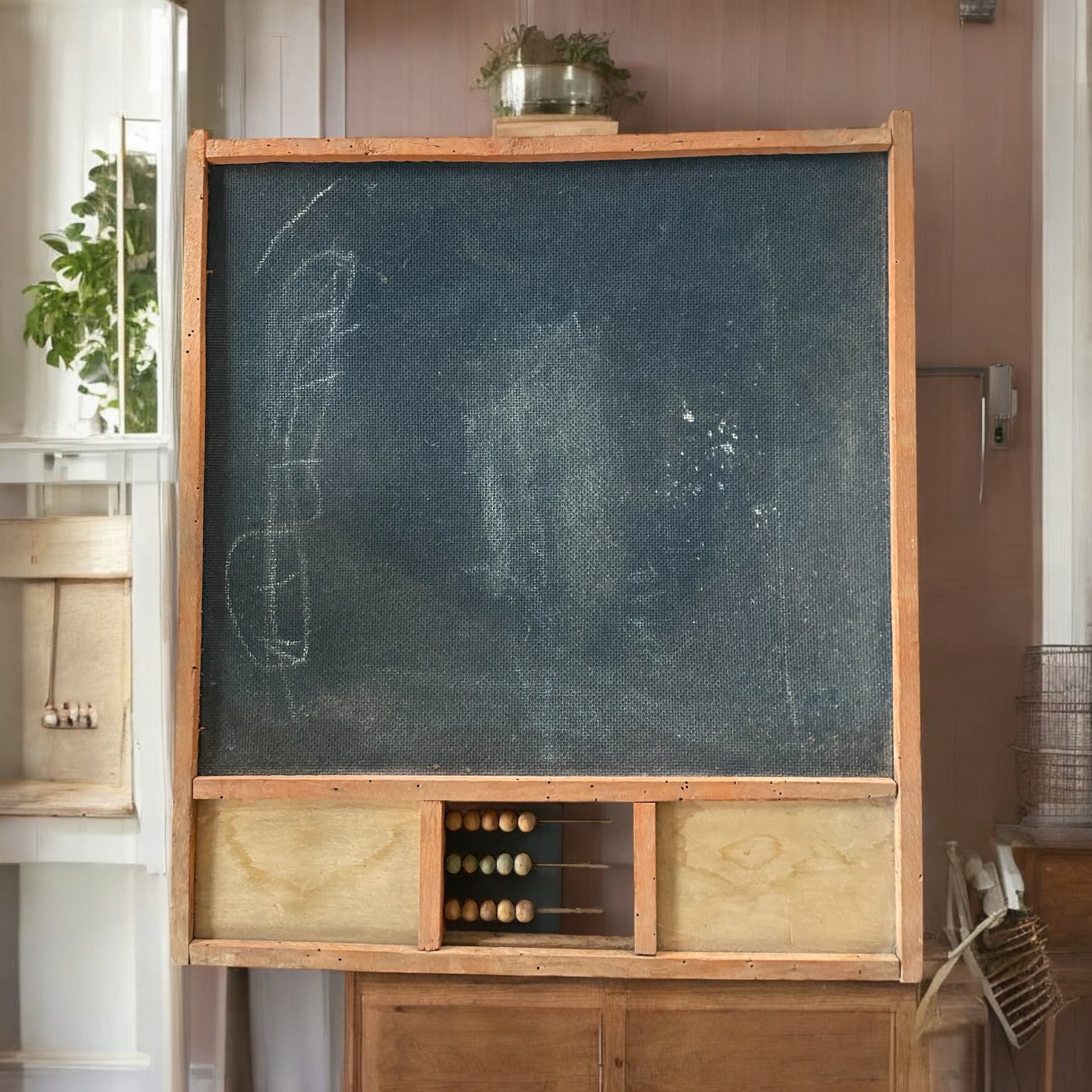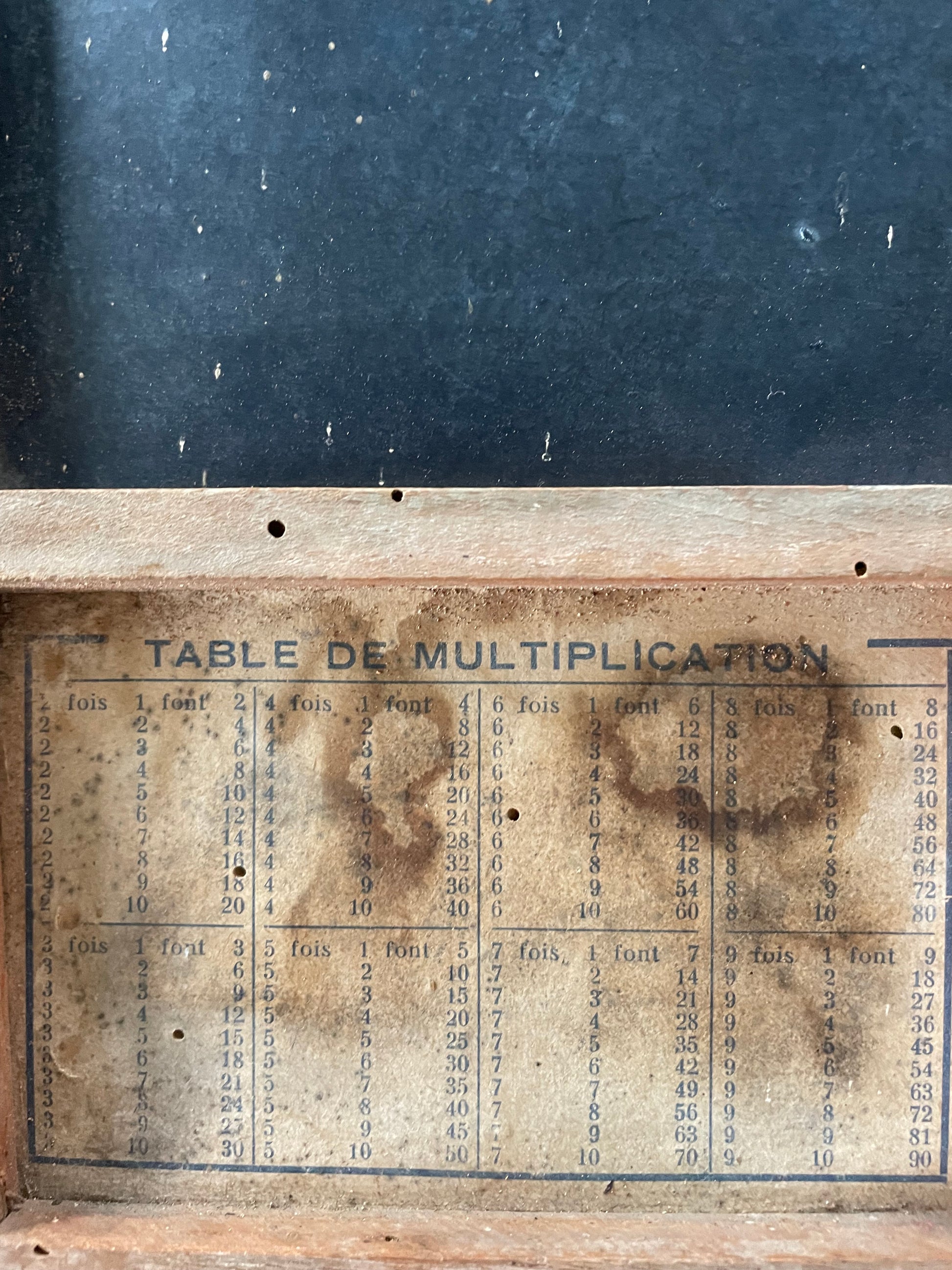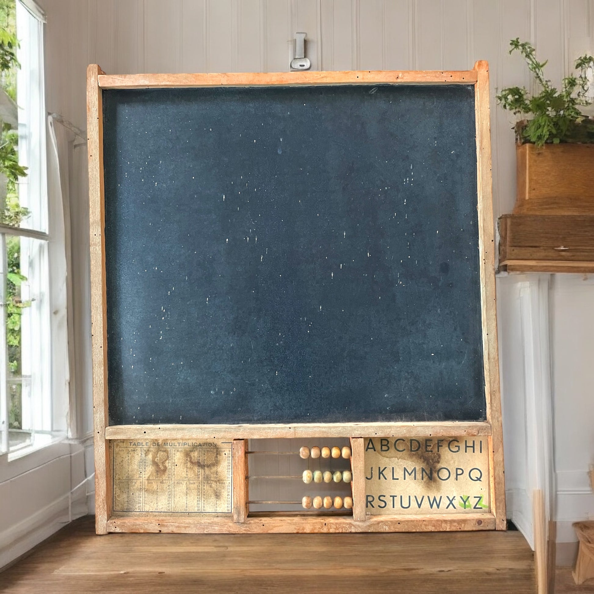 proponiamo questa stupenda chicca ritirata da una vecchia scuola dismessa: si tratta di una lavagna con abaco Centrale e ai lati rispettivamente la tavola delle operazioni e l’alfabeto, le dimensioni sono 47 × 40 cm, ci sono segni del tempo ma viene spedita con antitarlo già fatto ai bordi. È veramente un oggetto nello spirito brocante capace di riportarci i bambini e di allestire un ambiente caratterizzandolo con un’atmosfera familiare, nostalgica, amarcord.
