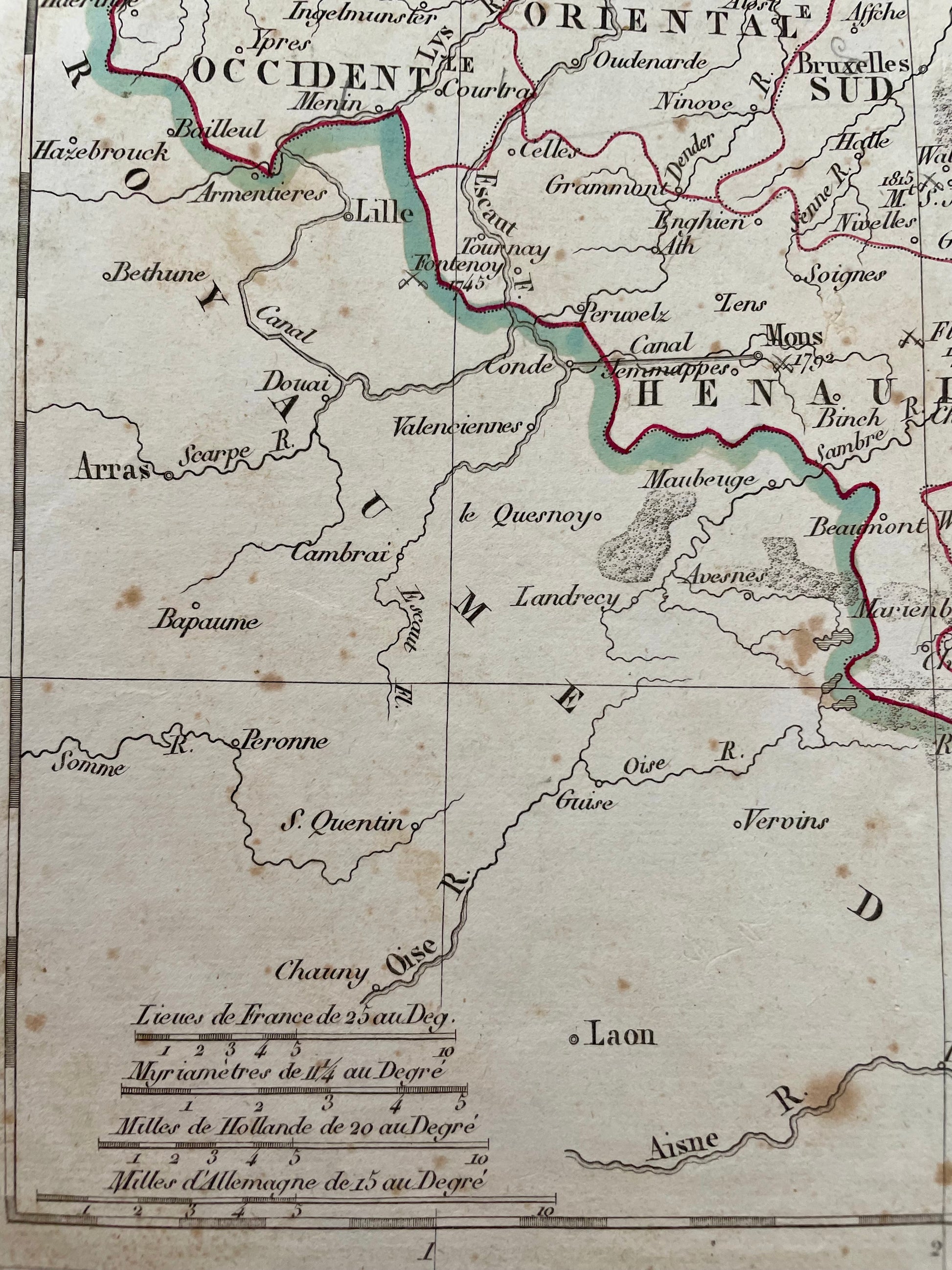 C’era un tempo in cui l’Europa era ancora un mosaico in movimento, e questa carta ne conserva un frammento autentico. Realizzata nel 1829 dal cartografo francese Félix Delamarche, questa antica mappa rappresenta il Regno Unito dei Paesi Bassi un anno prima della grande svolta della sua storia: la Rivoluzione Belga del 1830. Un documento geografico di straordinario interesse storico, che mostra Paesi Bassi, Belgio e Lussemburgo uniti in un unico regno sotto Guglielmo I d’Orange, in una fase di delicato equilibrio politico europeo successiva al Congresso di Vienna. Incisa su rame e rifinita a mano con acquerellatura originale d’epoca, la carta offre dettagli preziosi: la storica Zuyderzée ancora mare interno prima delle grandi bonifiche olandesi, le 18 province originarie, le antiche toponomastiche francesi e fiamminghe, fino al sistema di scale di misura differenziate tipico della cartografia ottocentesca. La presenza di piegature editoriali rivela che apparteneva con ogni probabilità a un atlante storico ottocentesco, poi smontato. Le naturali tracce del tempo – leggere fioriture della carta e patina antica – ne esaltano l’autenticità e il fascino. Perfetta per studio storico, collezione cartografica, arredo d’atmosfera o come dono raffinato per chi ama la storia dell’Europa. Venduta senza cornice spedita in tubo professionale.