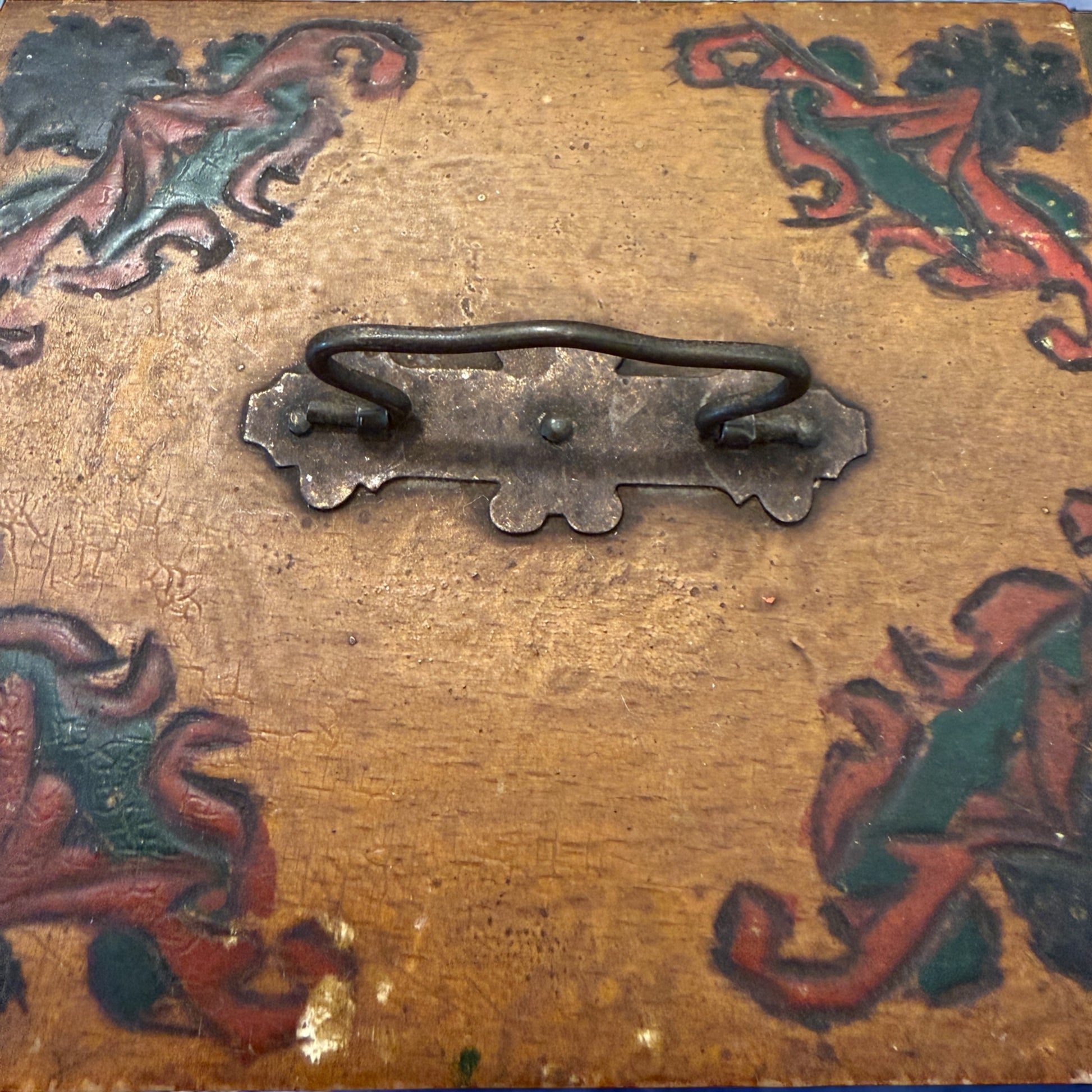 Forse un modo per dire qualcosa che a voce non si riusciva a dire. Il tempo ha fatto il resto: ha abbassato i toni dei colori, ha ammorbidito il legno, ha lasciato segni che oggi non sono difetti ma tracce di vita vissuta. È una scatola che non chiede di essere restaurata, ma ascoltata. E che trova il suo posto naturale su una scrivania, una mensola, un comodino — lì dove le cose non servono più, ma significano.