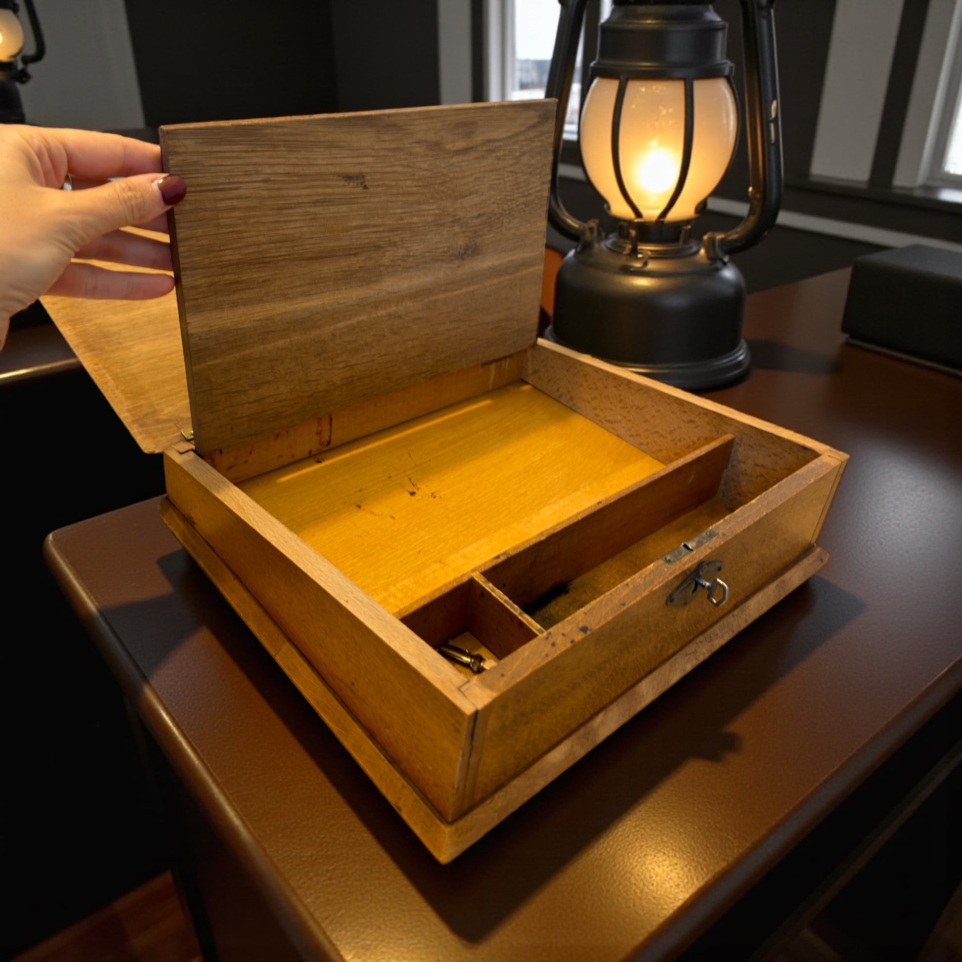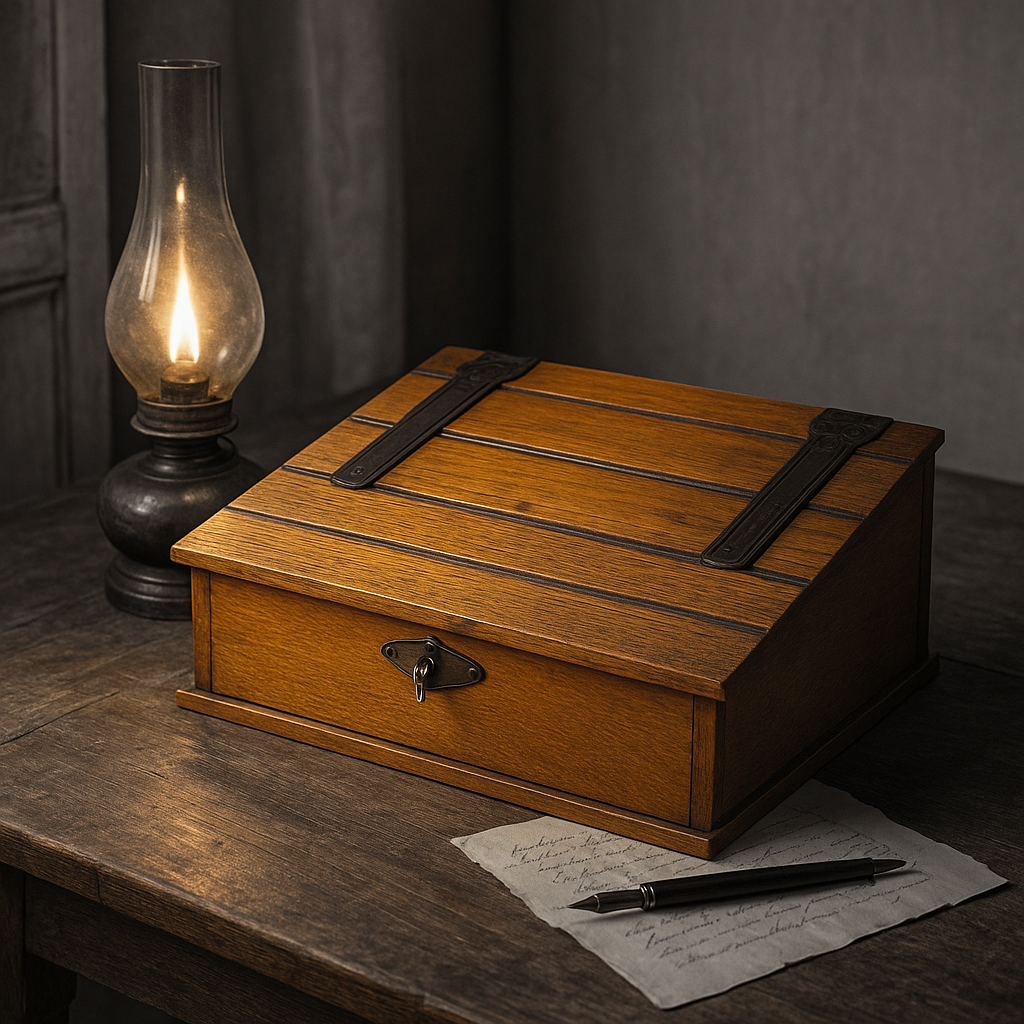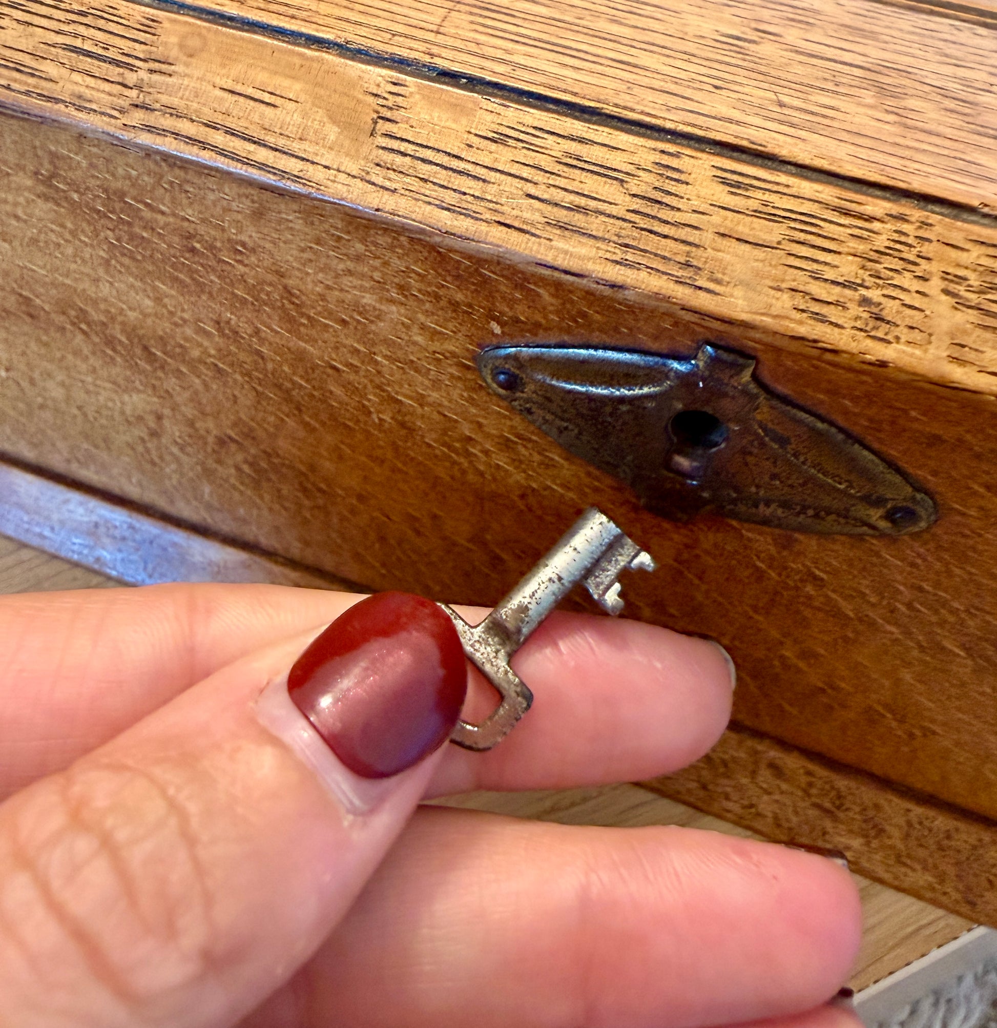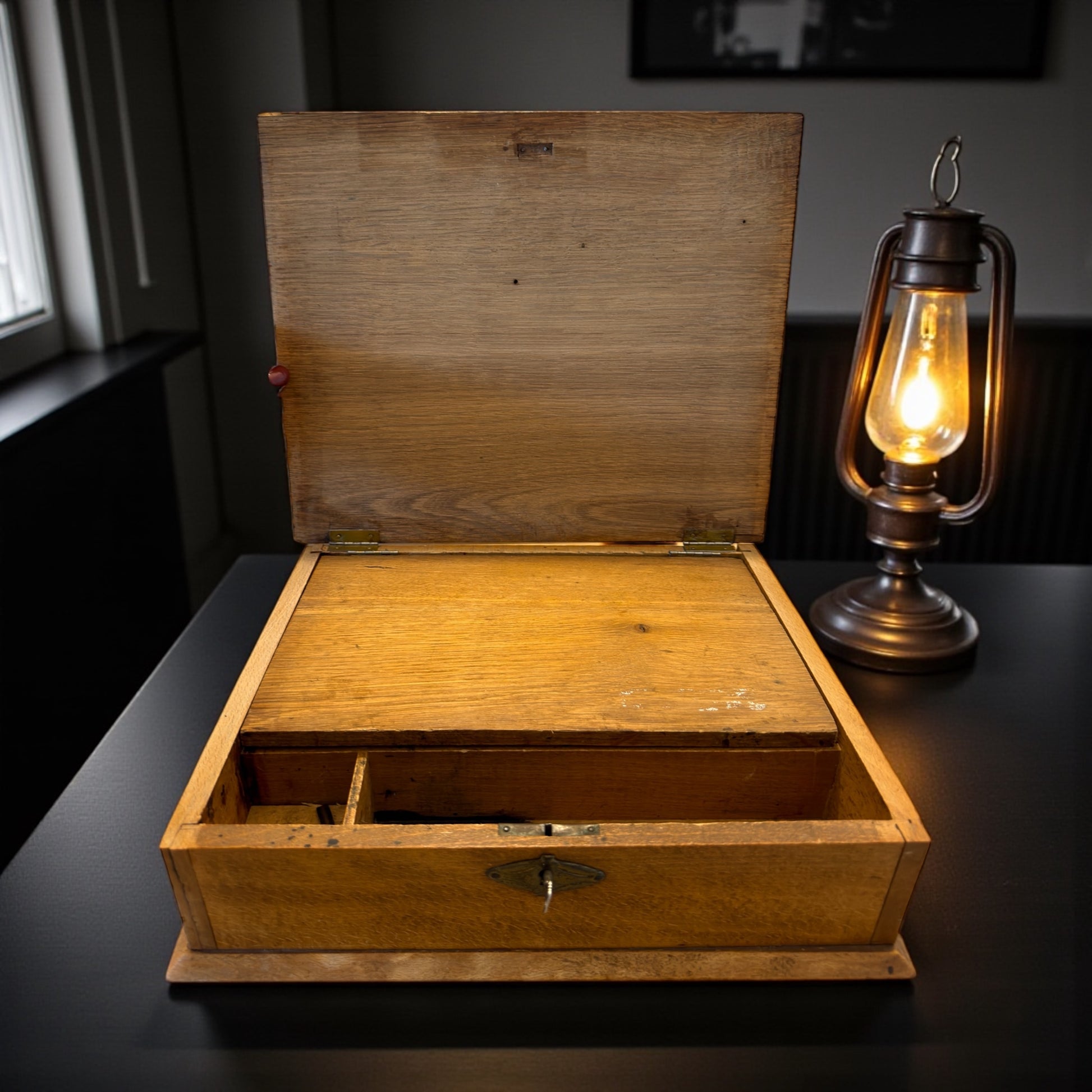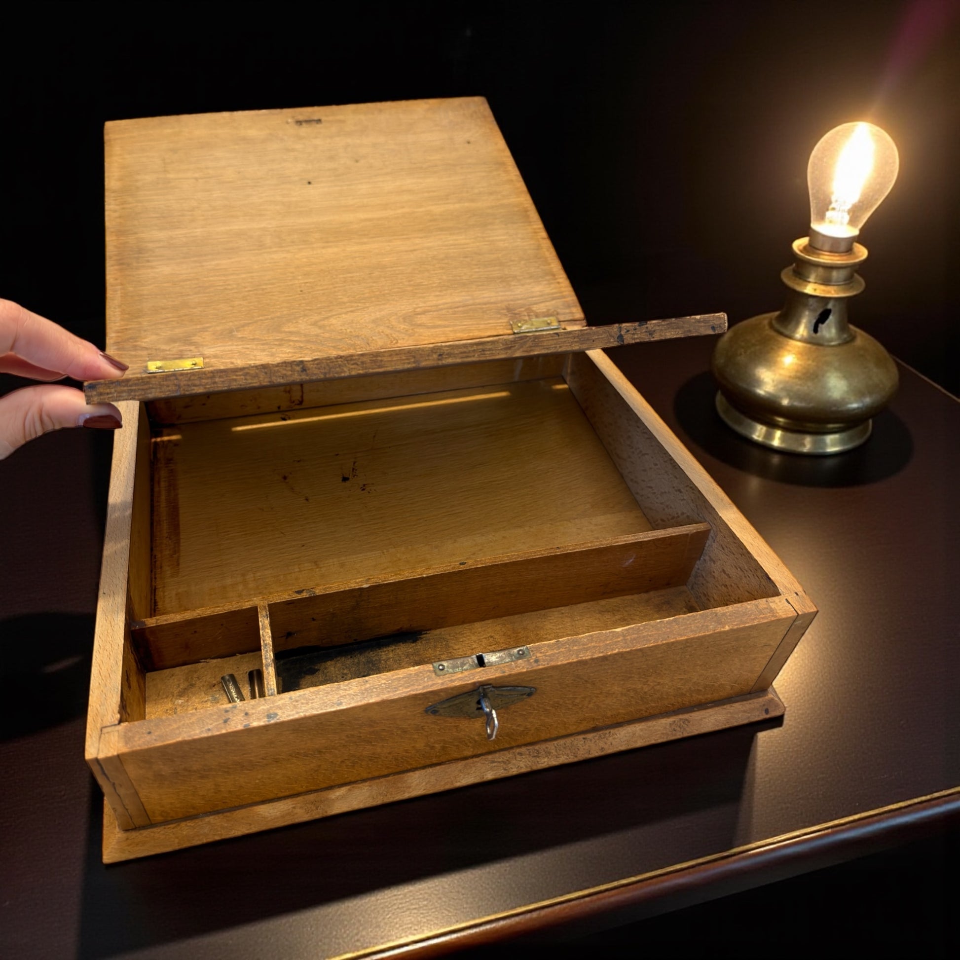 Antica scatola da scrittura, Belgio anni ‘30, con chiave funzionante e scomparto ribaltabile