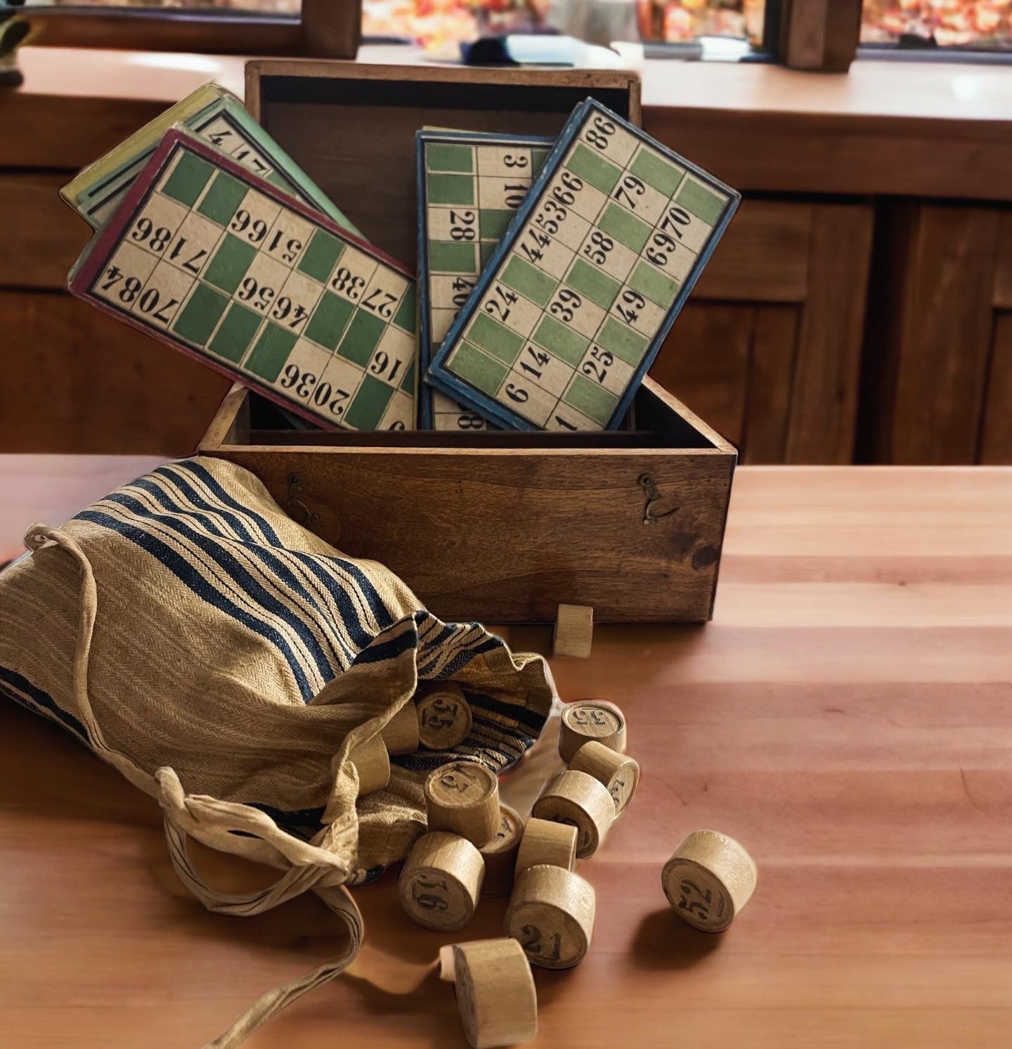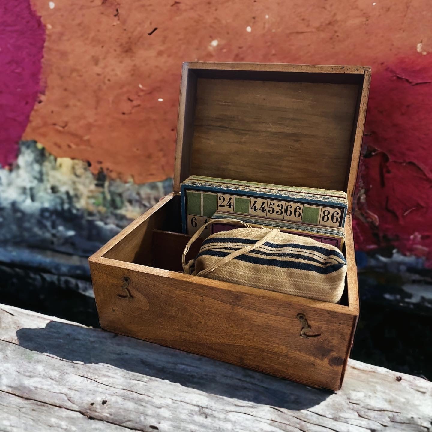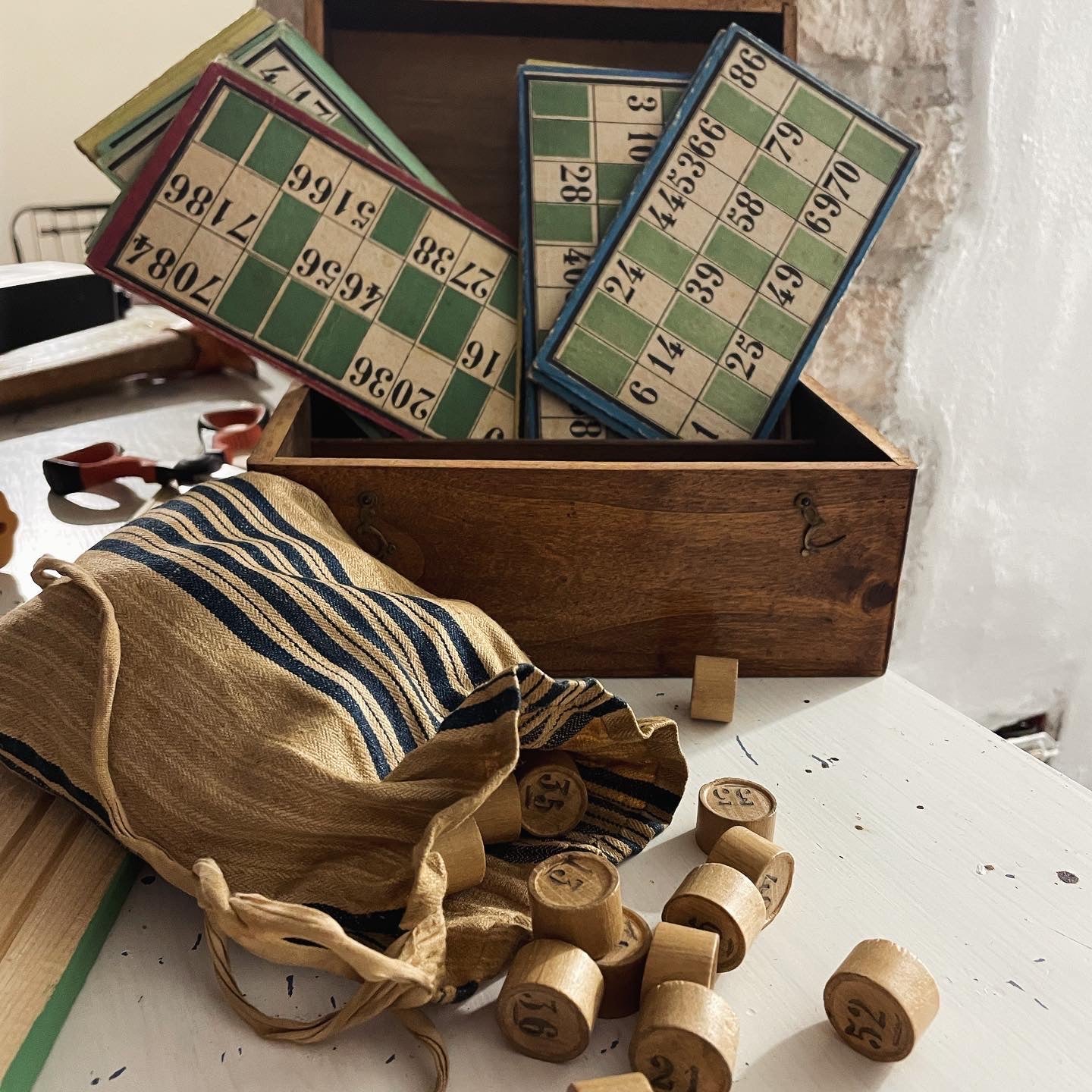 #antichigiochi oggi … ecco questo delizioso #anticobauletto in legno con due ganci a doppio scomparto, che contiene l’ #antica #tombola 🥰 con le cartelle cartonate ed il sacchetto stoffa (cucito a mano ovviamente!!) cm 20 x 15 kg 0,7; con i #numeridilegno … aprire questa #anticascatola è proprio come fare un #viaggioneltempo e #tornarebambini .