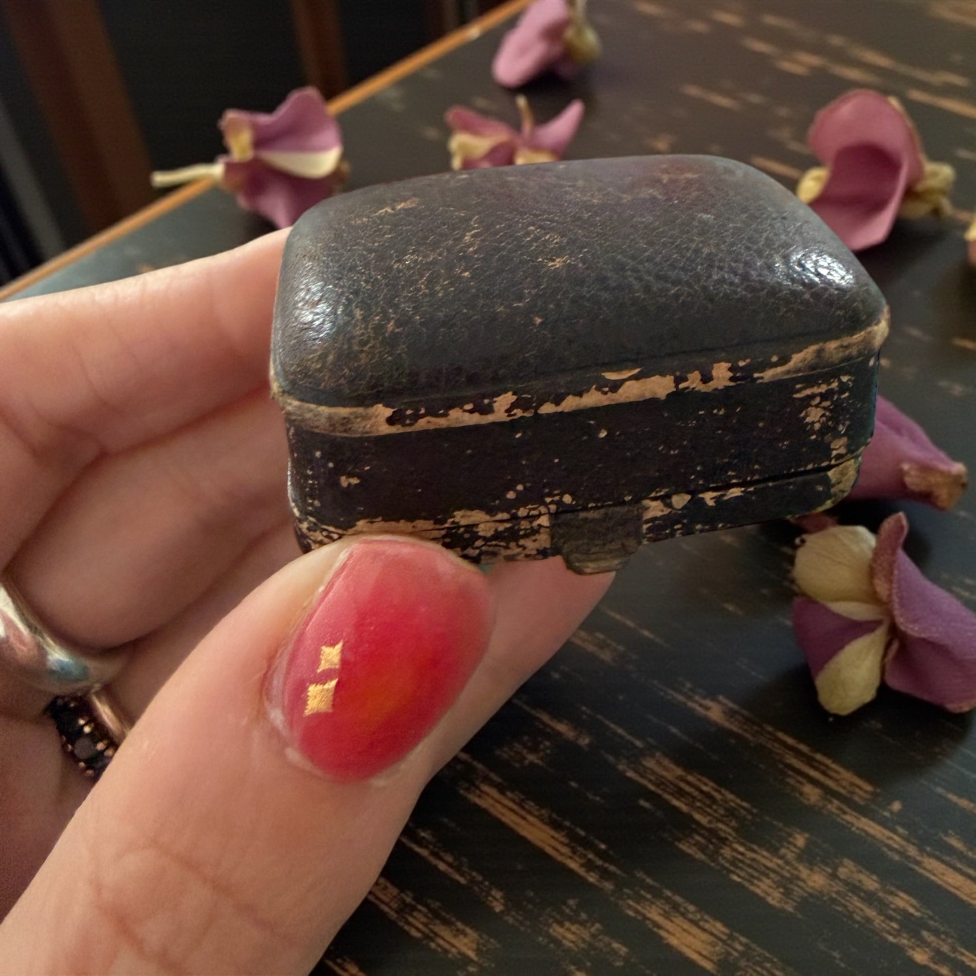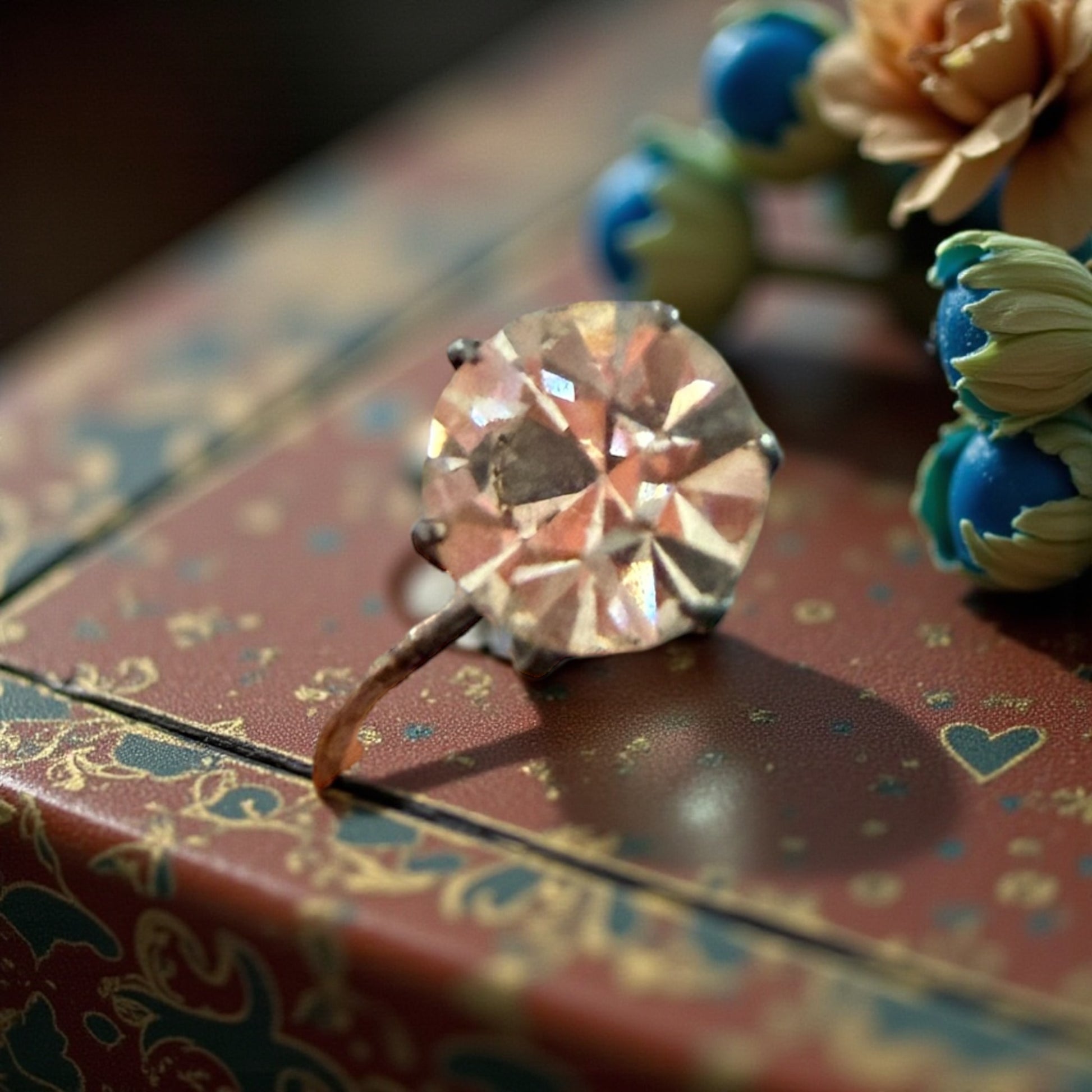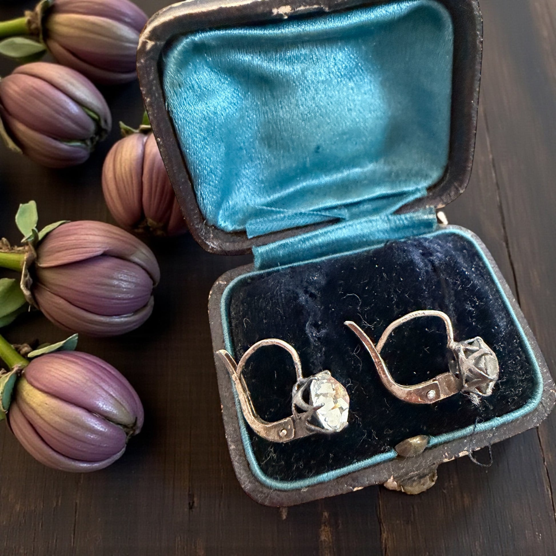 C’è stato un tempo in cui la luce non era un eccesso, ma una promessa. Questi orecchini nascono per brillare, punto e basta. E lo fanno stupendamente. Le pietre, montate alte, catturano ogni minimo movimento del volto, restituendo riflessi morbidi, mai aggressivi. L’argento – segnato dal tempo ma ancora vivo – racconta mani che hanno lavorato senza fretta, quando l’eleganza era una questione di equilibrio. Lo scrigno che li custodisce non è un accessorio: è parte della storia. Si apre come si aprivano i gioielli importanti, quelli da indossare la sera, prima di uscire, davanti a uno specchio che non aveva fretta di giudicare. Non sono orecchini da collezione sterile. Sono orecchini da presenza.