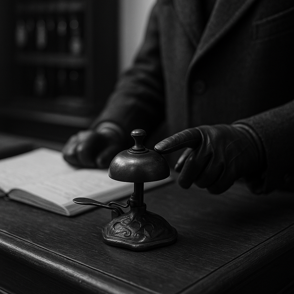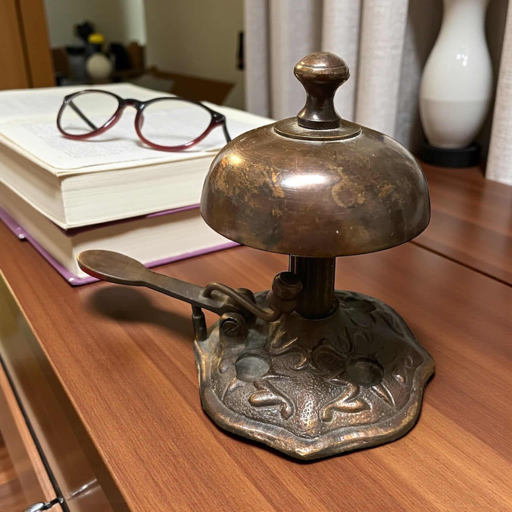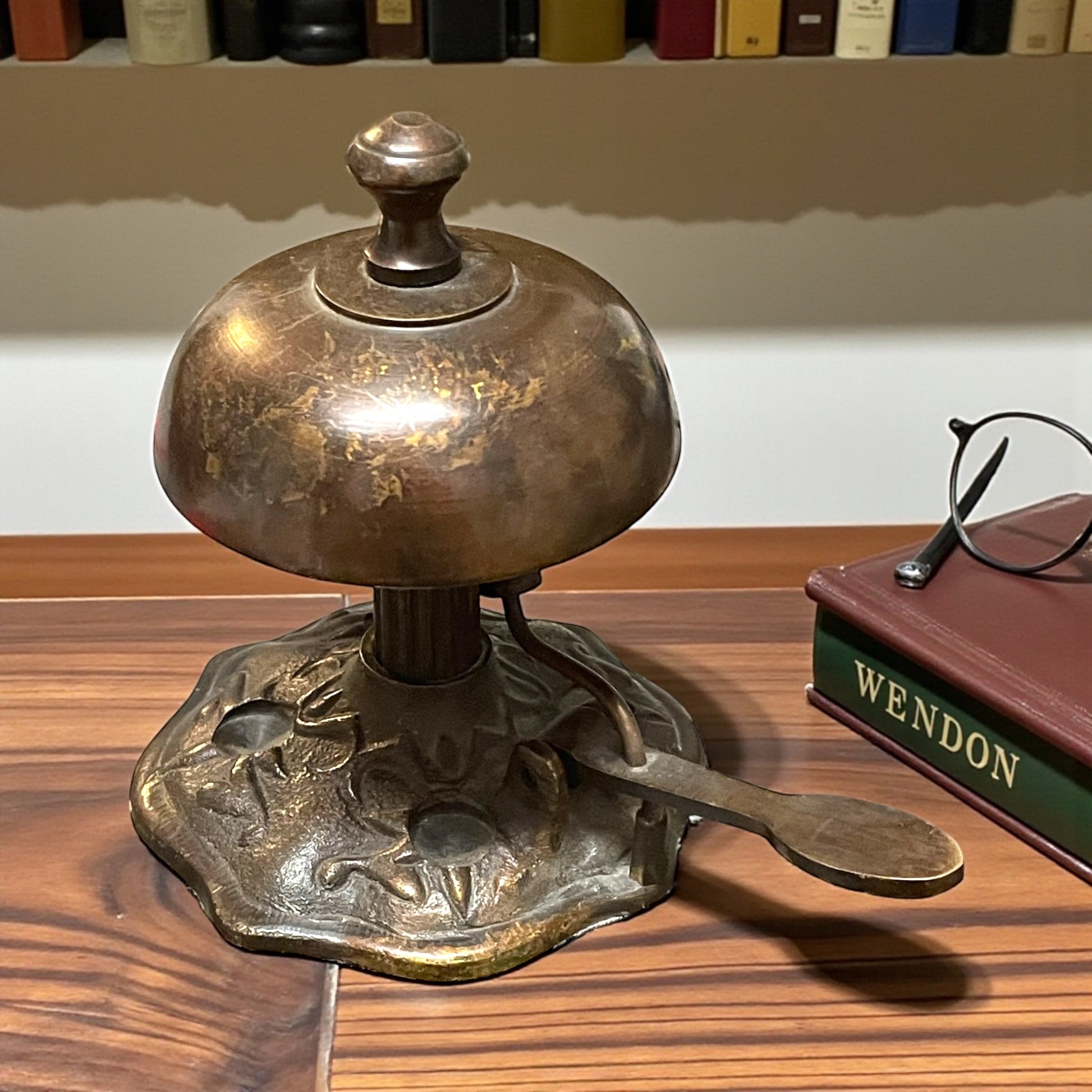 Sera di pioggia sottile, l’ingresso si apre con un fruscio di cappotti ancora umidi. Al bancone, l’ottone brunito cattura una lama di luce. Un cliente posa i guanti, inclina appena il polso e aziona la leva laterale: il campanello risponde con un suono pieno e brillante, rotondo, capace di farsi strada tra tappeti spessi e conversazioni soffuse. Per un attimo tutto si ferma—come se la voce dell’hotel stesso risuonasse. È una chiamata gentile, un invito al gesto cortese. Da allora, questo campanello ha custodito quel timbro limpido: un piccolo rito dell’ospitalità europea d’inizio Novecento.