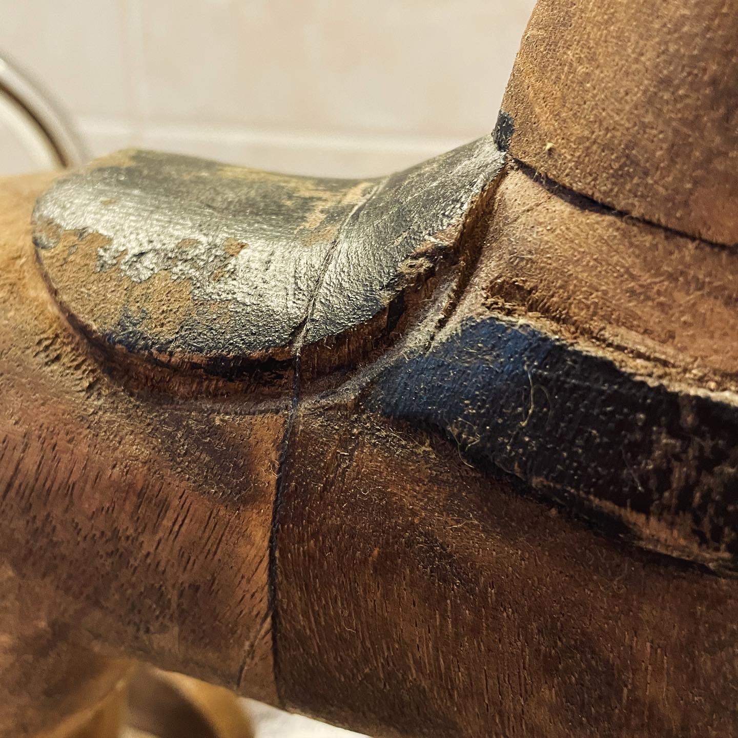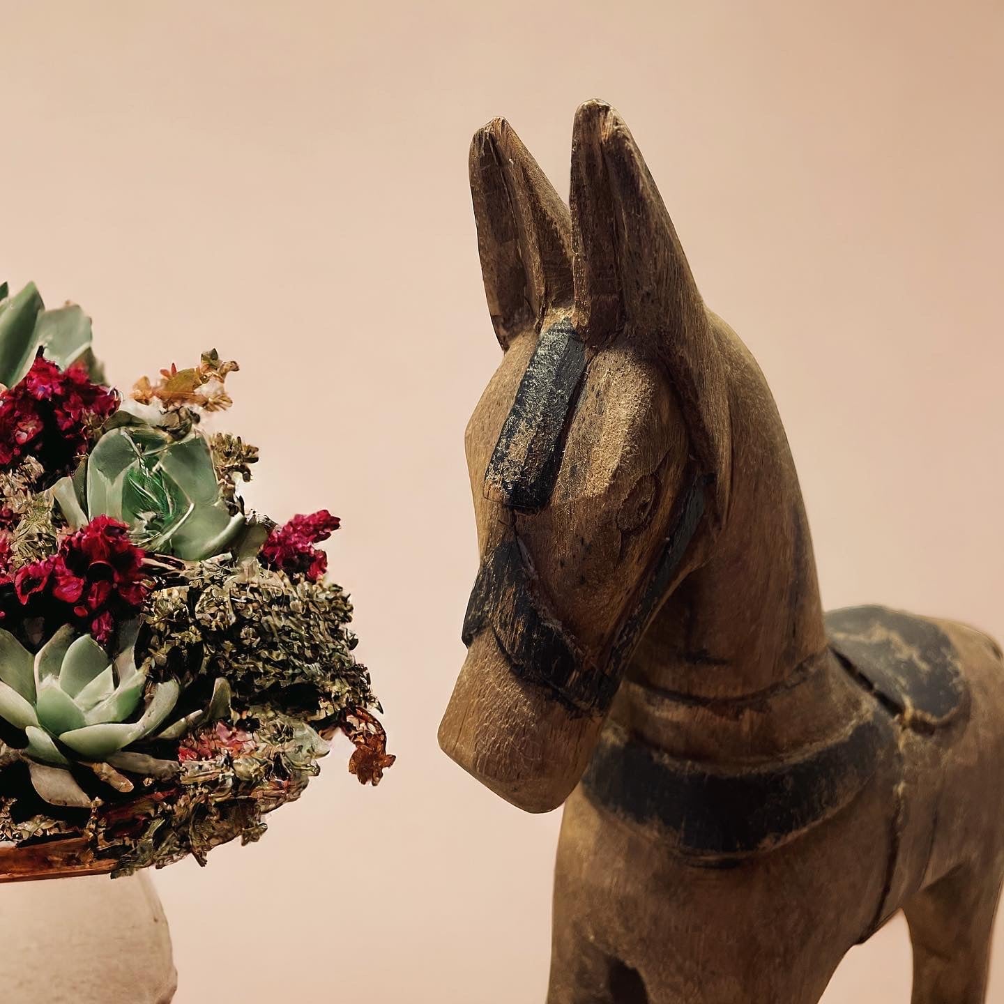 Gran bel recupero questo antico cavallo in legno a rotelle, un gioco prezioso che deve avere fatto davvero felice qualche bambino, probabilmente in una mattina di Natale, quando ancora a Natale nevicava sempre. Bella la manifattura, ottima la conservazione - solo una piccola scheggiatura, praticamente invisibile, ad un orecchio. Ci piace pensare che possa continuare i suoi giorni adottato da un altro bambino un po’ più cresciuto - e che il proprietario di una volta sorrida felice, vedendo il suo cavallino coccolato e amato da altri. Altezza cm 37.