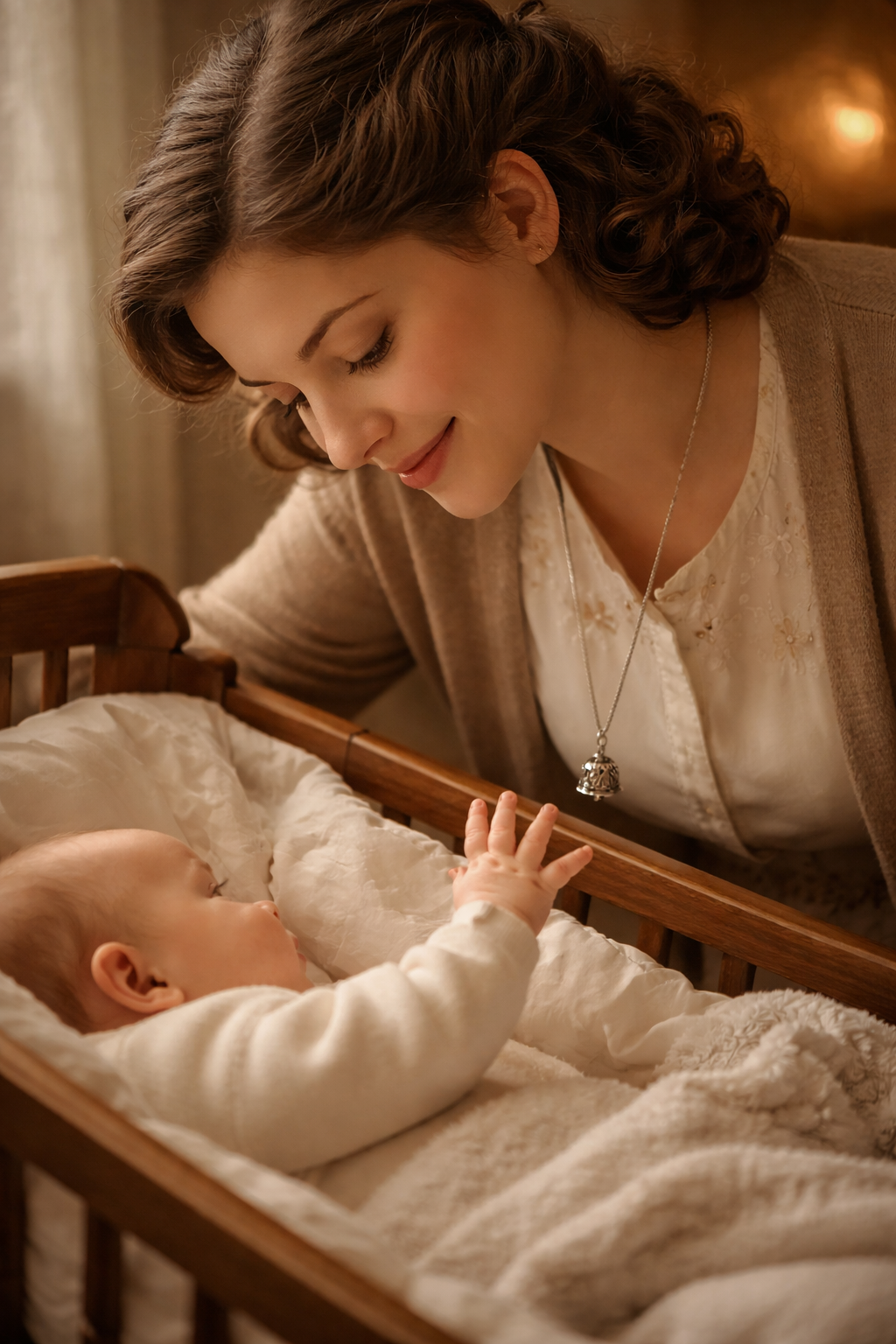 Non è un semplice pendente. È un suono che protegge. Questo chiama angeli in argento appartiene a una tradizione antica, profondamente radicata nell’area mediterranea, quando gli oggetti non erano solo ornamenti ma custodi silenziosi di credenze e gesti d’amore. Nella prima metà del Novecento, pendenti come questo venivano indossati per il loro lieve tintinnio: si credeva che il suono metallico fosse capace di allontanare gli spiriti maligni, il malocchio e le presenze invisibili, creando uno spazio protetto attorno alla madre e al bambino.