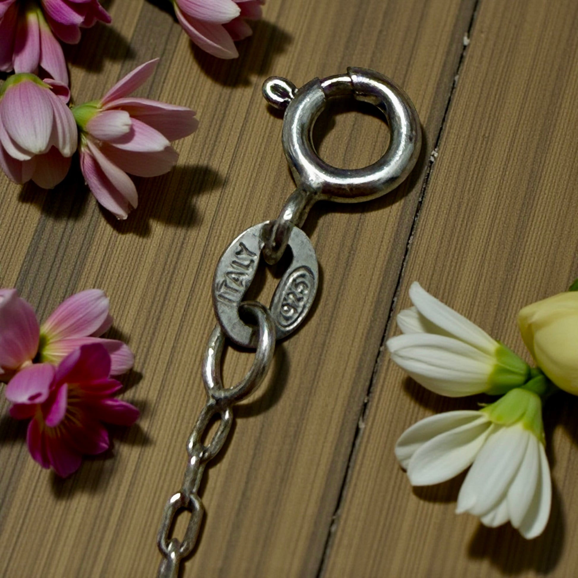 Antico pendente in argento “chiama angeli” di area Mediterranea su catenina 925 contemporanea