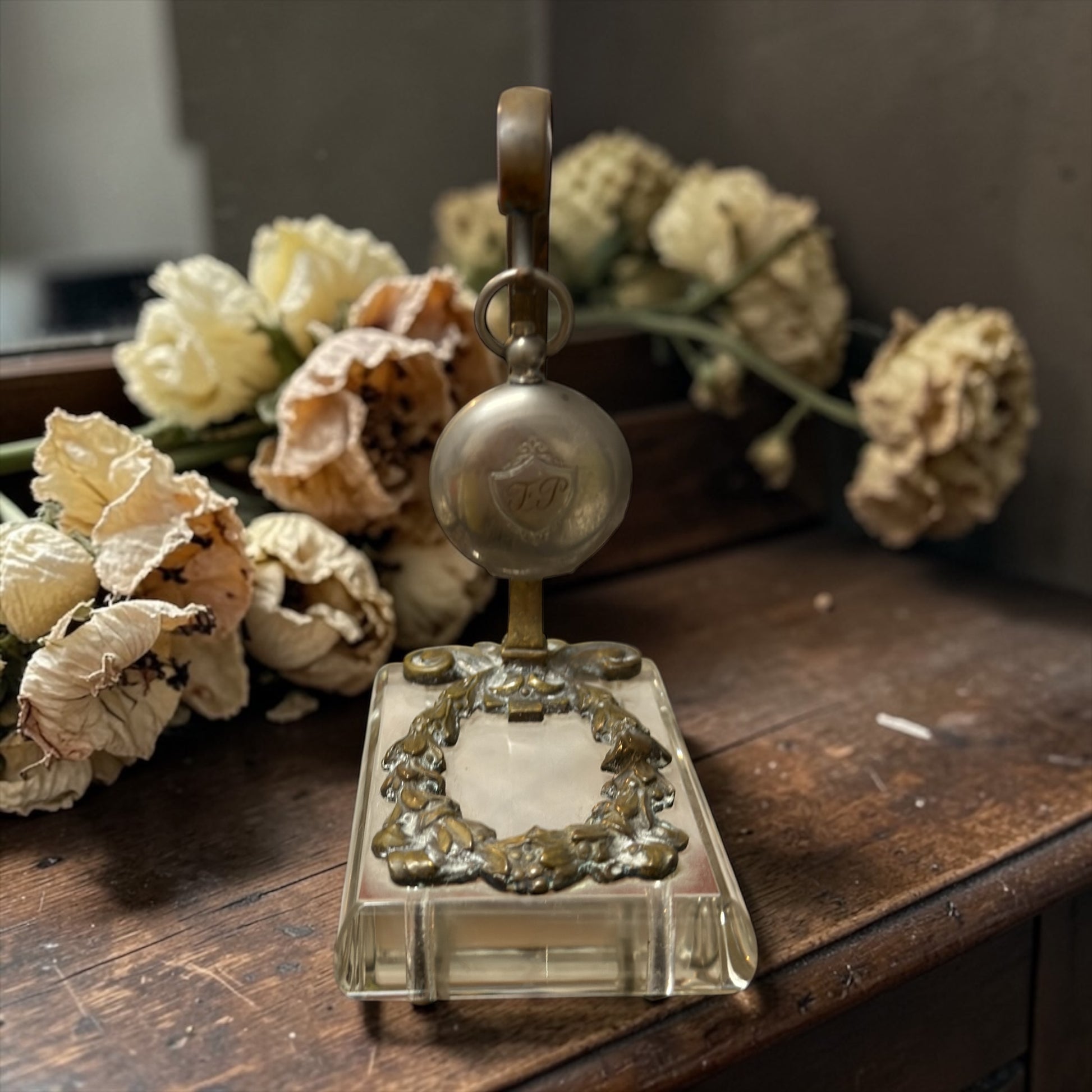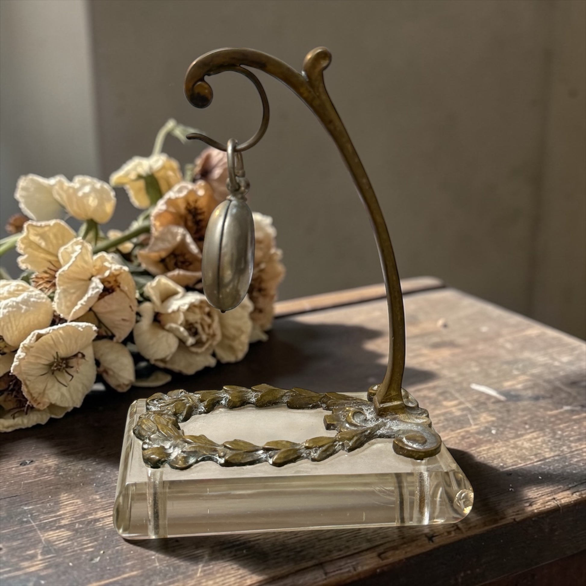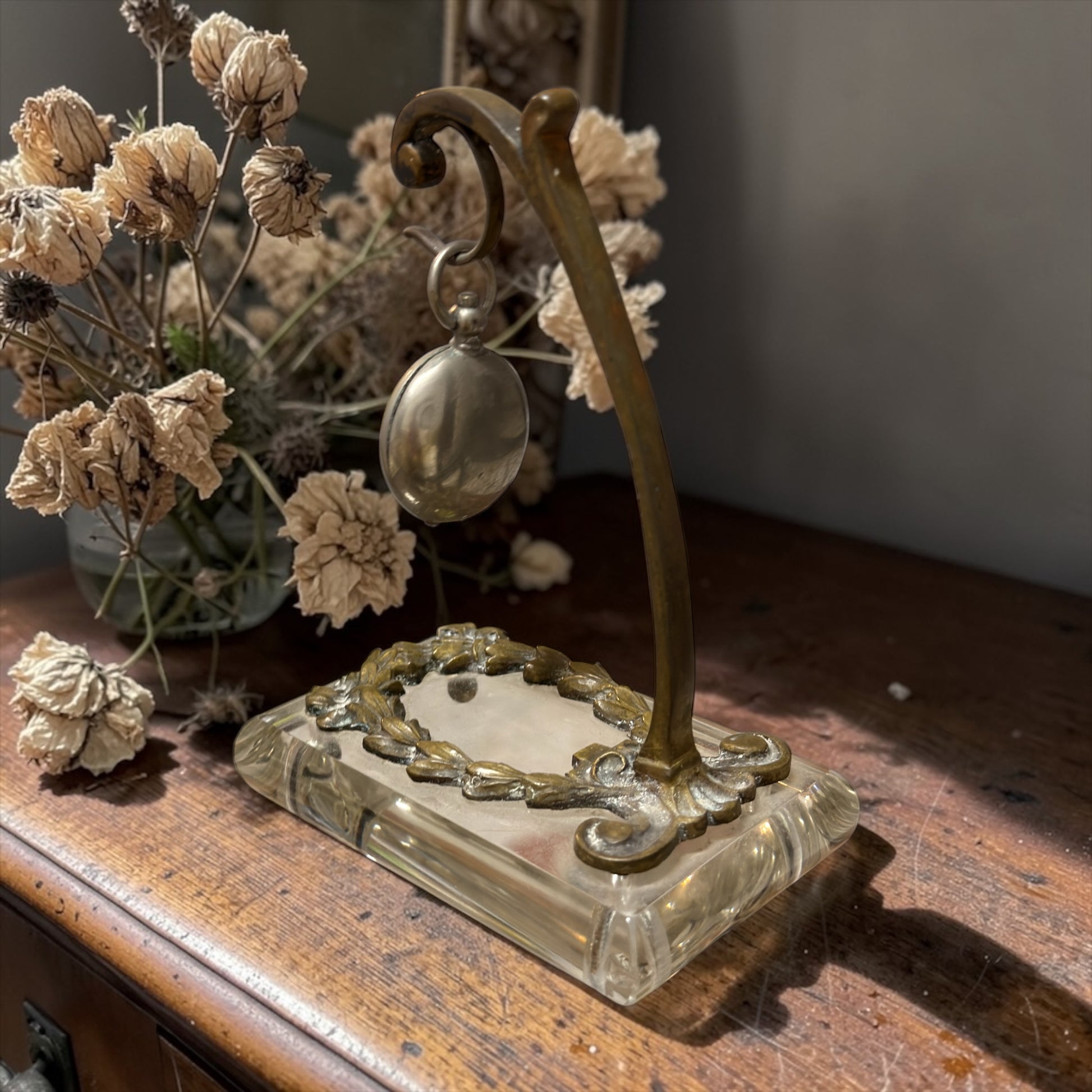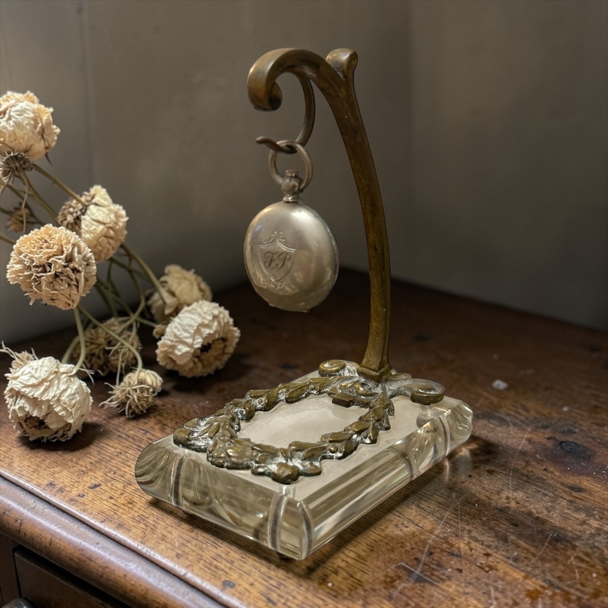 Antico porte-montre, porta orologio liberty in vetro molato e ottone, anni ‘10-‘20
