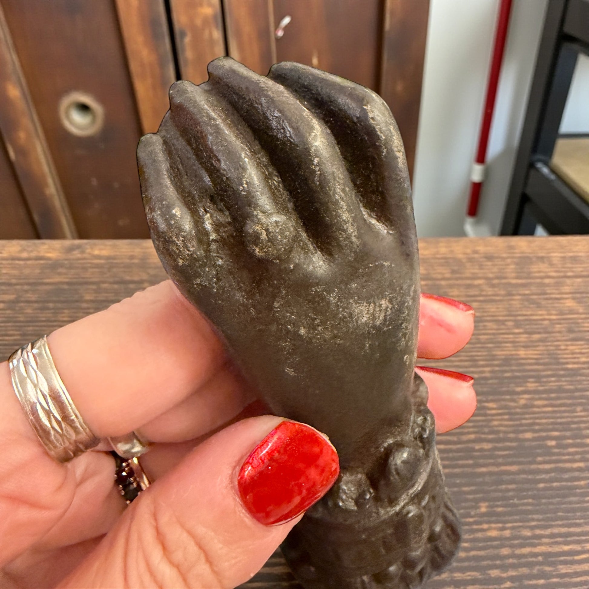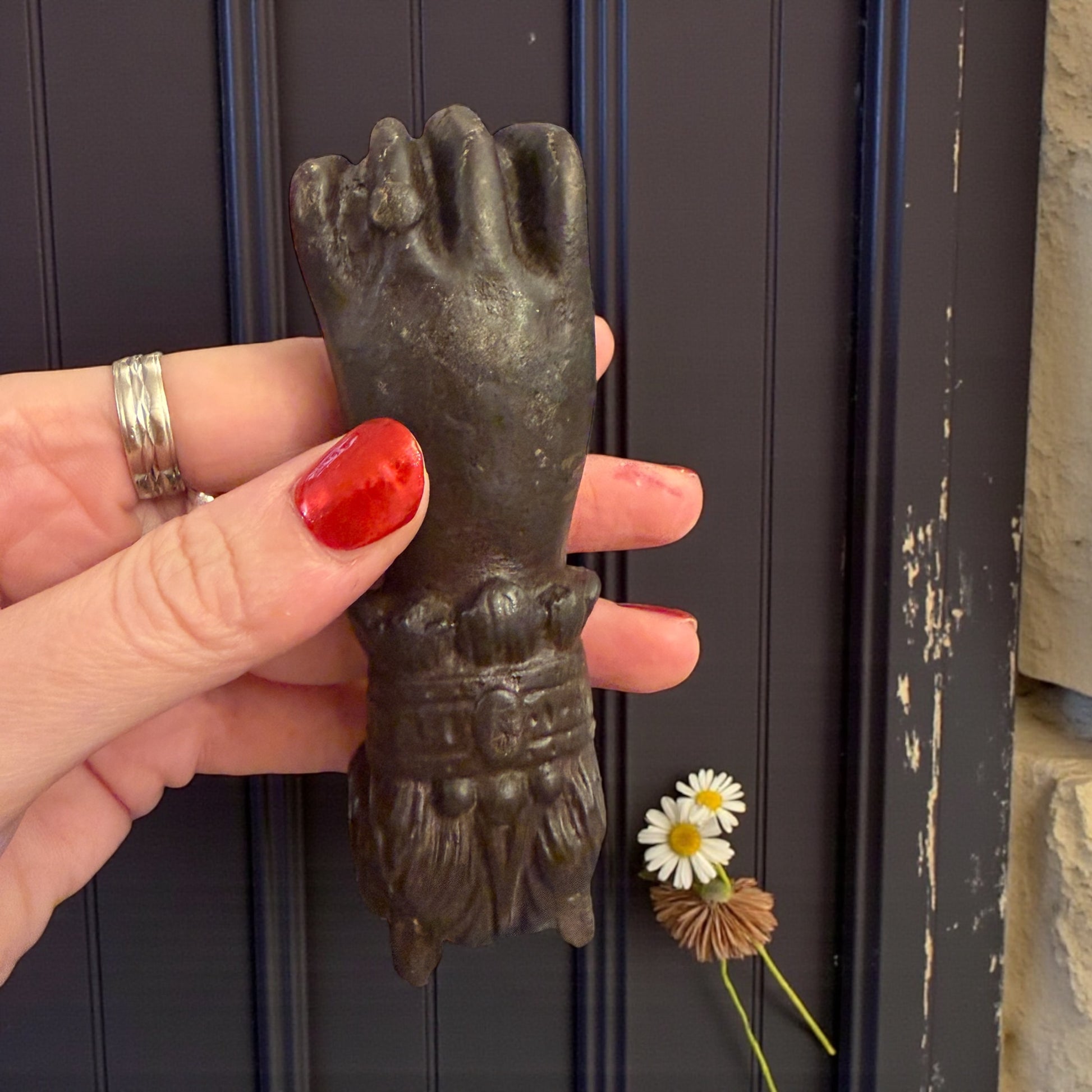 Battente in ghisa antico fine ‘800 primo ‘900 a guisa di mano femminile
