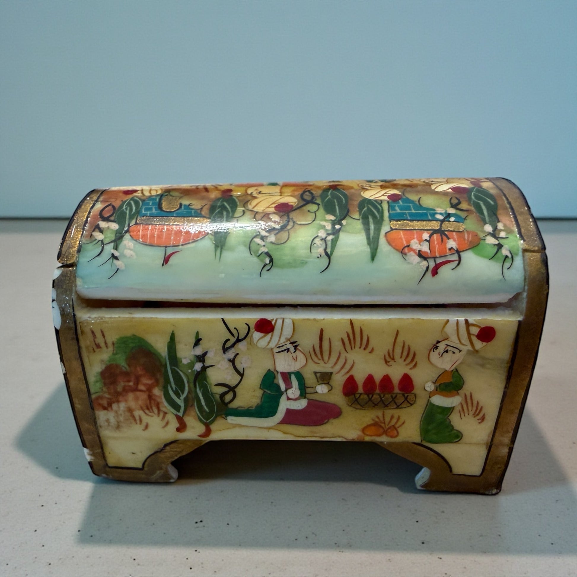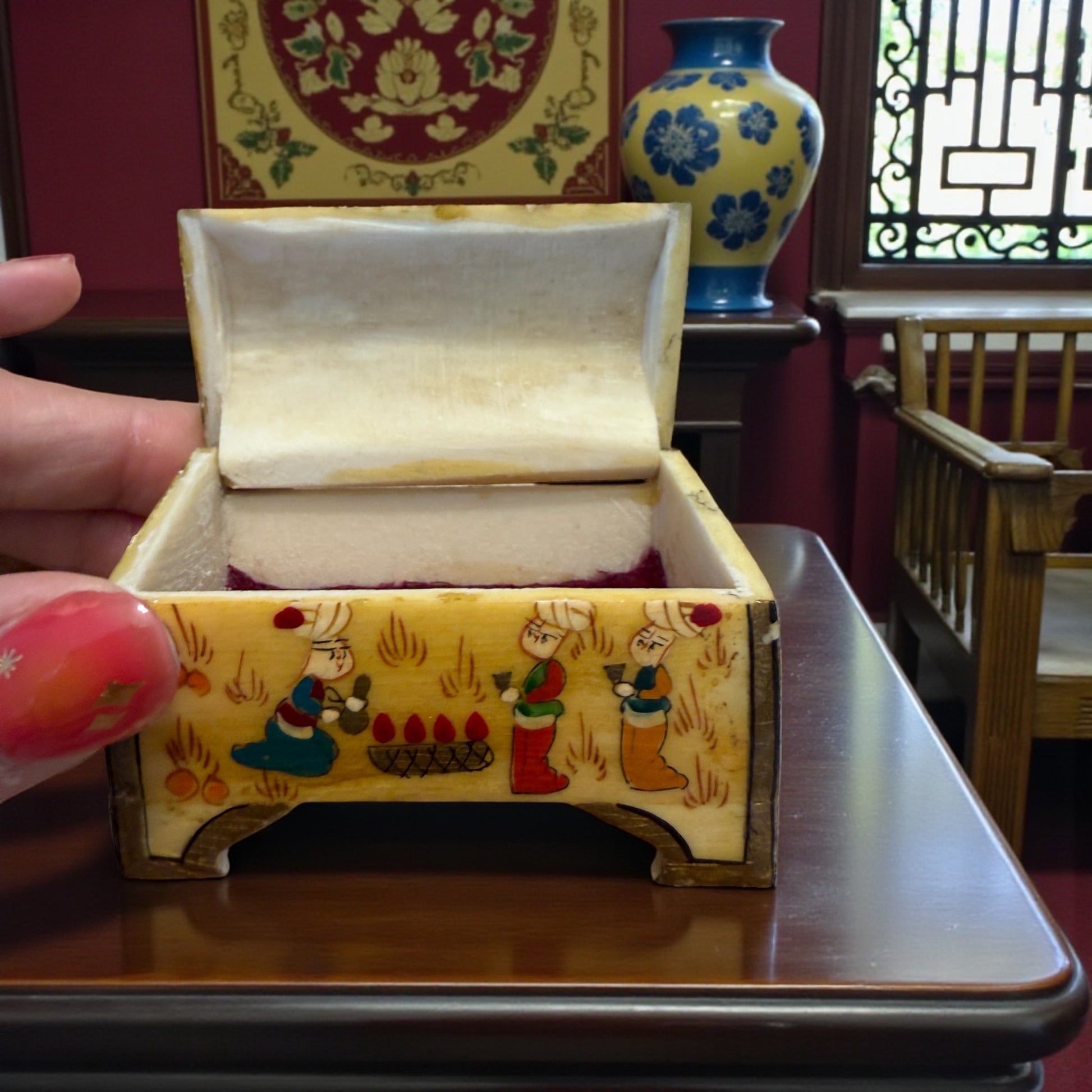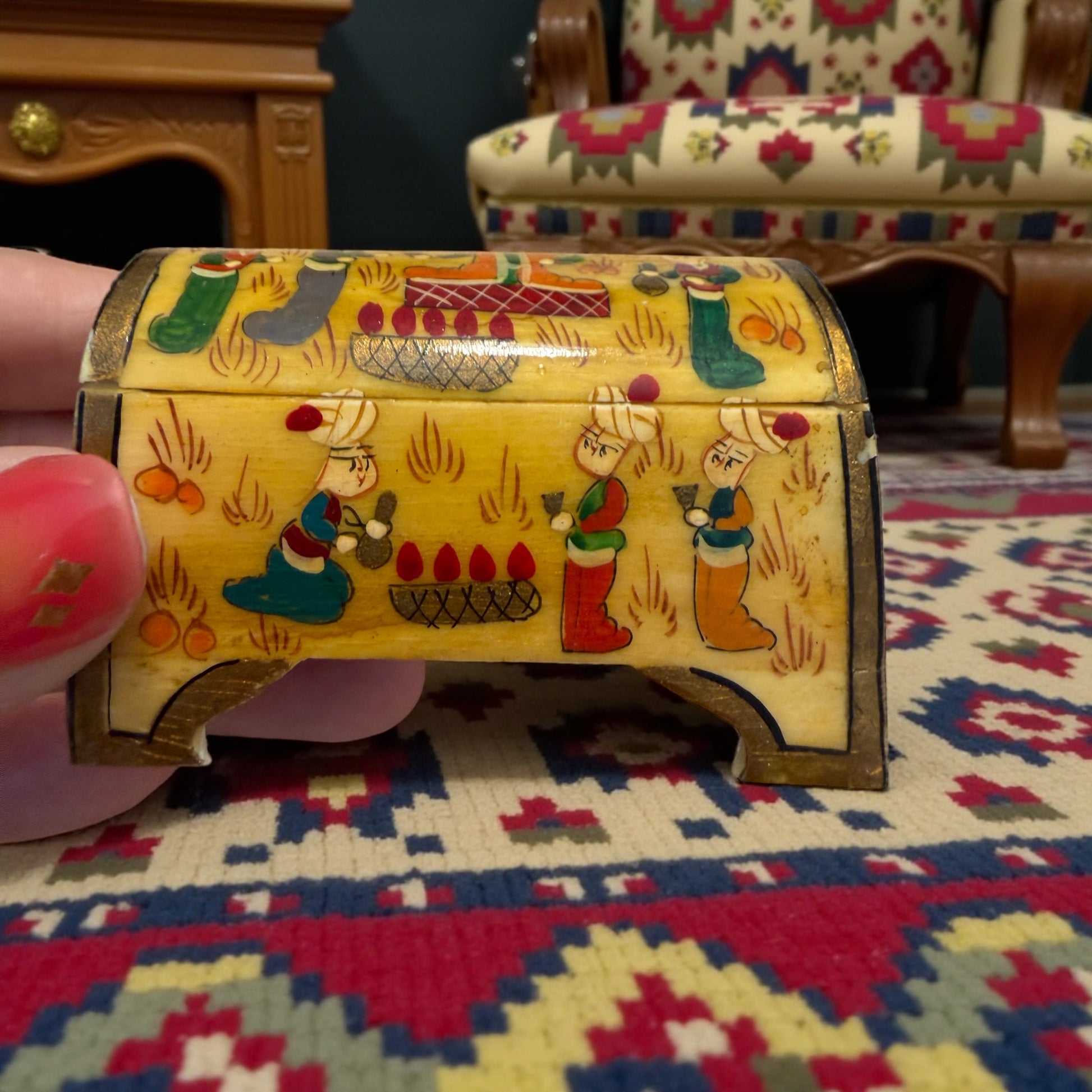Bauletto in miniatura realizzato interamente in osso e dipinto