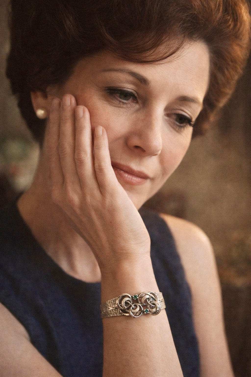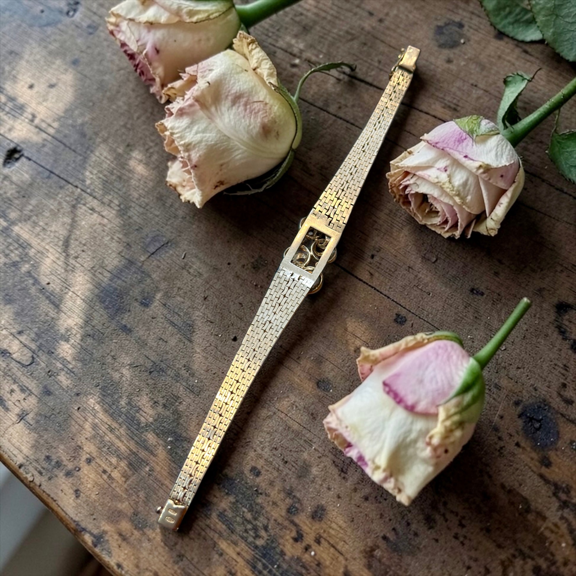 Questo bracciale in argento 925 ha quella presenza silenziosa che appartiene agli oggetti nati per essere indossati davvero, non per restare chiusi in un cassetto.È semi-rigido, con una maglia compatta e solida, e al centro porta una lavorazione a volute che richiama il gusto elegante degli anni Sessanta, modernista. Due piccole pietre verdi danno luce senza eccessi, con quella tonalità profonda che si vede spesso nei gioielli vintage europei. La chiusura è a scomparsa, ben funzionante, e il peso è importante: oltre 21 grammi di argento 925, punzonato. Indossato ha una presenza particolare, perché non è un bracciale sottile né appariscente: è uno di quei pezzi che sembrano appartenere a qualcuno prima di arrivare fino a noi, della giusta misura, del giusto gusto. Forse un regalo, forse un acquisto fatto per durare, sicuramente un ricordo che ha attraversato più di una stagione. Ora è pronto per un nuovo polso.