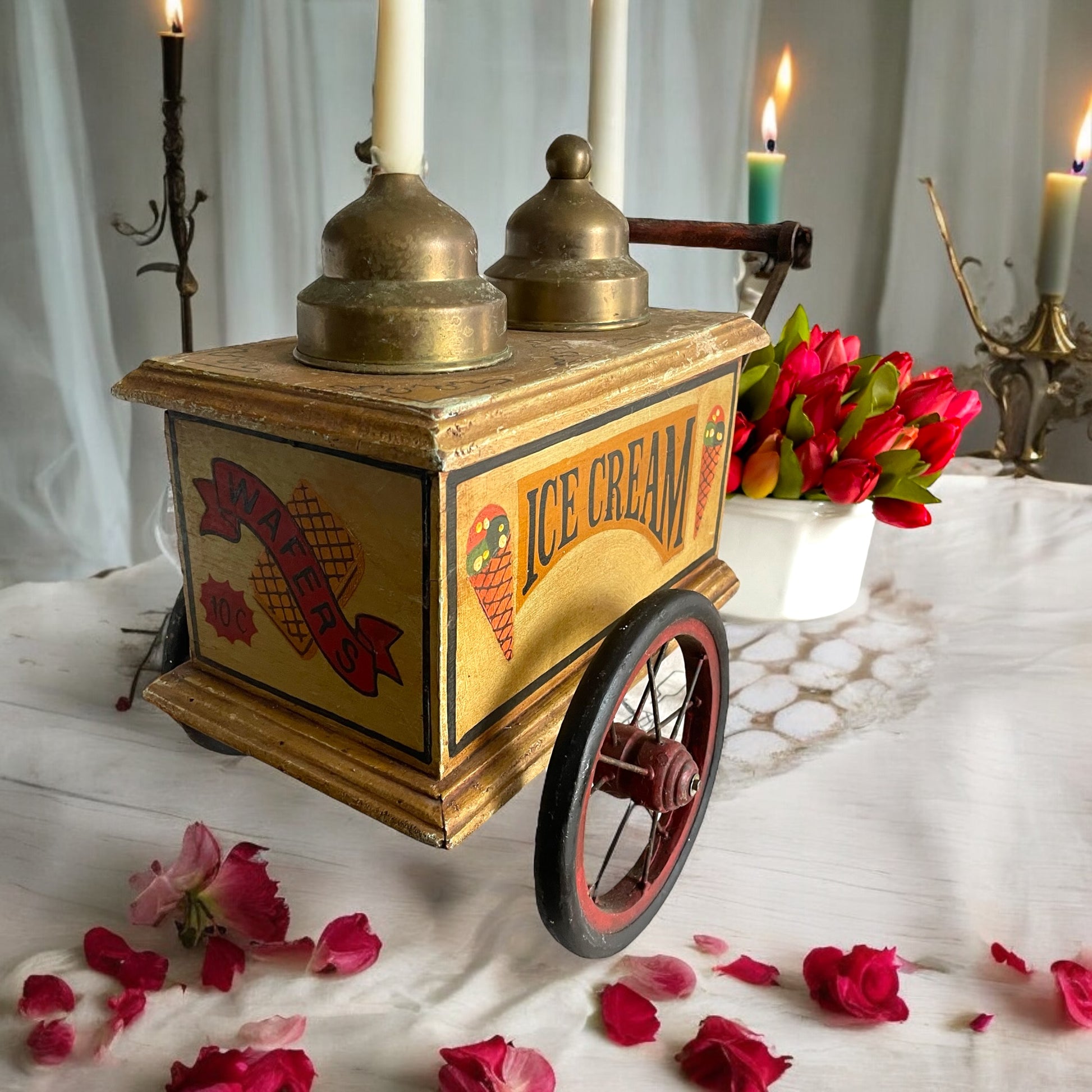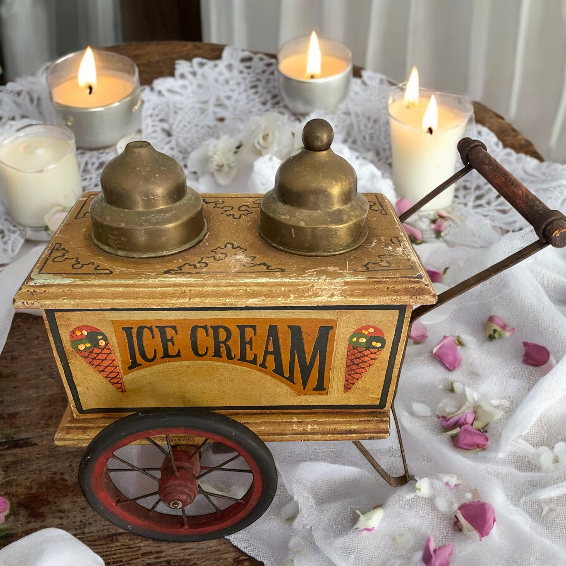 “Ice Cream!” - Erano gli anni ’50, e per un bambino con gli occhi spalancati davanti a questo carretto, il mondo poteva trasformarsi in un attimo. Bastava stringere le maniglie, spingere leggermente… e si era già dall’altra parte dell’oceano, nelle strade polverose dell’America degli anni ’20. Il gelataio ambulante diventava lui. Con voce squillante gridava “Gelati, signora! Wafers alla vaniglia, solo dieci centesimi!”