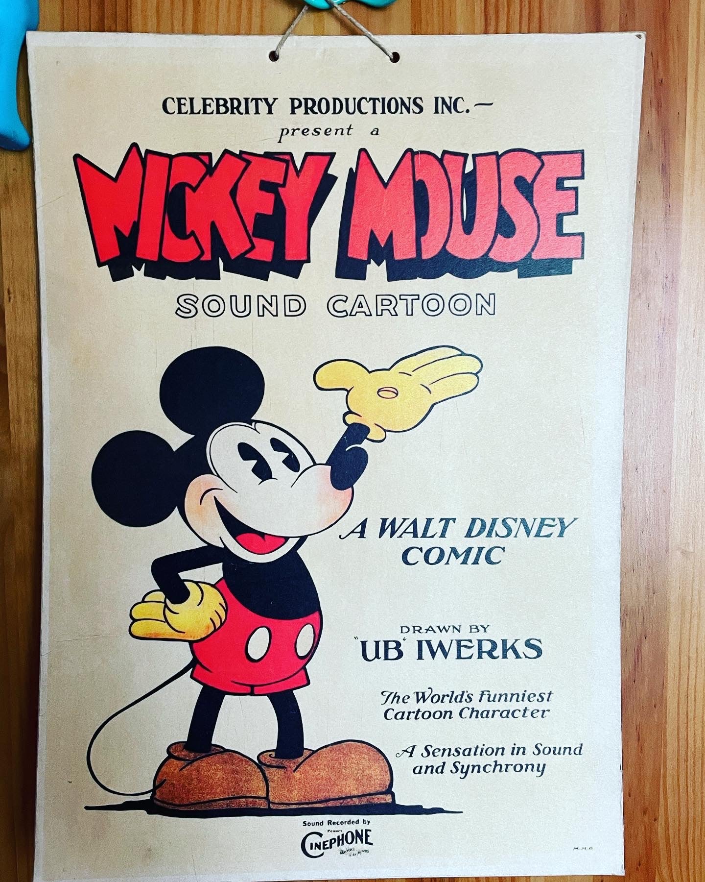 vecchio #cartonato #pubblicitario della #disney proveniente dai Paesi Bassi che celebra l’uscita al #cinema del #cartone di #mickeymouse realizzato da #cinephone