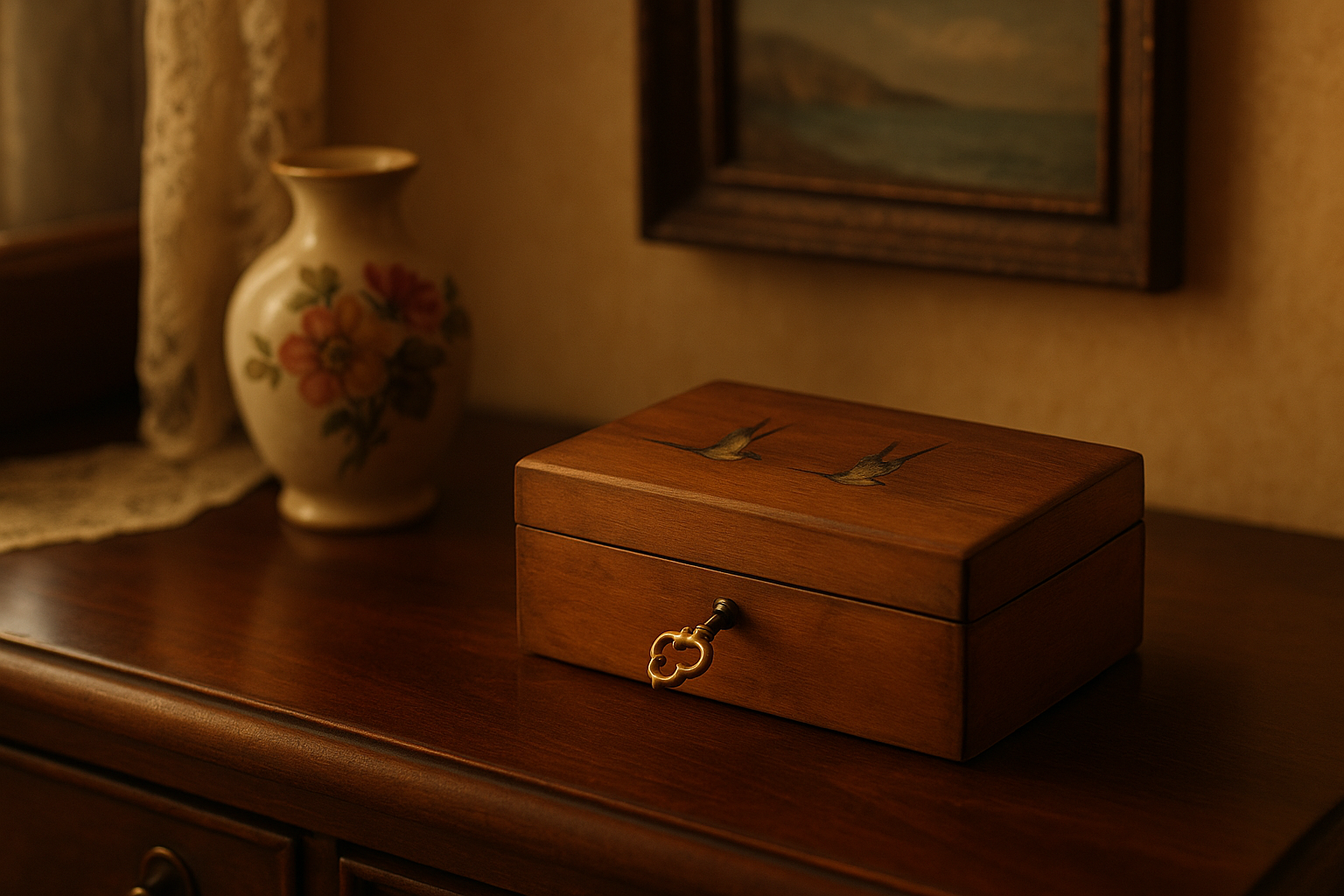 Cofanetto scatola portagioie di Sorrento con rondini, serratura e chiave
