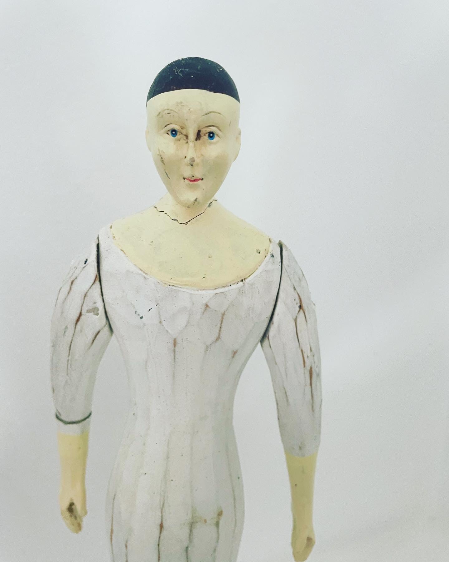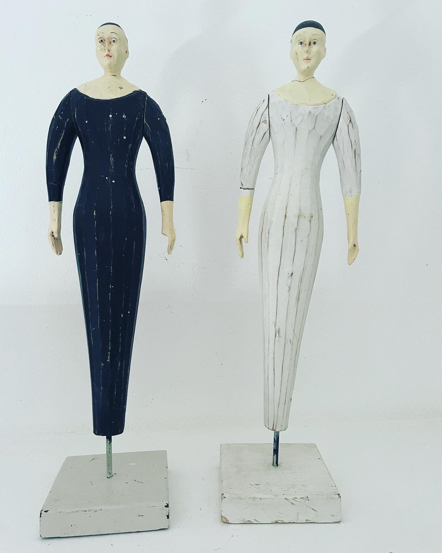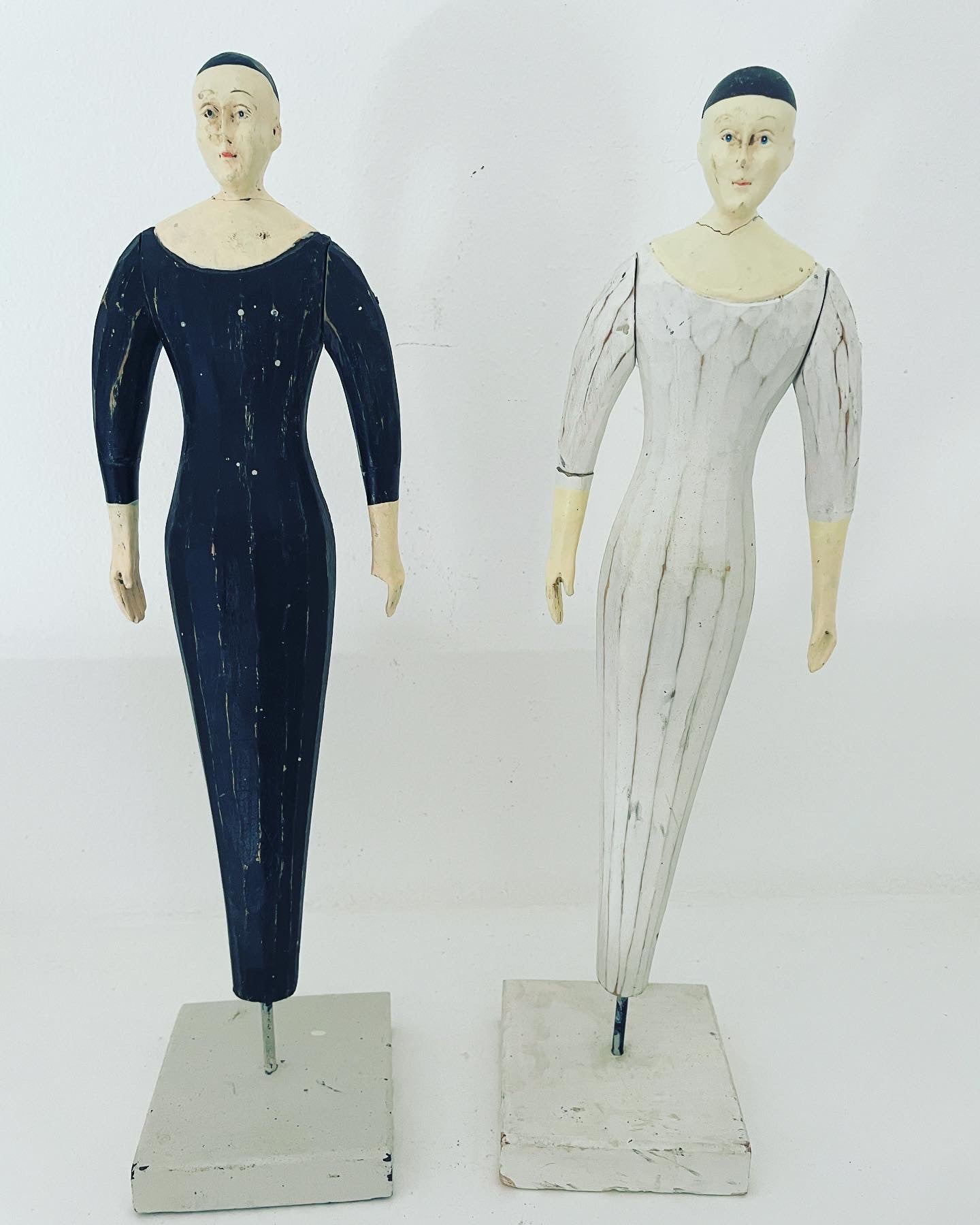 buonferragosto in stile #wunderkammer con questa altra coppia di #bambole in legno su supporto alte cm 40 e con braccia snodate; #segnideltempo e riparazioni alla testa alle braccia, mancano due dita alla mano, io le trovo adorabili nel loro #vintage e come dico sempre con quel giusto punto d’incontro d’atmosfera tra inquietudine e bellezza. …come la vita!!