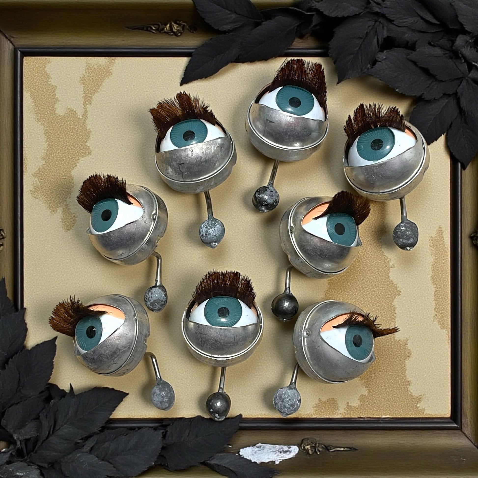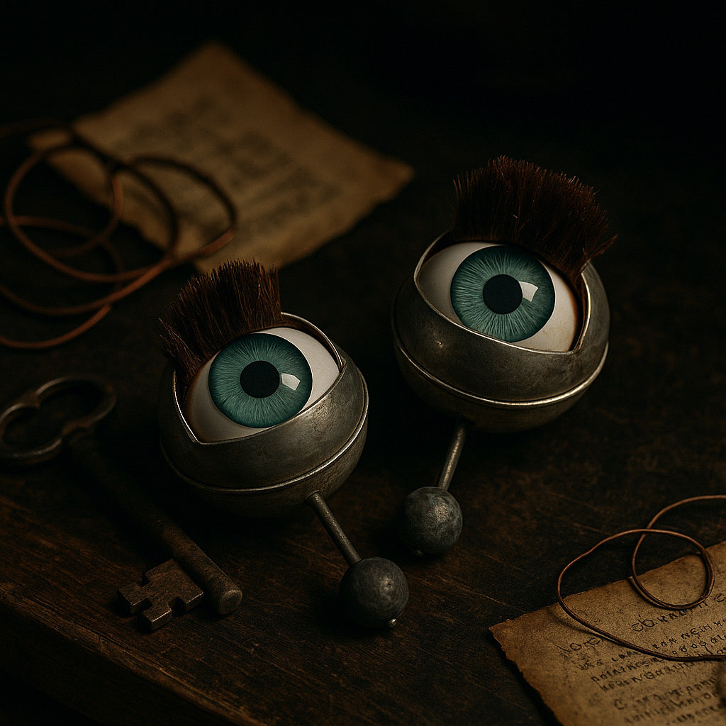 Quando una bambola chiude gli occhi, racconta un segreto. Questi occhi meccanici, appartenuti a bambole GeGe degli anni ’60, conservano ancora quel movimento lento e naturale che imitava il sonno dei bambini. Basta inclinarli appena, e il piccolo peso in metallo aziona il sistema a bilanciere: le palpebre scendono, la storia si riaccende. Immagino mani pazienti chine su un tavolo di legno, in un laboratorio italiano degli anni del boom: ingranaggi semplici ma geniali, iridi profonde, ciglia in setola naturale applicate una ad una. Era un’epoca in cui anche i giocattoli avevano un’anima, perché erano costruiti per durare. Questi meccanismi oculari originali sono perfetti sia per chi restaura bambole d’epoca sia per chi ama gli oggetti capaci di evocare emozioni forti, dal fascino vintage leggermente inquietante. Sono tutti funzionanti, con normali tracce del tempo che raccontano autenticità, non difetti.