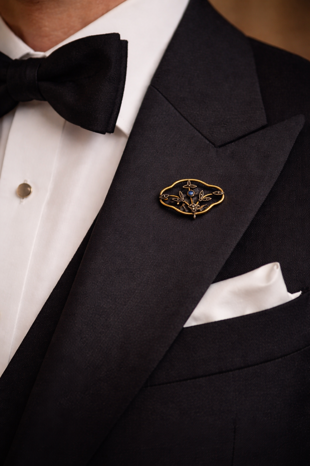 È un equilibrio sottile tra luce calda e luce fredda. Tra discrezione e presenza. Non è grande (circa 3 cm). E proprio per questo funziona. All’epoca le spille da giorno erano il modo più raffinato per dichiarare gusto, cultura, appartenenza. Non servivano a brillare. Servivano a distinguere. Oggi fanno la stessa cosa.
