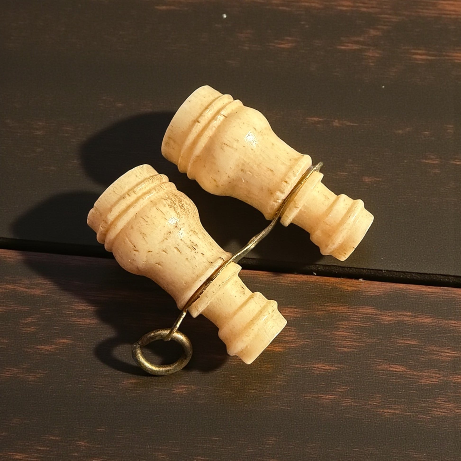 Doppio visore Stanhope a guisa di binocolo, ciondolo antico in osso con micro lenti
