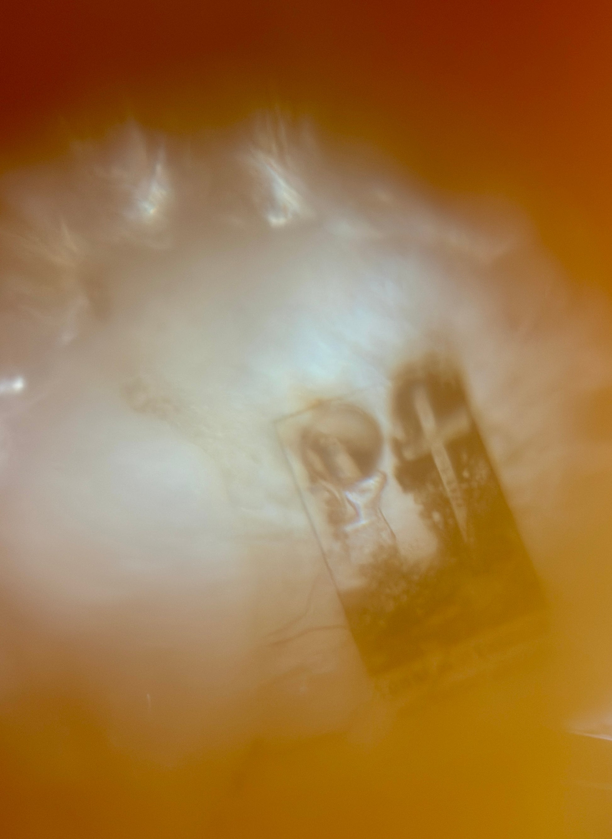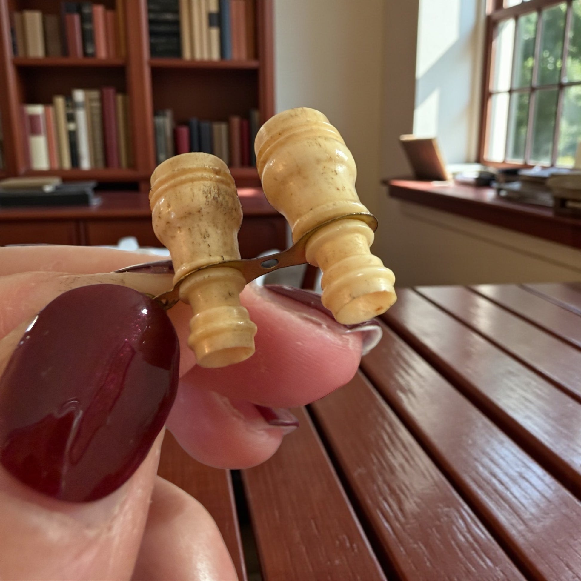 Ci sono oggetti così piccoli da stare tra due dita… e così grandi da contenere un mondo intero. Questo minuscolo doppio binocolo Stanhope sembra quasi respirare: nasconde qualcosa nei due piccoli cilindri torniti, chiari, lisciati dal tempo, uniti da una sottile anima di ottone che ancora oggi porta, con sorprendente fierezza, il suo anellino per essere appeso al collo. Avvicinando l’occhio, la luce entra e succede la magia: da una parte appare la Croce con una santa in preghiera, con una piccola ombra che non disturba affatto la scena; dall’altra, perfettamente nitida, Santa Teresa emerge come un frammento di devozione che ha attraversato generazioni senza perdere delicatezza. Immagino le mani che, un secolo fa, si chinavano per guardare queste stesse immagini. Mani che forse cercavano consolazione, forse un ricordo, forse un modo per sentirsi meno soli. E mentre lo osservo ora, mi accorgo che sto facendo lo stesso: entro silenziosamente in quel minuscolo varco, lasciando che l’oggetto mi racconti cosa custodiva. Un piccolo scrigno di luce, pensato per accompagnare qualcuno vicino al cuore. Ora è pronto ad accompagnare qualcun altro.