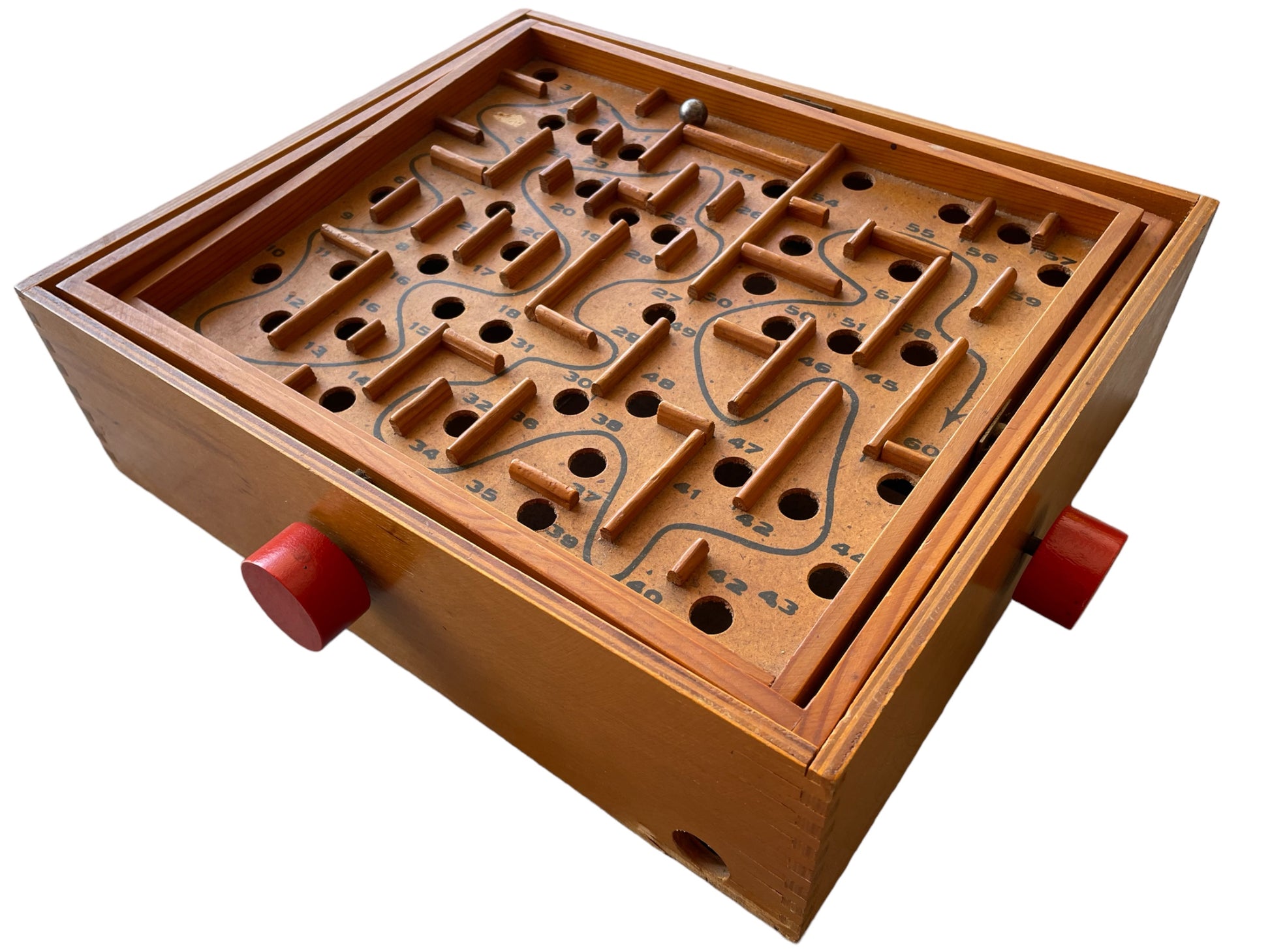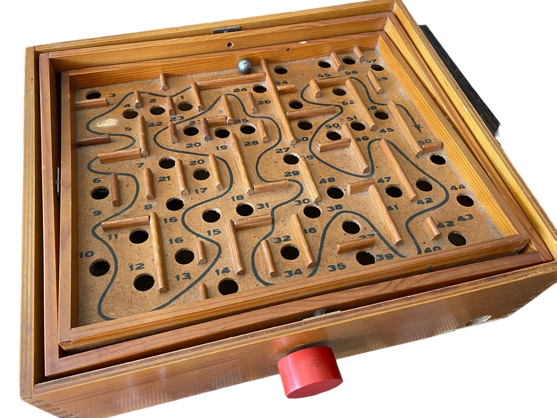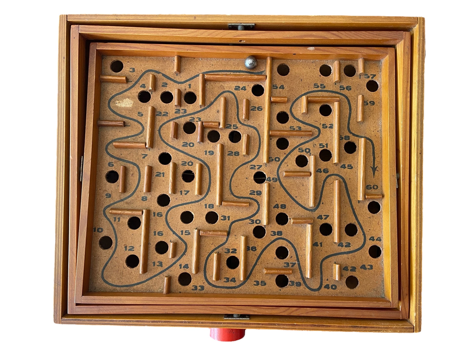Pezzo #super !!! L’antenato del #flipper e dei #videogiochi … il #giocodellabirinto detto anche #flipperdoppio !!! Formato da piani di legno sovrapposti è comandato da due manopole che si girano contemporaneamente per modificare l’inclinazione del piano e gestire il movimento della pallina 🥰 ci sono due sfere: una grande che si ferma nei fori ed una piccola che invece casca nei buchi e, come nel #biliardino , esce dal foro della base per essere rimessa in pista. È un #anticogioco #vintage molto #raro ed in condizioni stupende. Divertentissimo 🍭🍭🍭