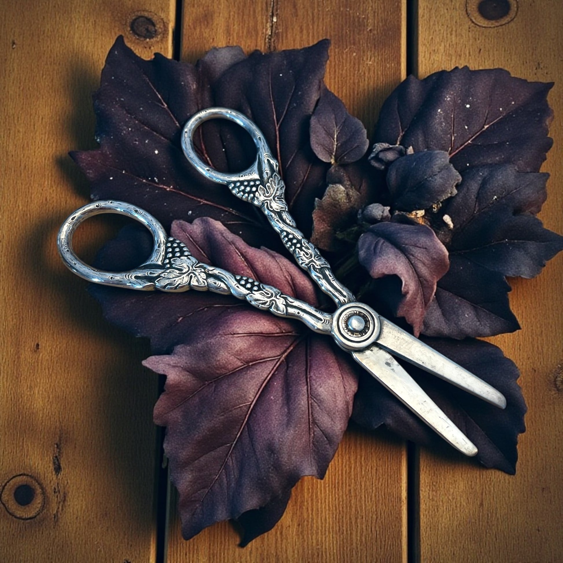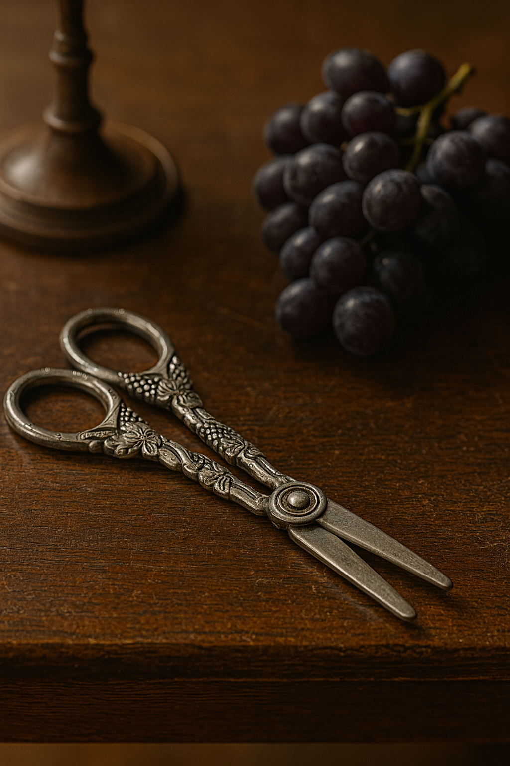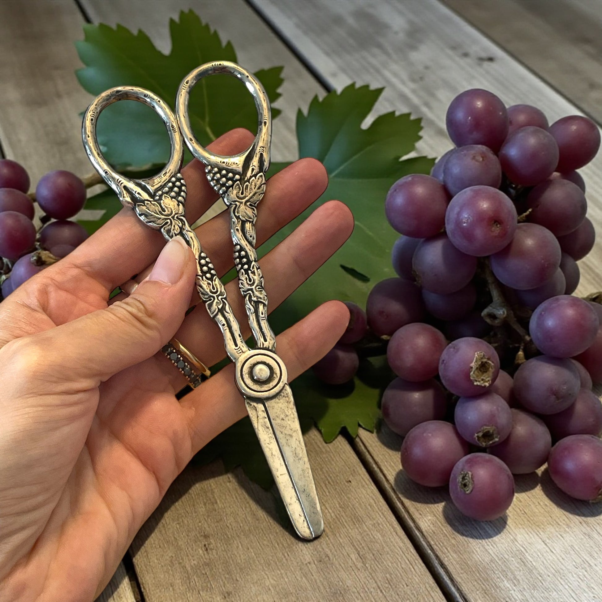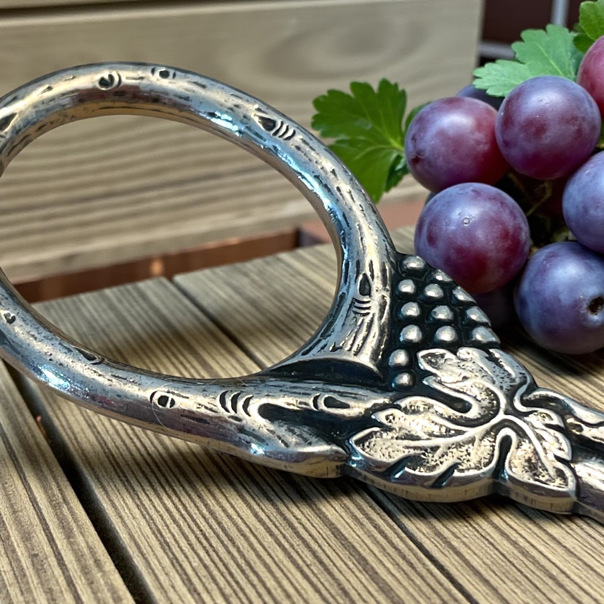 Non tagliano solo l’uva: raccontano un gesto antico, fatto di eleganza e lentezza. Ci sono oggetti che nascono per servire, e altri che nascono per restare. Queste forbici da uva in argento massiccio appartengono alla seconda categoria. Portano con loro il galateo di un tempo in cui il frutto non veniva strappato, ma offerto. Lentamente, con cura. Senza fretta. Firmate Mema – Sweden, decorate a rilievo con tralci di vite e grappoli d’uva, sono un pezzo autentico risalente agli anni ’40–’50, solide e pesanti in mano (73,65 grammi). Ancora perfettamente funzionanti, scorrono con precisione meccanica intatta: qualità nordica, essenziale e duratura. Oggetti così non hanno bisogno di essere reinventati: basta posarli sulla tavola per dare storia a ciò che tocchi. Perché ci sono dettagli che non aggiungono solo bellezza: aggiungono profondità.