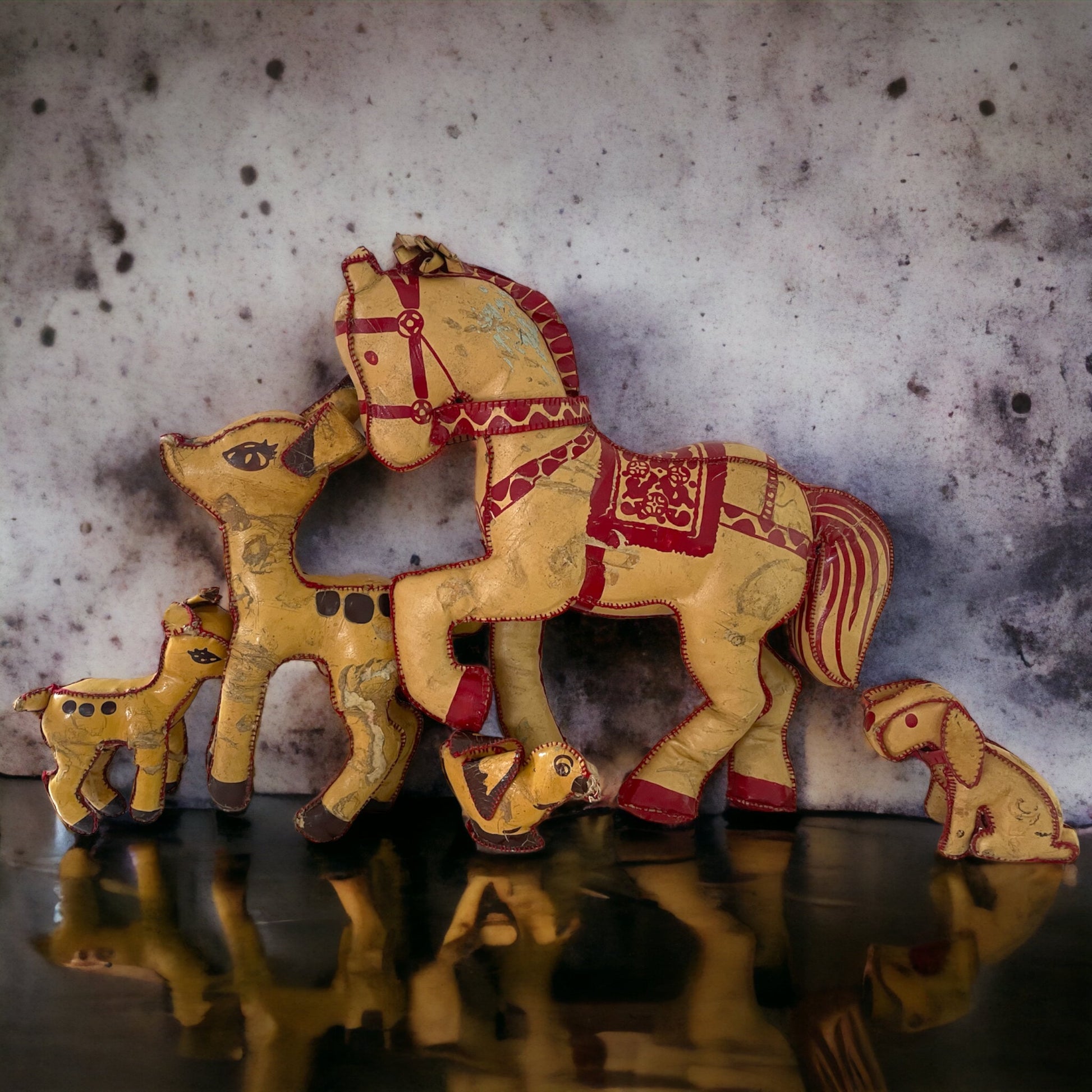 Stasera vi regaliamo #atmosfera : #torniamobambini ? Con questi #antichigiocattoli degli #anni50, i #vecchipupazzi di #fustagno che rappresentano gli animali: il cavallo, il cerbiatto mamma e il piccolino, l’uccellino e il cane. Per avere idea delle dimensioni, il cavallo misura 34 x 32 cm. Oggetti #vintage che parlano di un bambino felice, e sussurrano ancora tutte le parole segrete dei giochi..