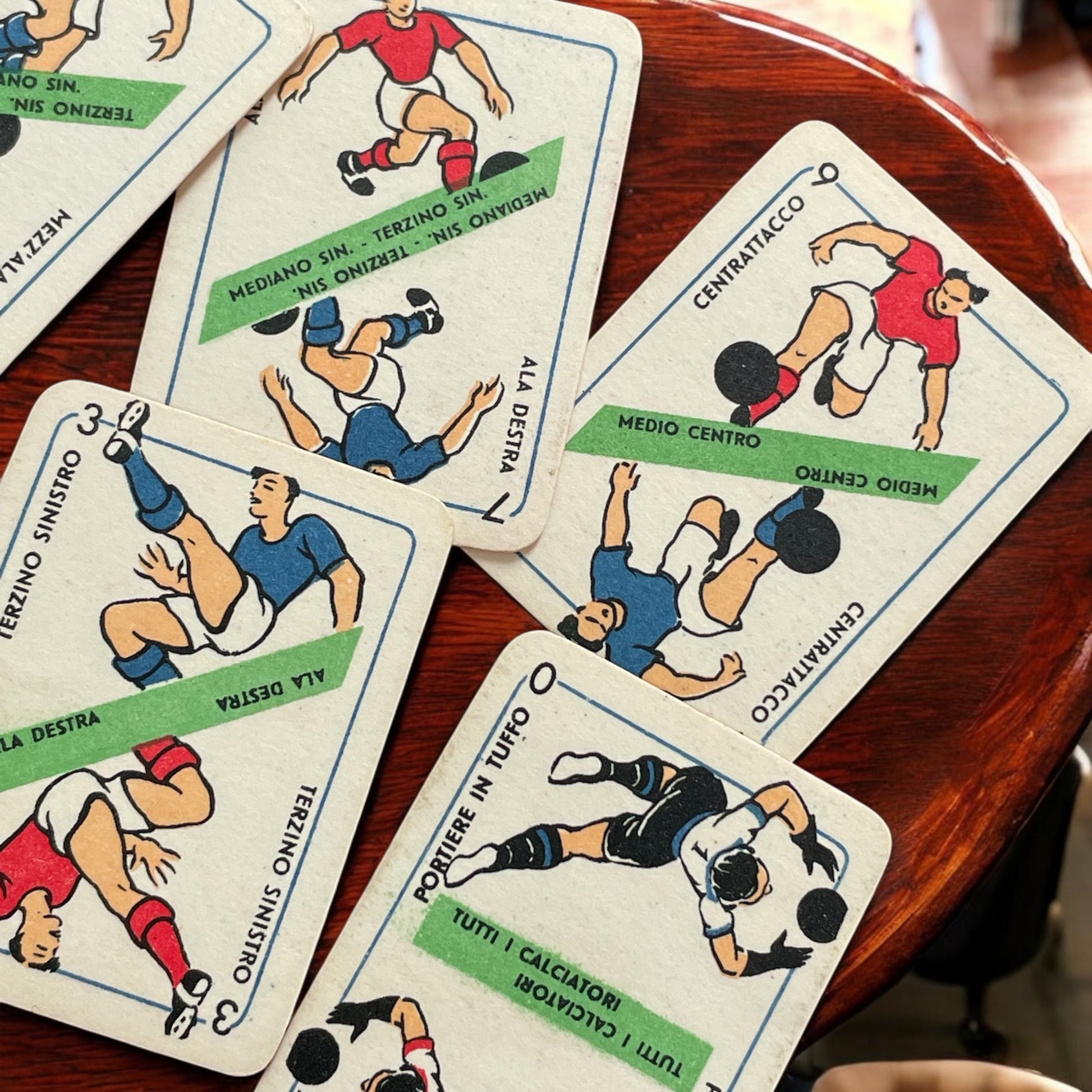 Oggi queste 90 carte mignon, custodite ancora nella loro scatolina bordeaux originale e accompagnate dal foglietto con le regole, sono una finestra autentica sulla passione calcistica dell’Italia del dopoguerra. Un piccolo cimelio che racconta le domeniche lente, le radio gracchianti, i bambini coi pantaloni corti e i grandi che, tra un Campari e un caffè, si sfidavano a suon di “calcio d’angolo” e “tiro a rete”.
