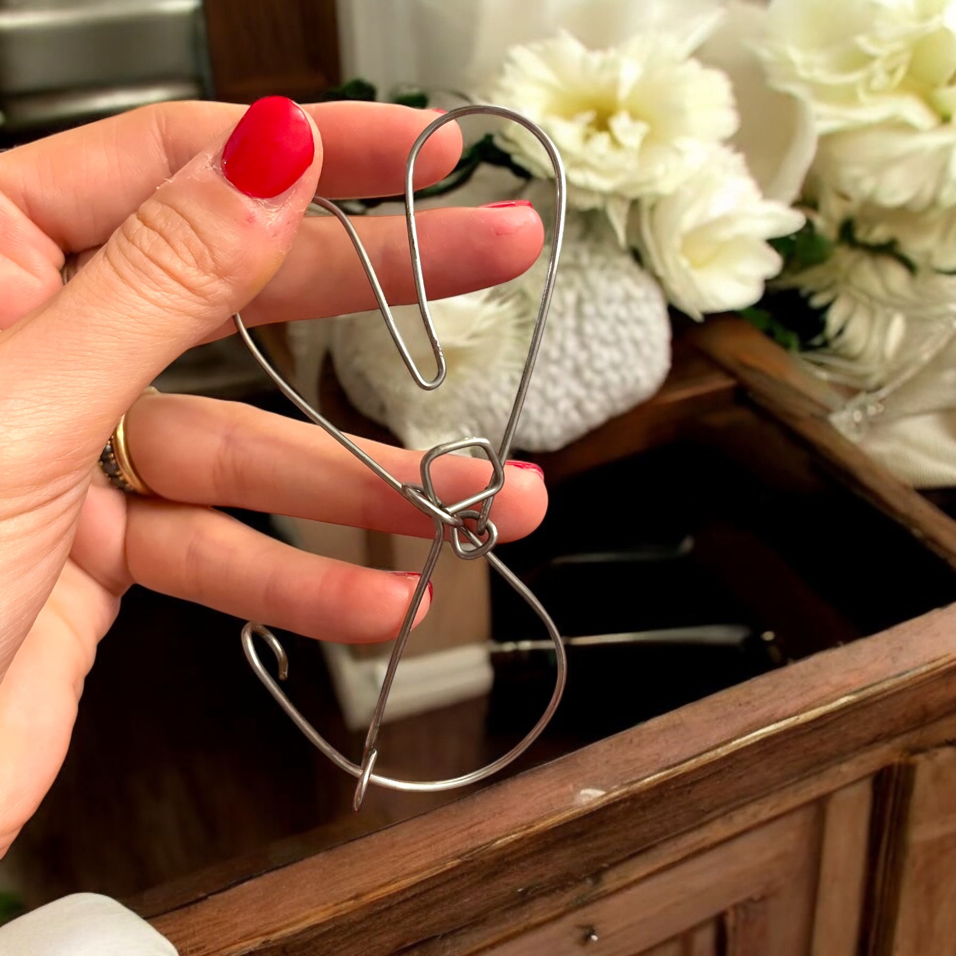Gioco francese originale anni ’20-’30, “Le Cœur Prisonnier”, in filo di metallo con scatolina originale in cartoncino rosa e foglietto d’istruzioni. Oggetto raro in queste condizioni: completo, integro, poetico.