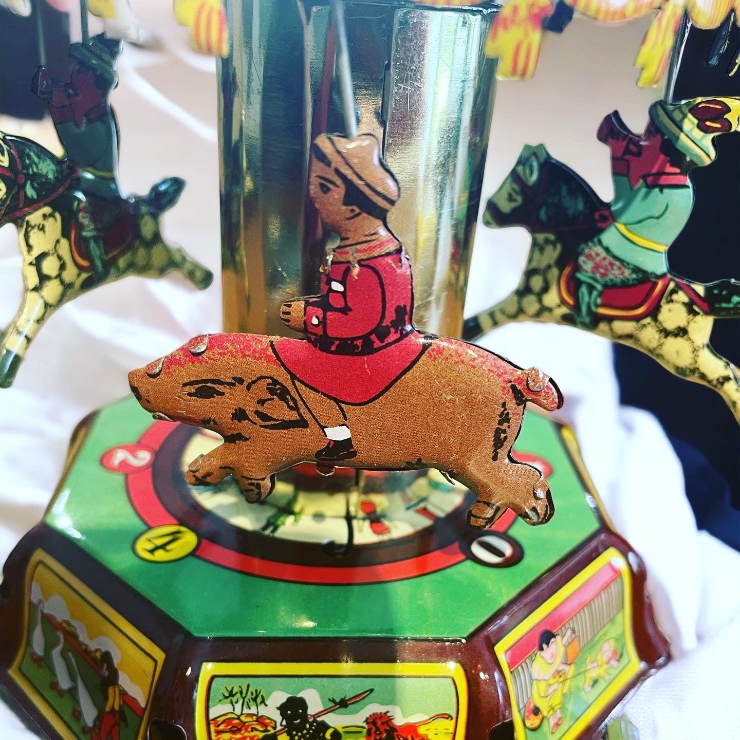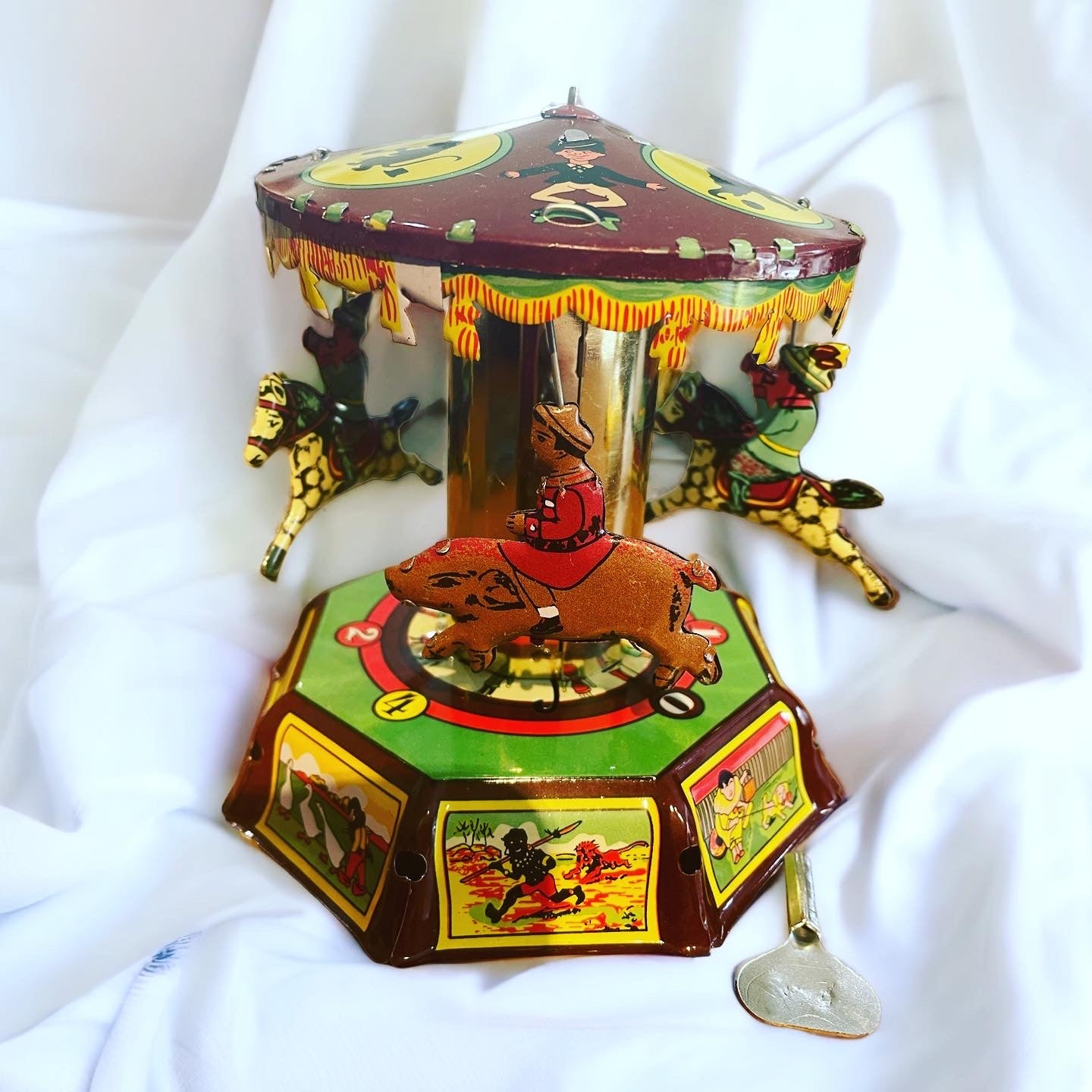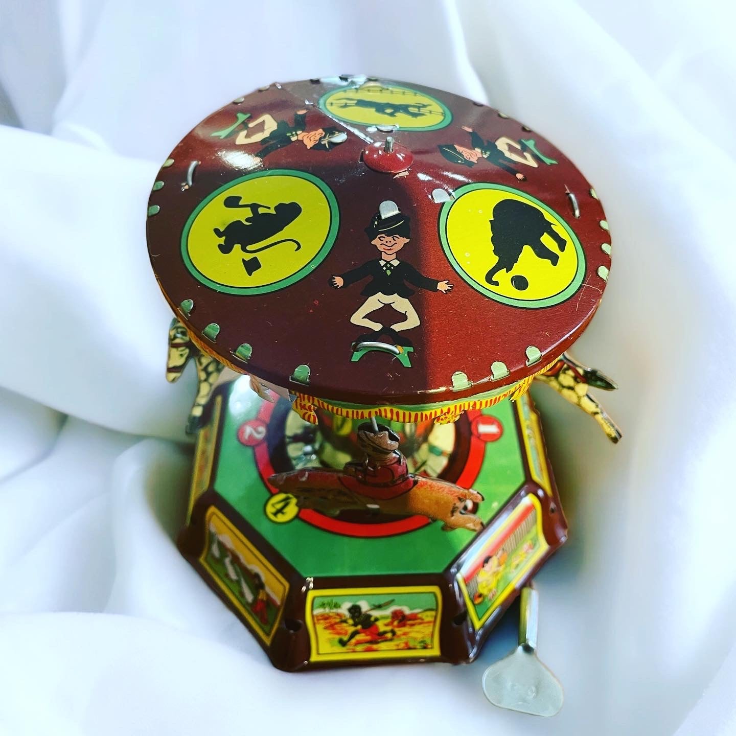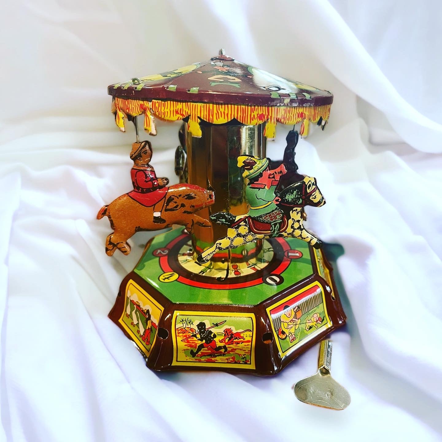 La #giostrina in #latta stile #vintage … con la chiave si gira la molla sotto (con delicatezza) ed i cavalli giiiiiirano! Altezza cm 15.