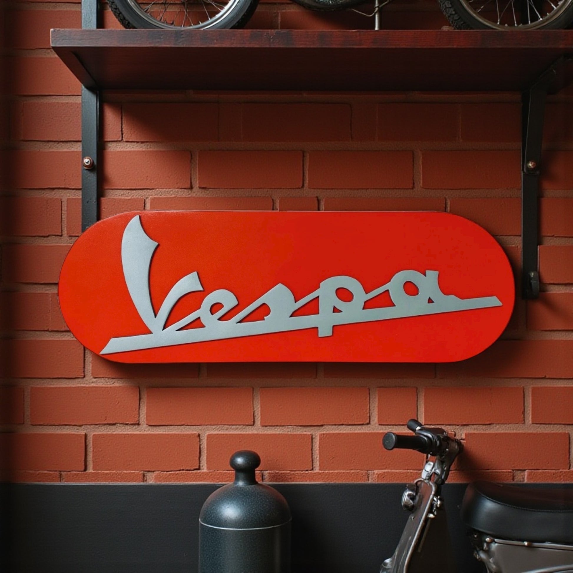 Insegna artigianale Vespa ispirata al design Piaggio anni 60