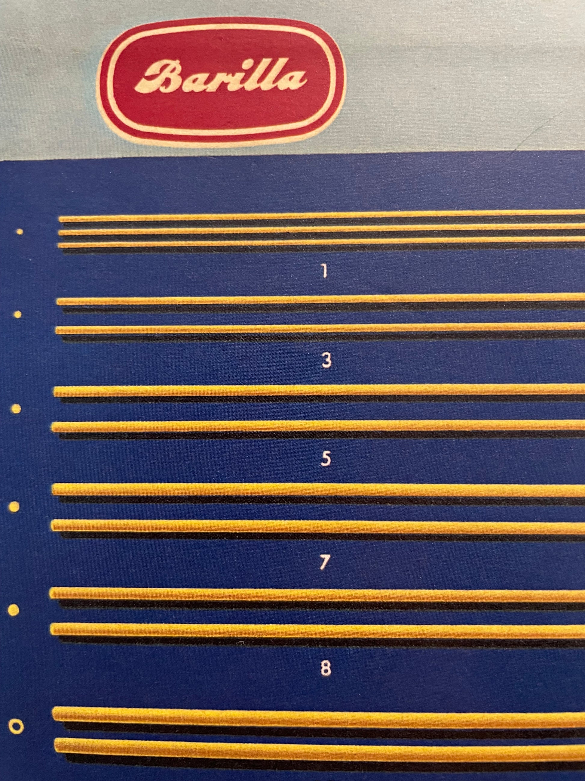 Insegna réclame cartonato Barilla vintage con 97 formati di pasta
