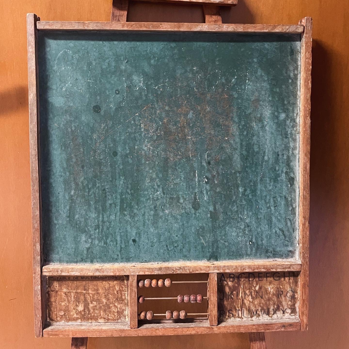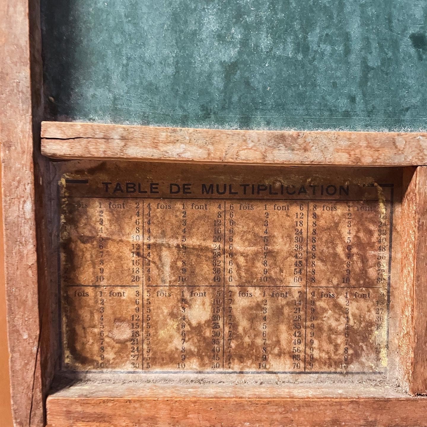 spettacolare antica lavagna proveniente da scuola elementare francese , epoca anni 30, completa di tavola delle moltiplicazioni, abaco e alfabeto! un pezzo d’arredo antico veramente esclusivo; si appoggia alla parete, è alta 1,15 m.
