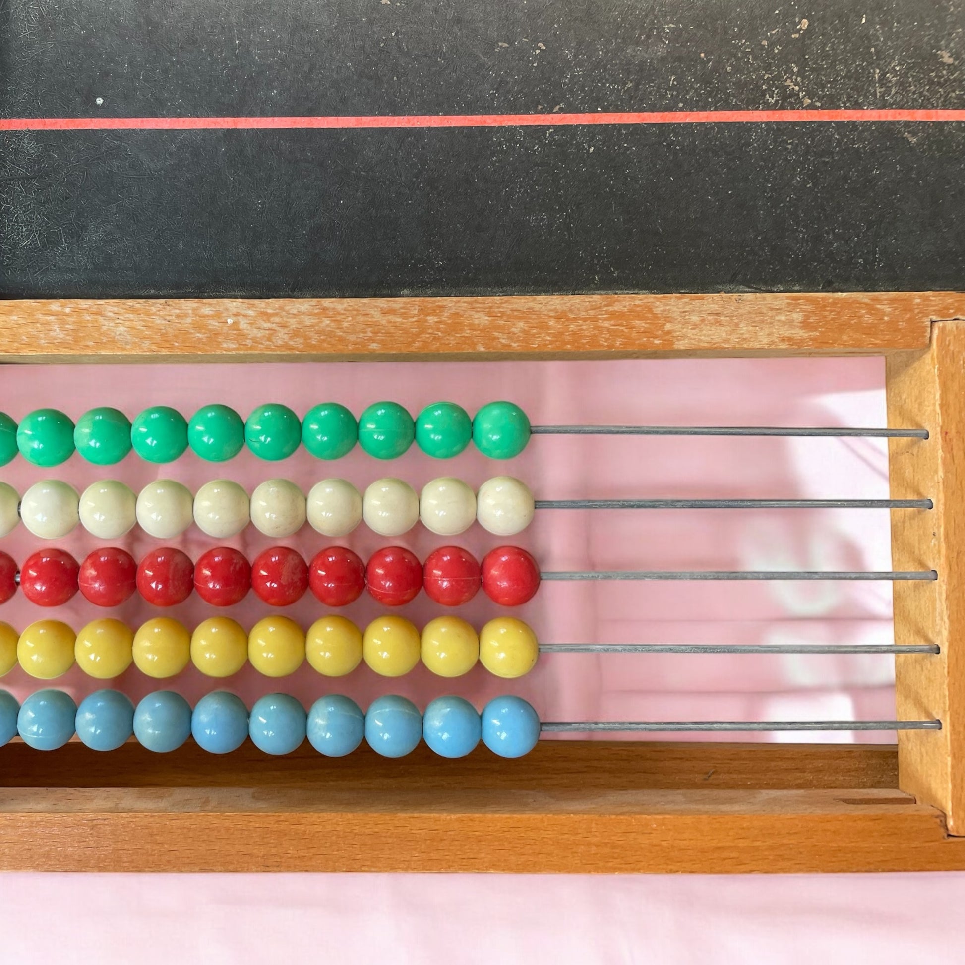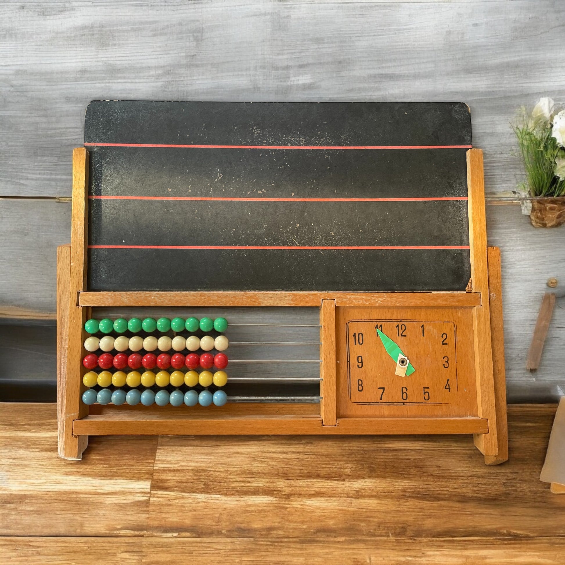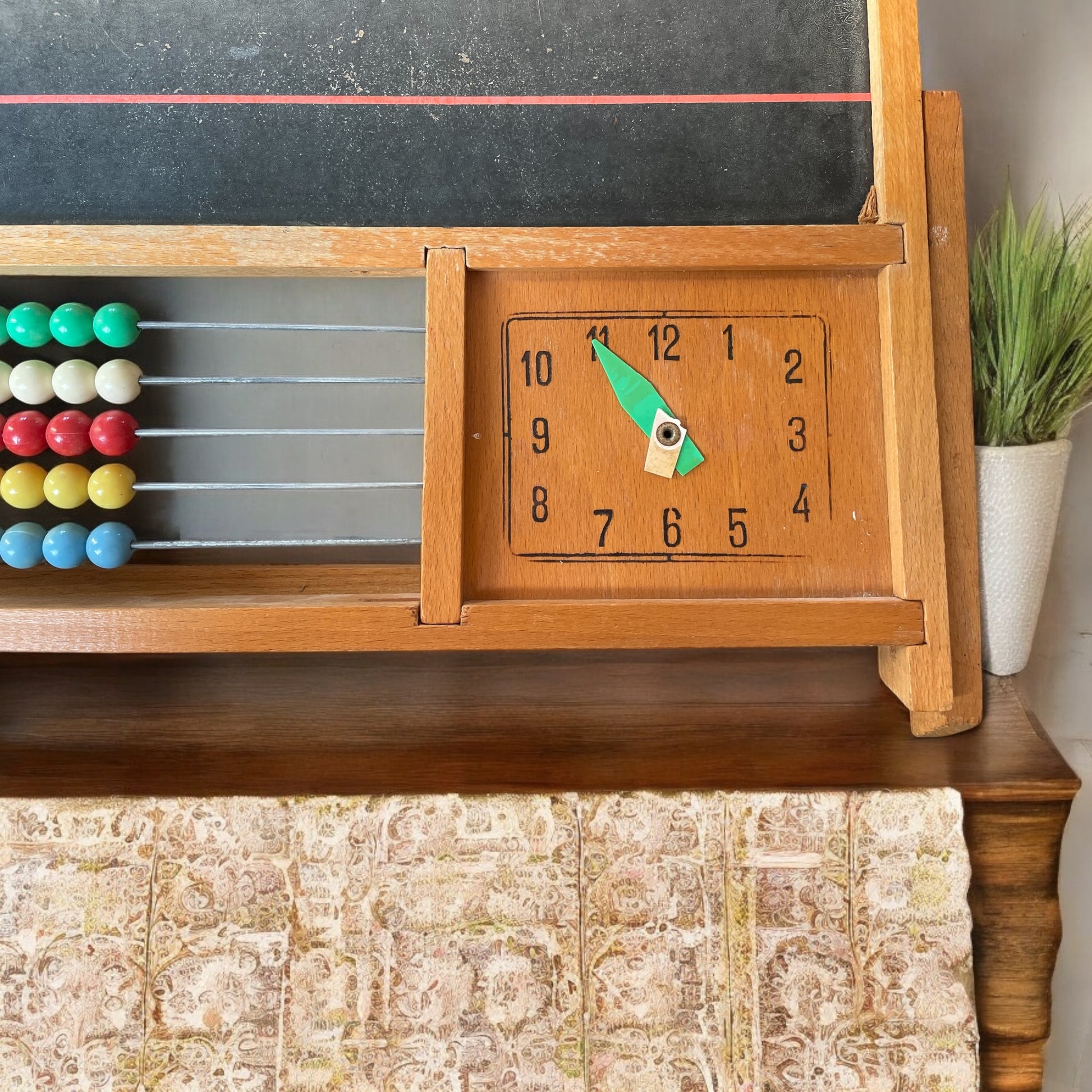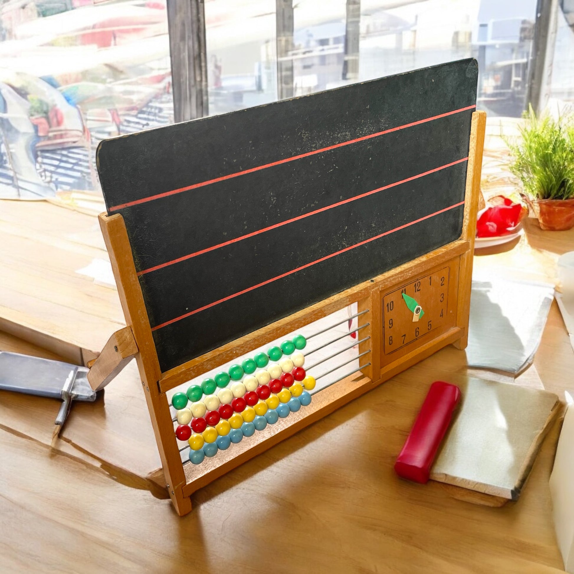 Lavagna didattica anni ‘60 con abaco ed orologio