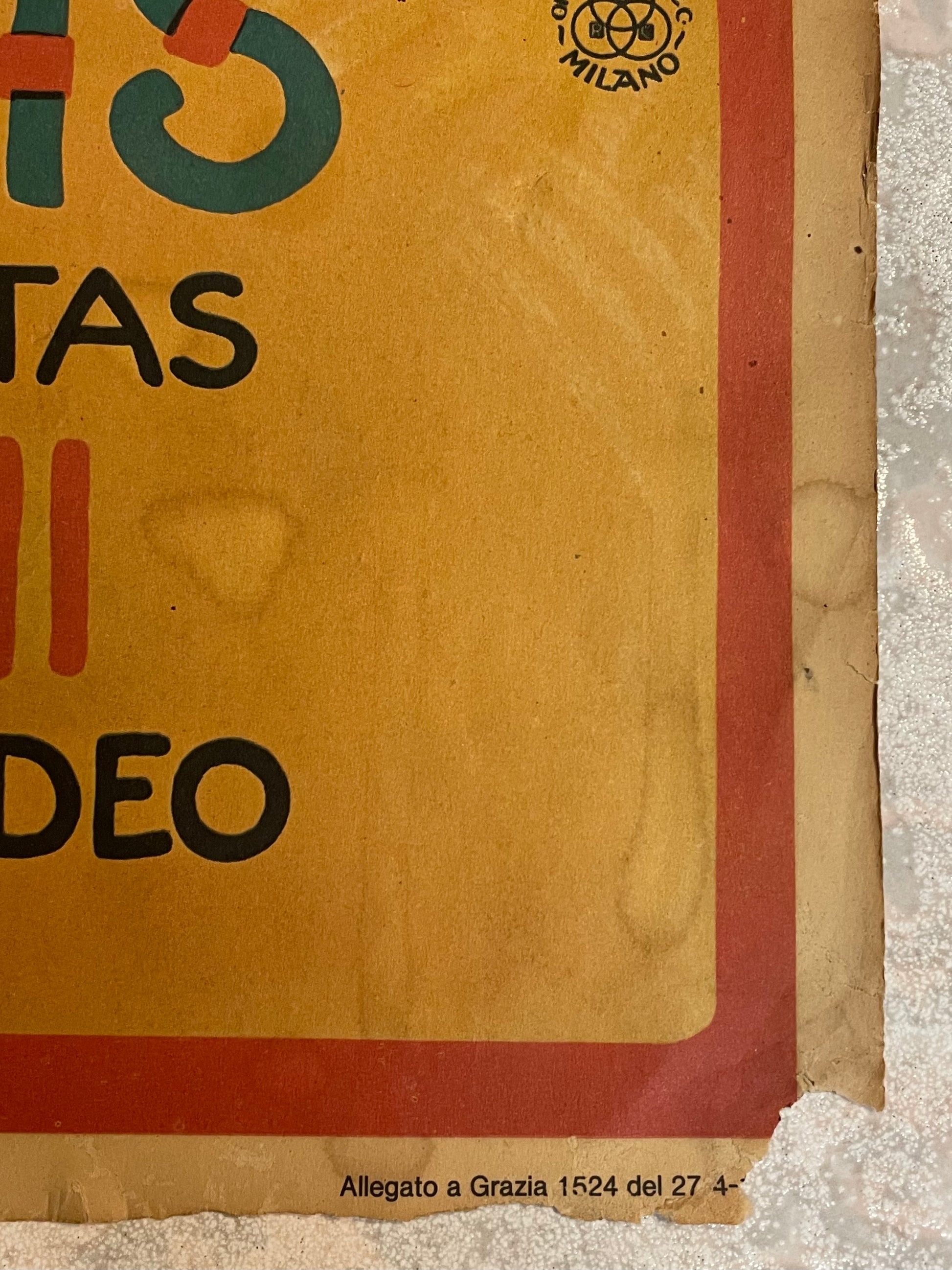 ✒️ Stampa d’epoca su carta leggera (offset), prodotta da Officine Grafiche Nord Milano. 📜 Carta autenticamente ingiallita dal tempo, con segni di vissuto coerenti con gli oltre 50 anni d’età (strappi, mancanze, macchie). 💡 Ideale per cornici grandi, spazi vintage, ambientazioni liberty o collezionismo grafico.