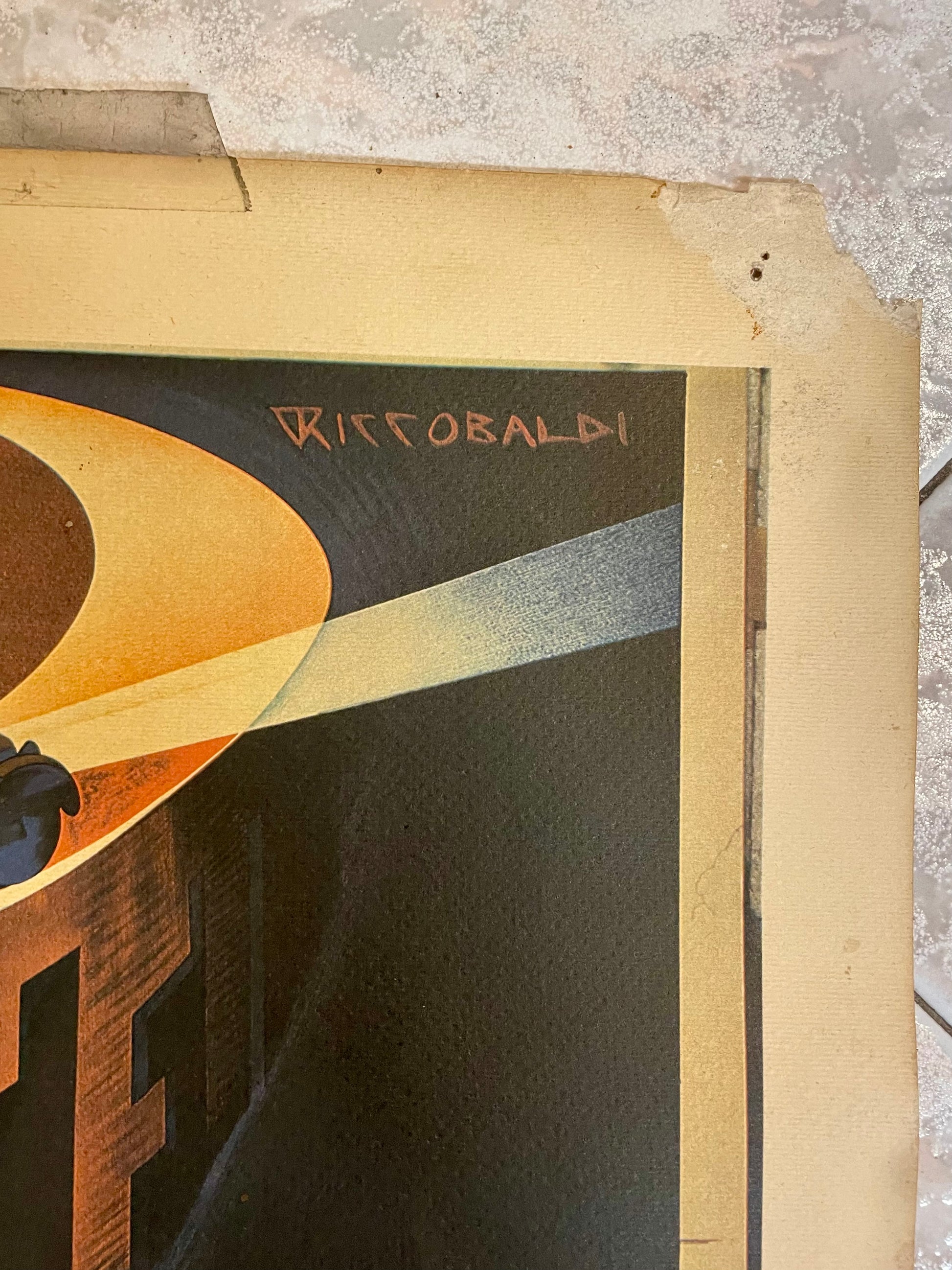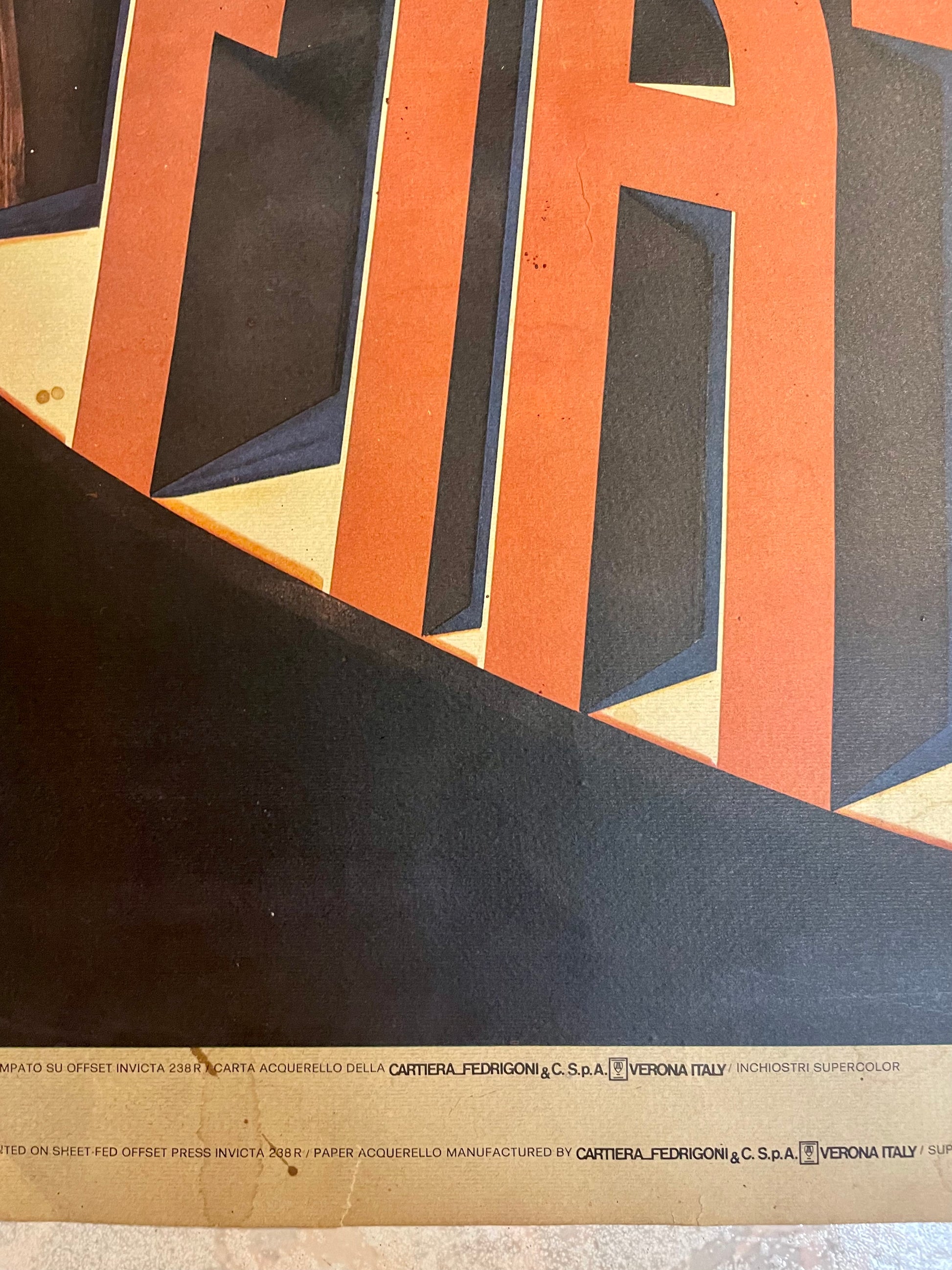 🌀 Manifesto pubblicitario FIAT – Vittorio Riccobaldi / Nebiolo – Ristampa anni ’70. Affascinante manifesto che riproduce una delle più celebri grafiche pubblicitarie FIAT del periodo tra le due guerre, firmata da Vittorio Riccobaldi. L’immagine, dinamica e visionaria, cattura perfettamente l’estetica futurista e il senso di progresso che caratterizzavano l’epoca: le automobili percorrono una rampa elicoidale costruita sulle monumentali lettere FIAT, simbolo di potenza e modernità. 🖨️ Questa è una ristampa rara degli anni ’70, realizzata dalla storica Tipografia Nebiolo di Torino, famosa per la qualità delle sue produzioni e per l’importanza che ha avuto nella storia della stampa italiana. La carta è Fedrigoni Acquerello, stampata in offset Invicta 238R, come indicato nella parte inferiore del manifesto. 📐 Formato 66 x 46 cm, condizioni complessivamente buone ma con segni del tempo e piccole lacerazioni ai margini (come da foto). Tutti i dettagli sono visibili nelle immagini, che fanno parte integrante della descrizione. Venduto senza cornice, spedito in apposito tubo protettivo.