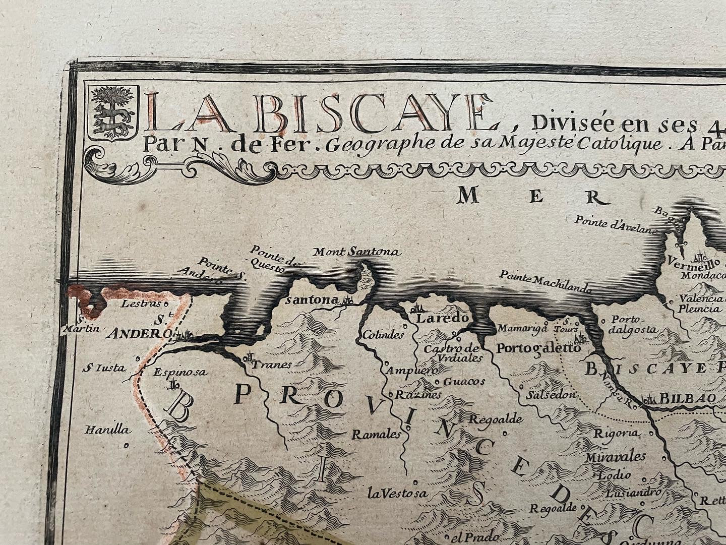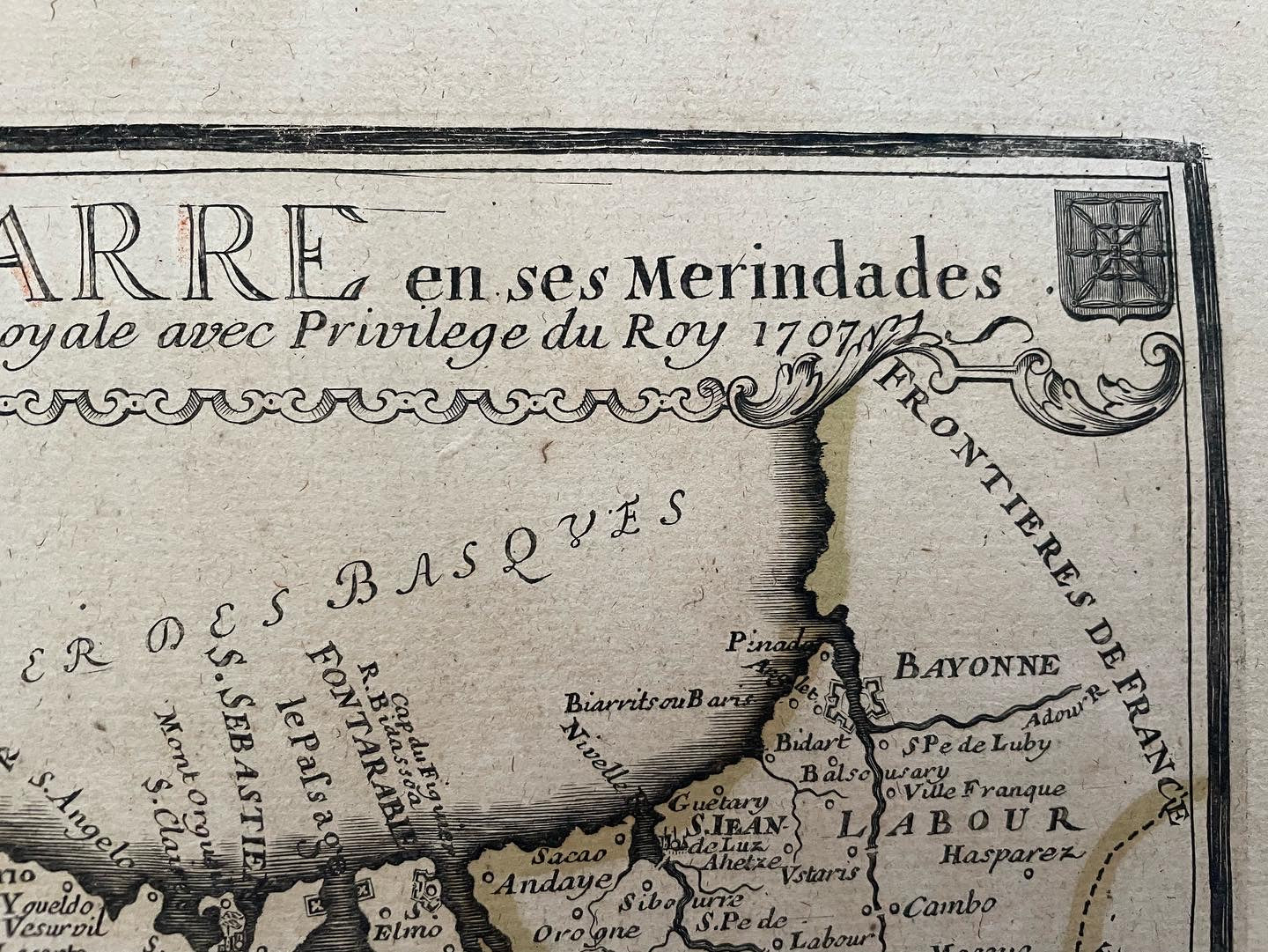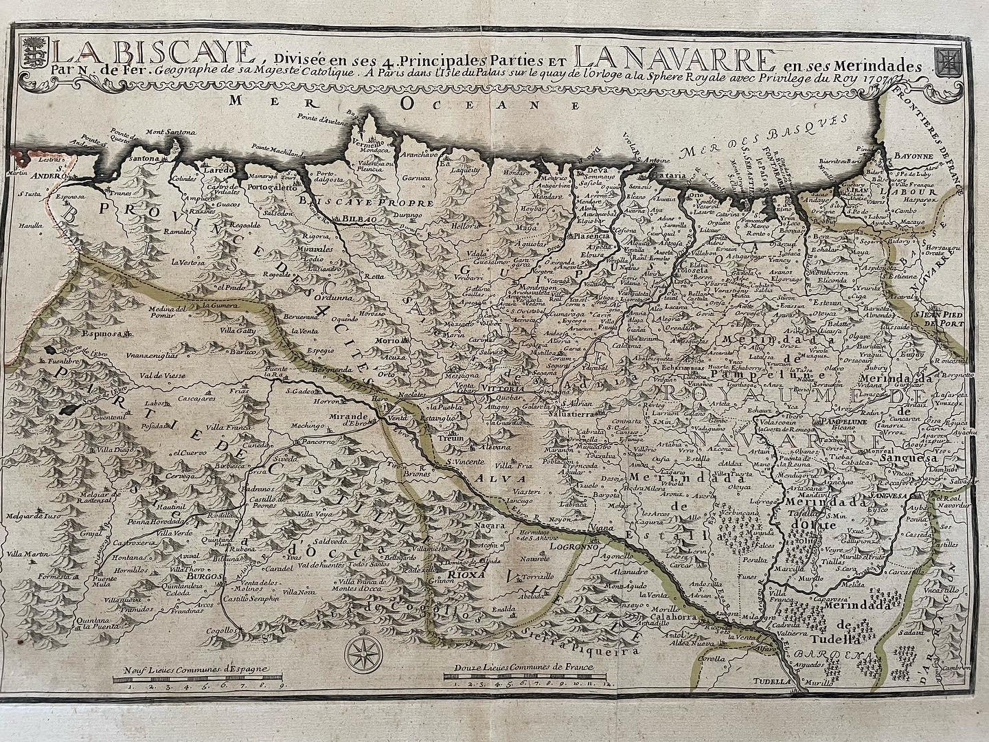Grande #antica #cartina #mappa #settecentesca originale del #1707 che rappresenta l’area della #navarra e della #biscaye . Dimensioni cm 73 x 53, condizioni come da foto molto buone, si segnala un piccolo strappo riparato al retro visibile in foto. Ideale da incorniciare.