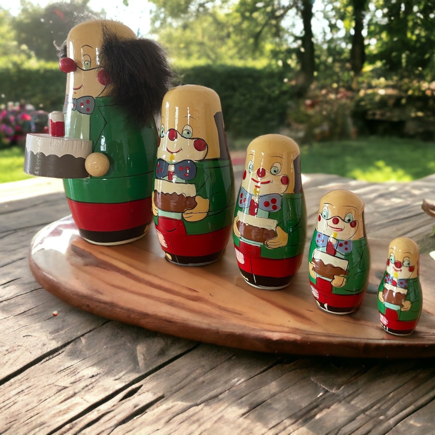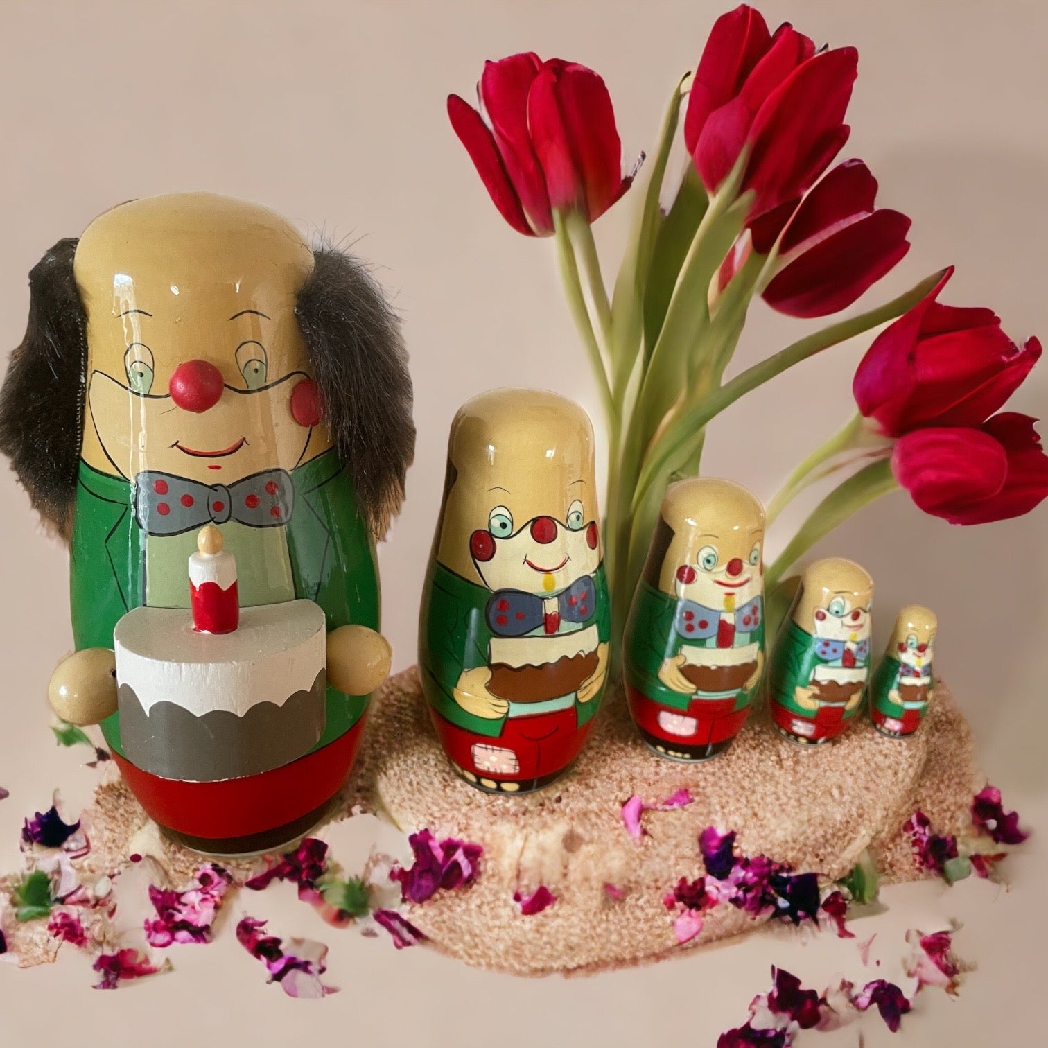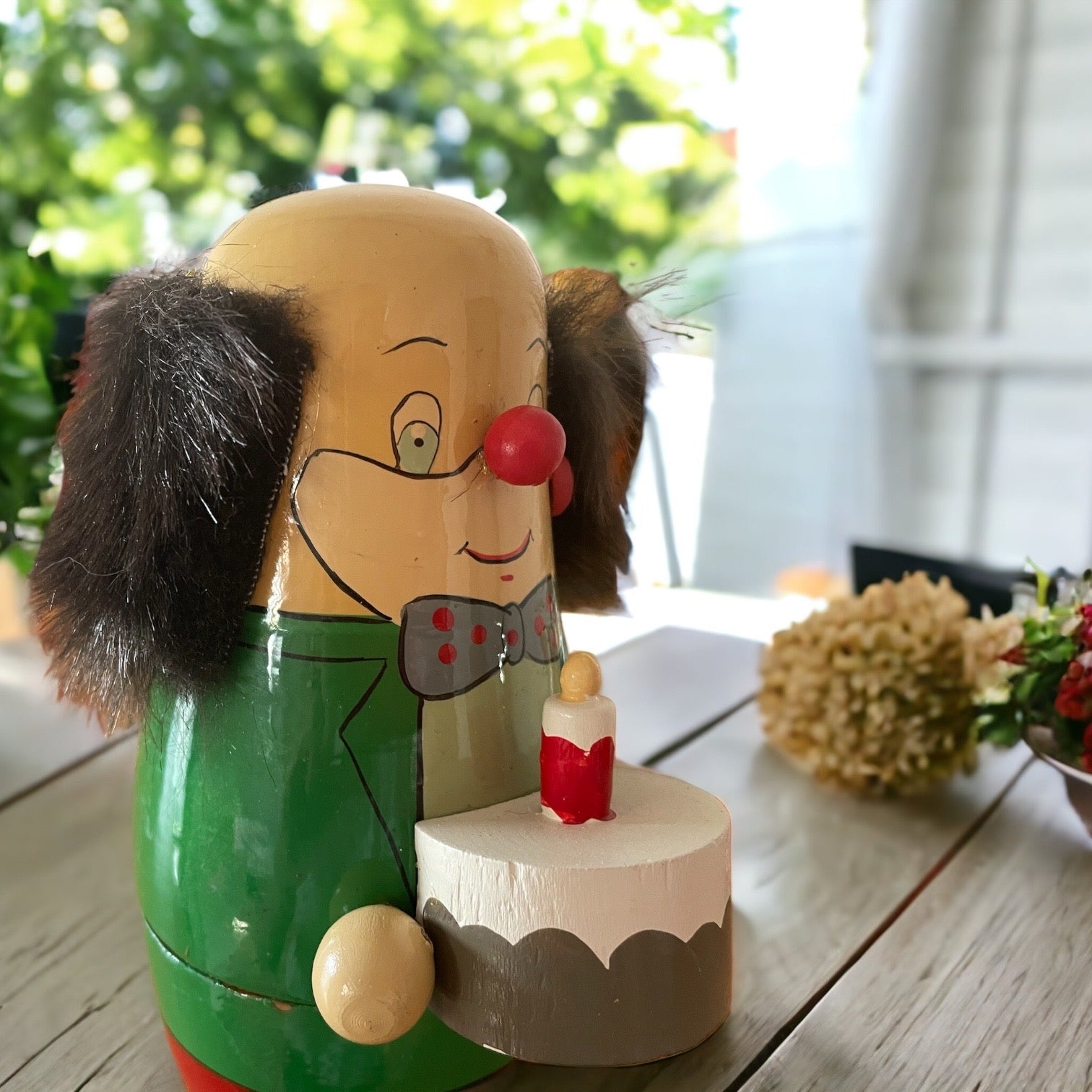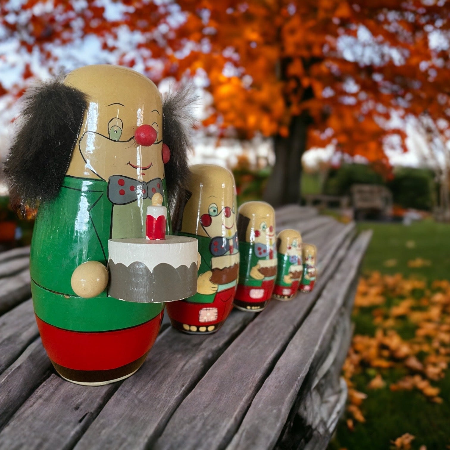 Le #matrioske #vintage a forma di #pagliaccio ! Ed il più grande ha anche i capelli veriiiii ! Pronto per inquietarci ad #halloween … e per la vs #collezionematrioske di cui sarà sicuramente un #set esclusivo. A me vengono in mente i racconti di #dürrenmatt …