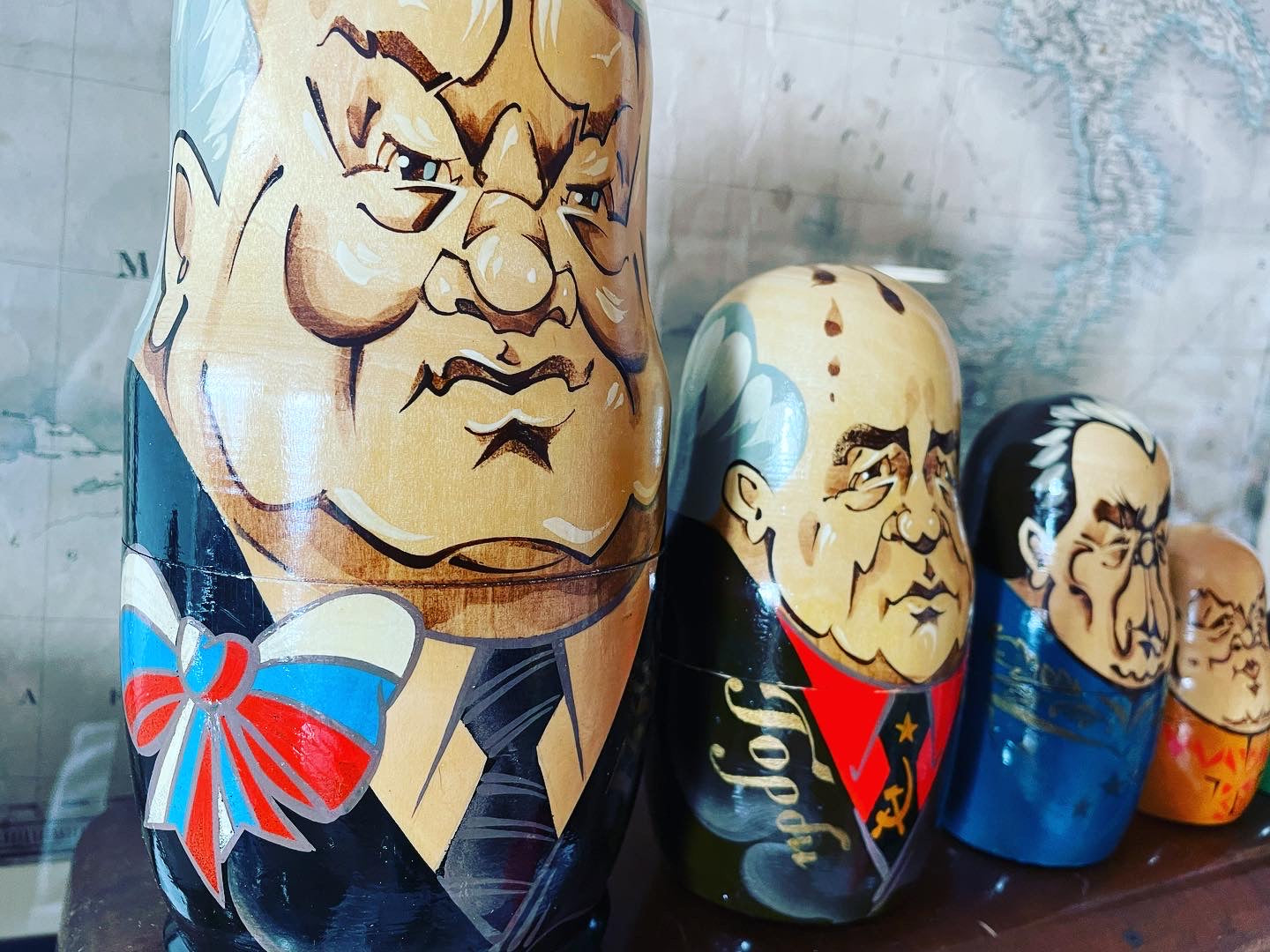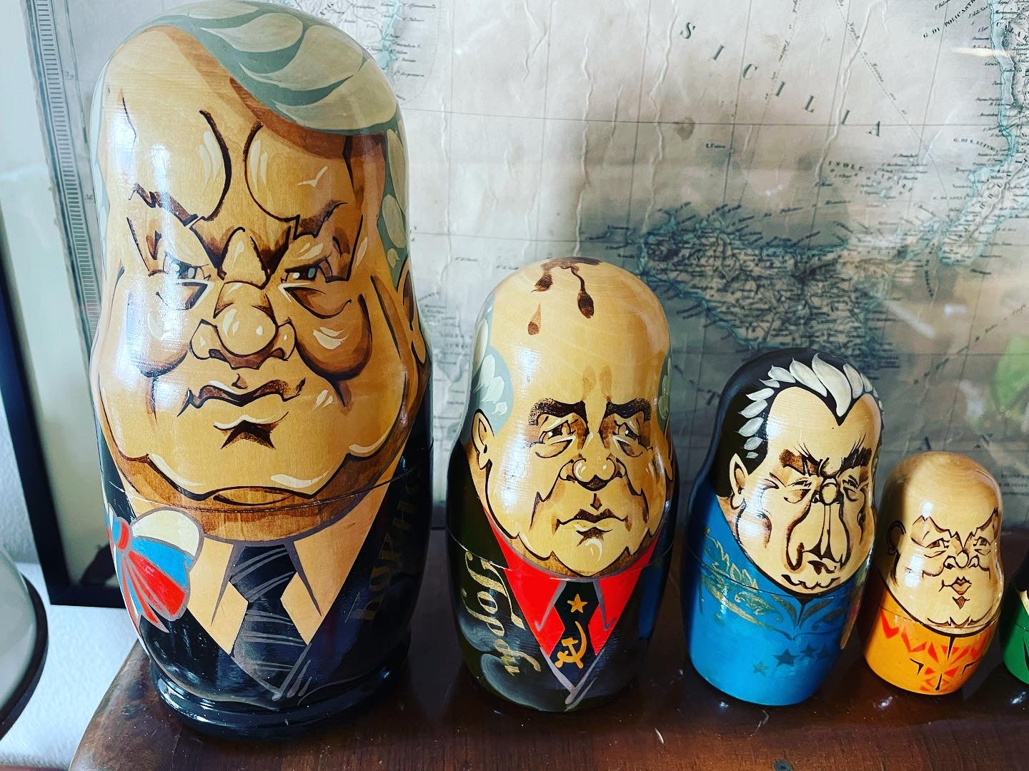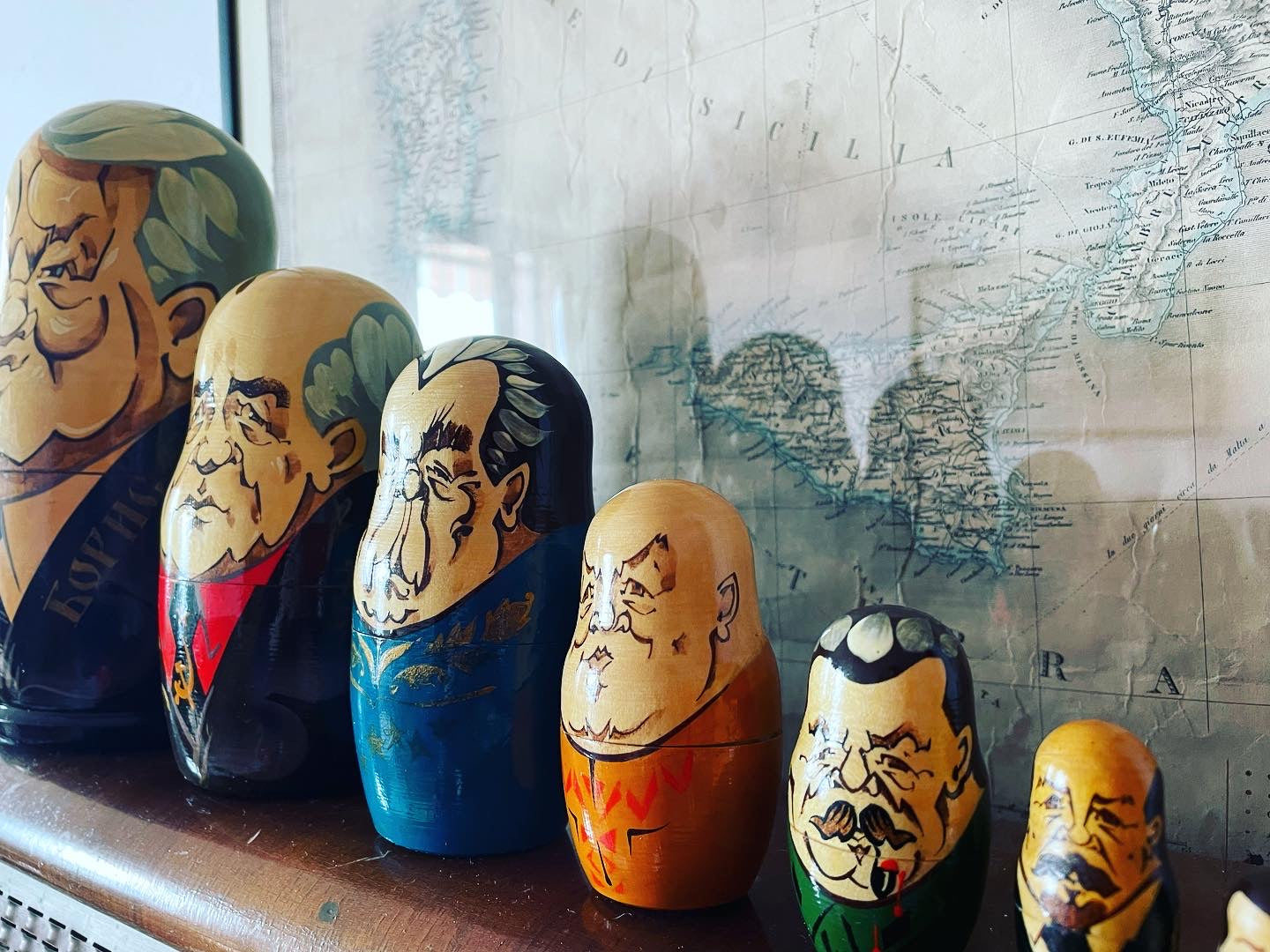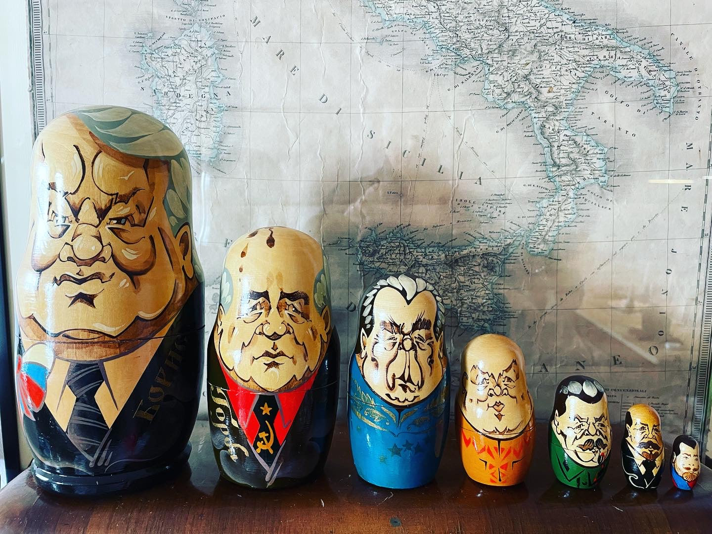 Imperdibili!!! #vecchioset #matrioske da collezione con i #presidentirussi … satira particolarmente attuale oserei direi … partiamo da una statura di 25 cm per il nostro #eltsin e poco meno per #gorbaciov e finiamo con soli 3 cm per il povero #zar ! Bellissime in #legnodipinto .