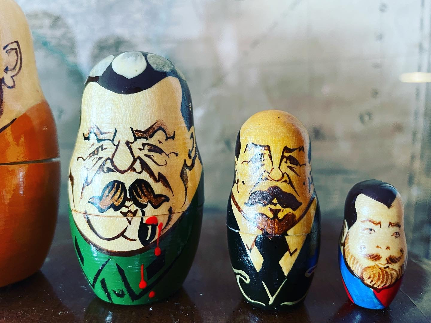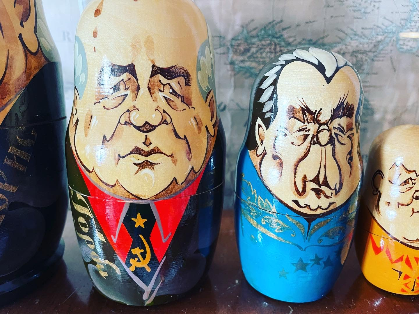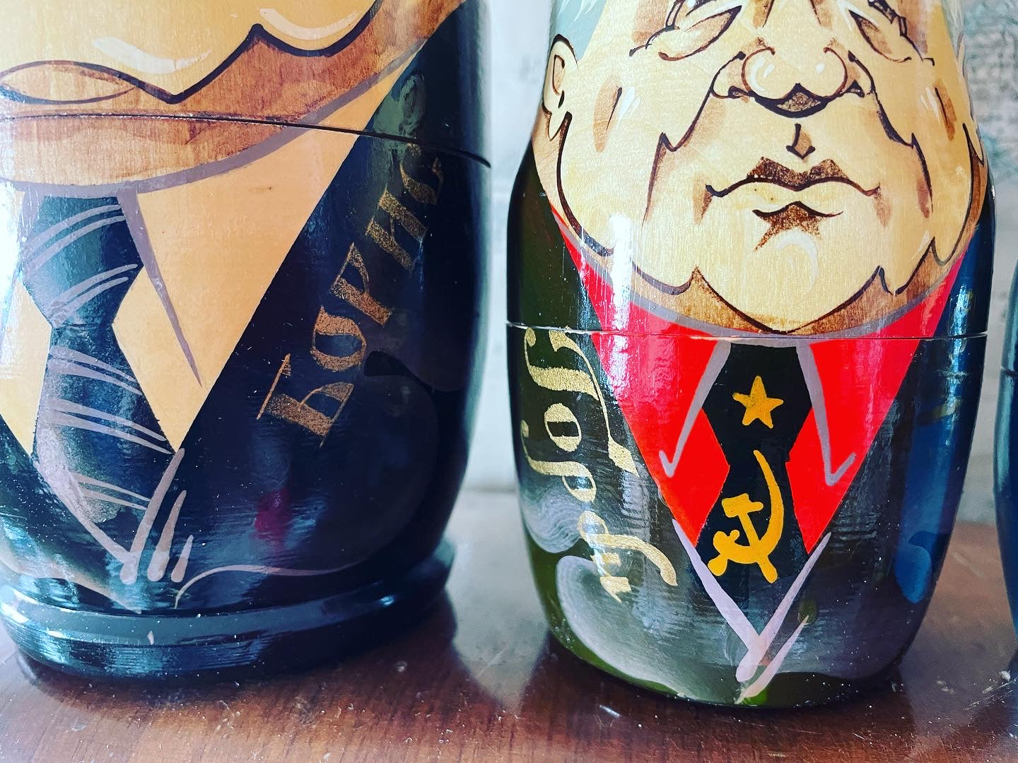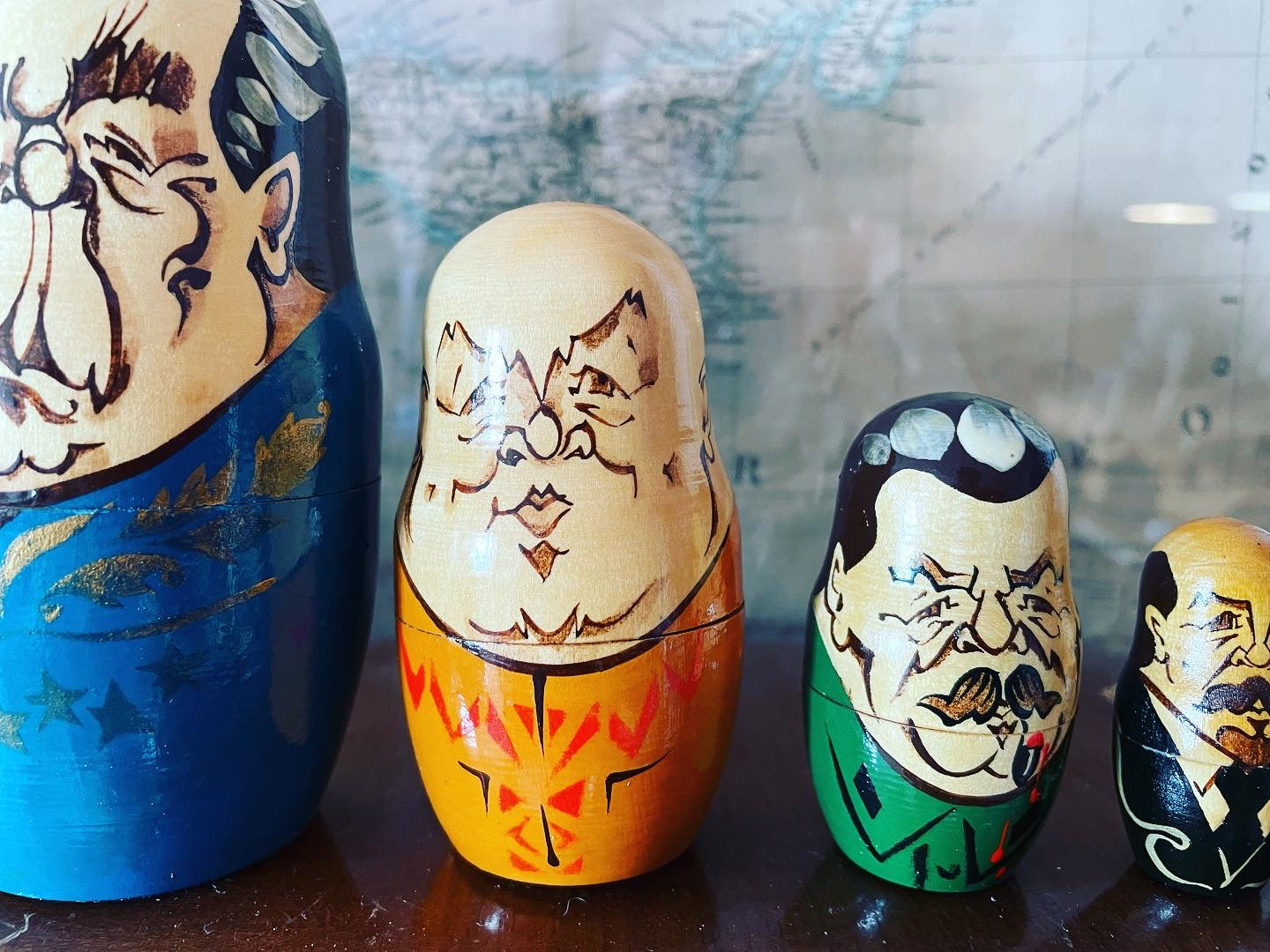 Imperdibili!!! #vecchioset #matrioske da collezione con i #presidentirussi … satira particolarmente attuale oserei direi … partiamo da una statura di 25 cm per il nostro #eltsin e poco meno per #gorbaciov e finiamo con soli 3 cm per il povero #zar ! Bellissime in #legnodipinto .