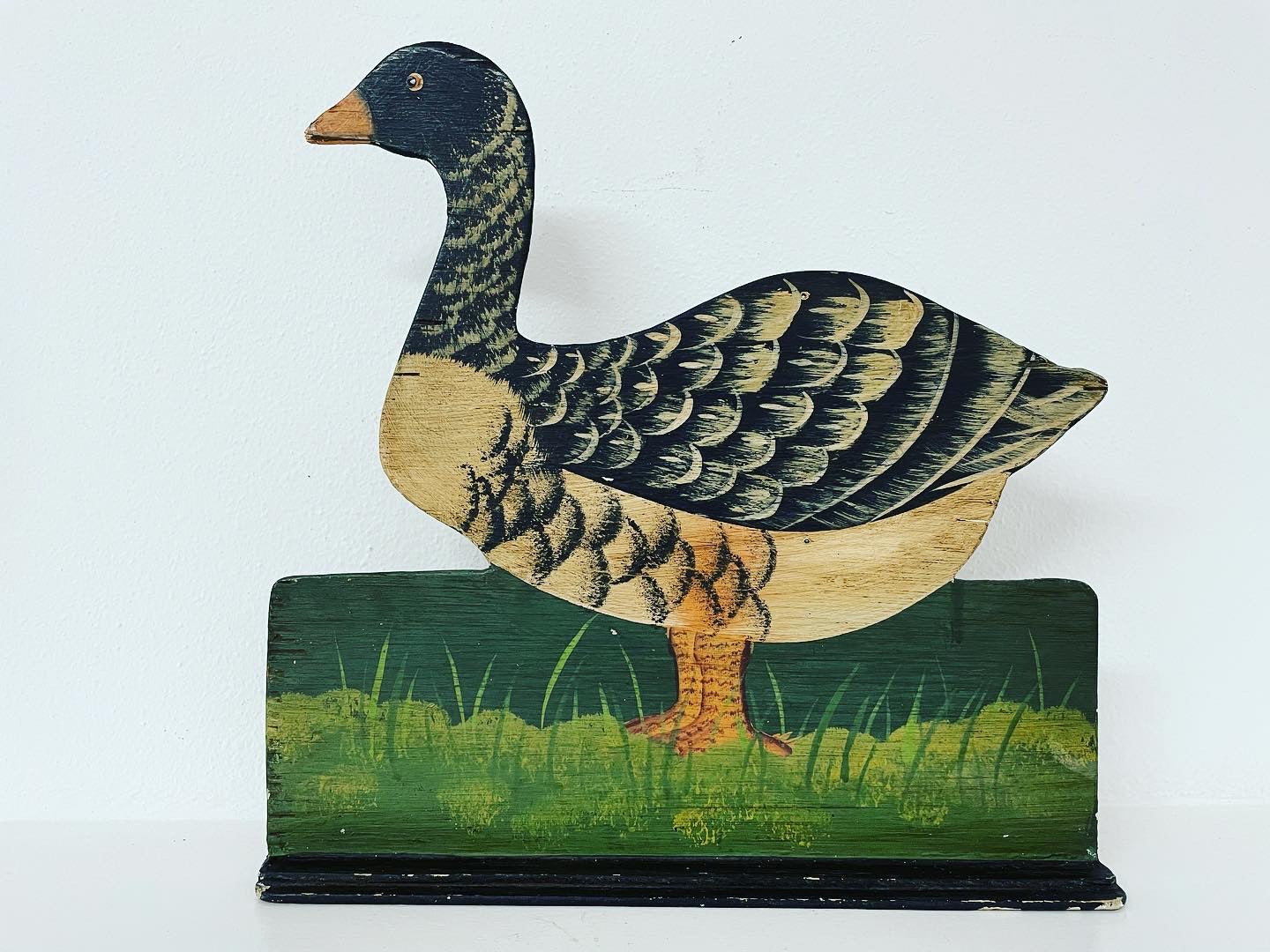 Bellissima #vecchia #oca in #legno #bifacciale ❤️ #decorazioneantica #dipintaamano e ben conservata, ha la base di appoggio, le dimensioni sono 38 x 33 ed aspetta qualcuna che la adotti 🐦