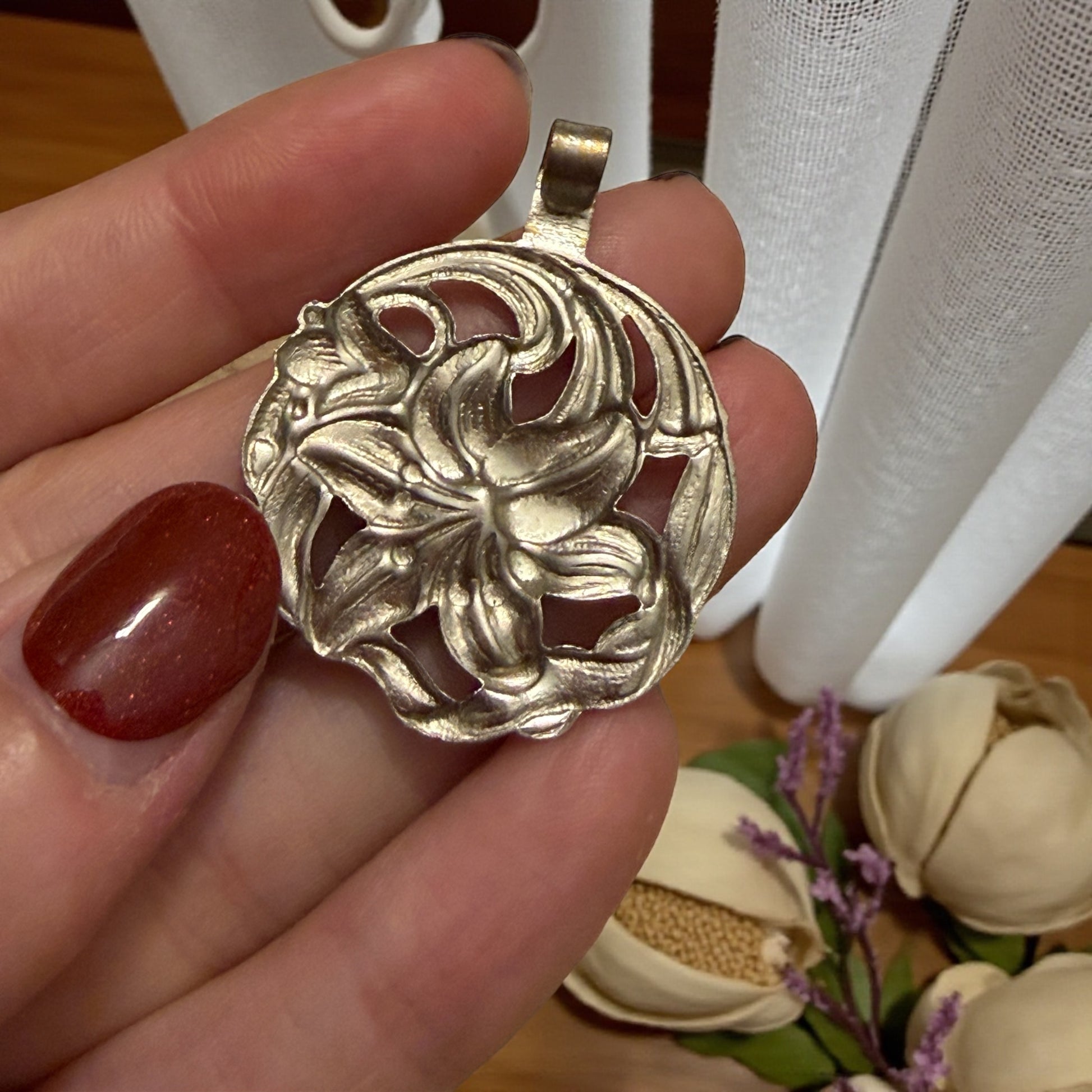 Pendente antico anni ‘30 argentato liberty a guisa di Iris